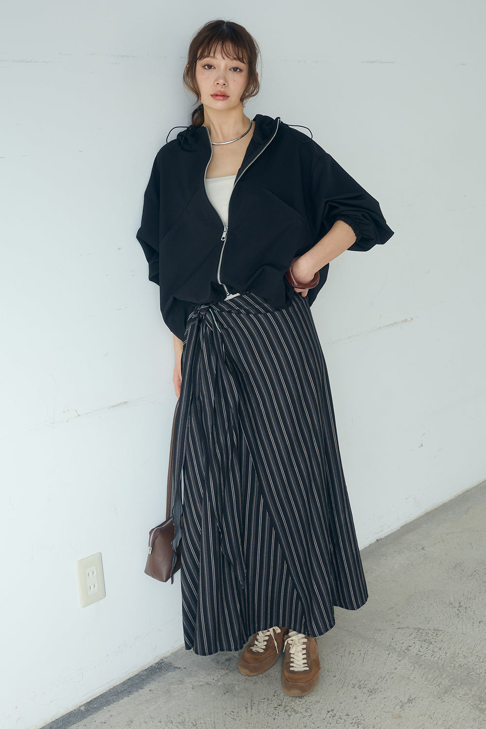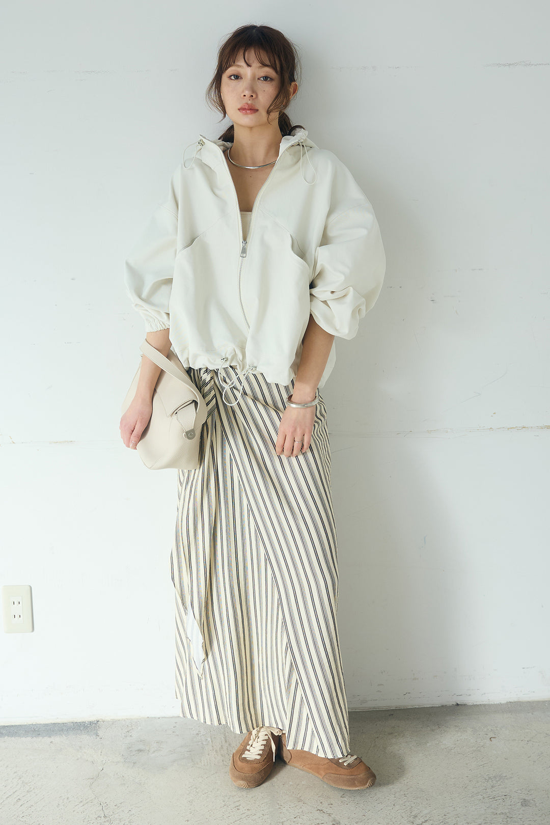 [SET]ネック裾絞りブルゾンアウター+マルチピンストライプ柄巻きスカート(2set)