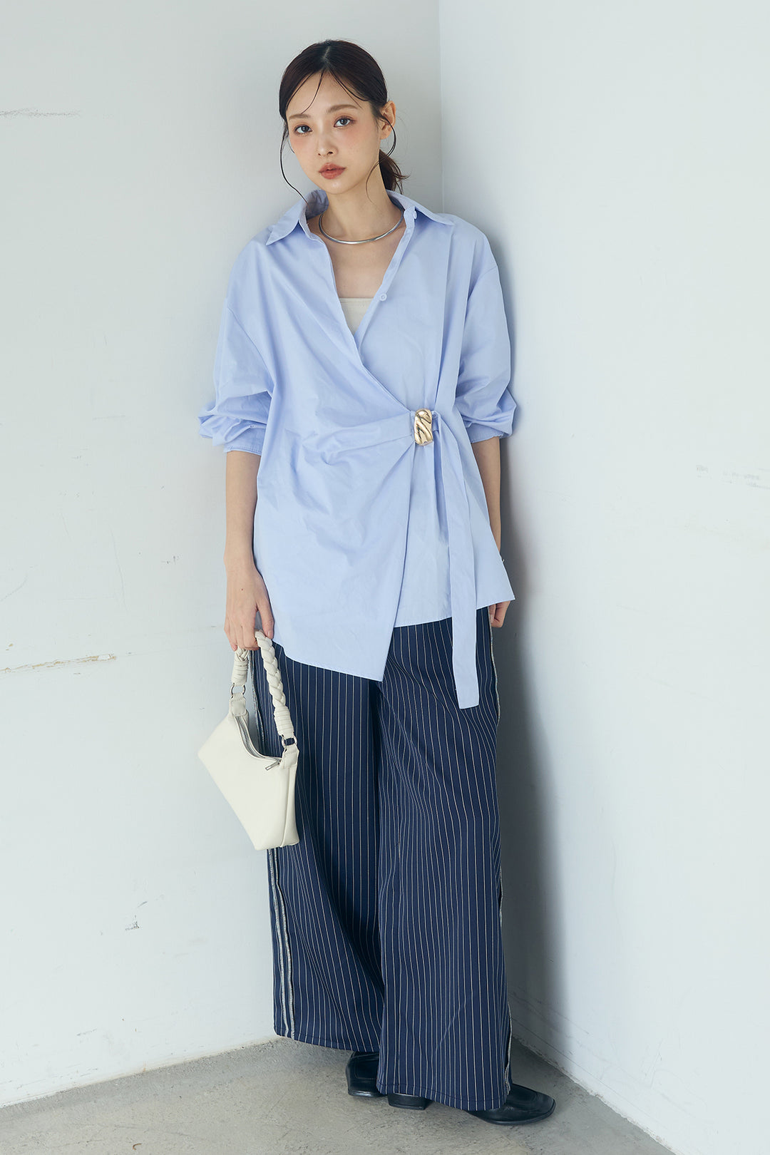 [SET]サイド留め具デザインシャツ+ストライプ柄トラックイージーパンツ(2set)