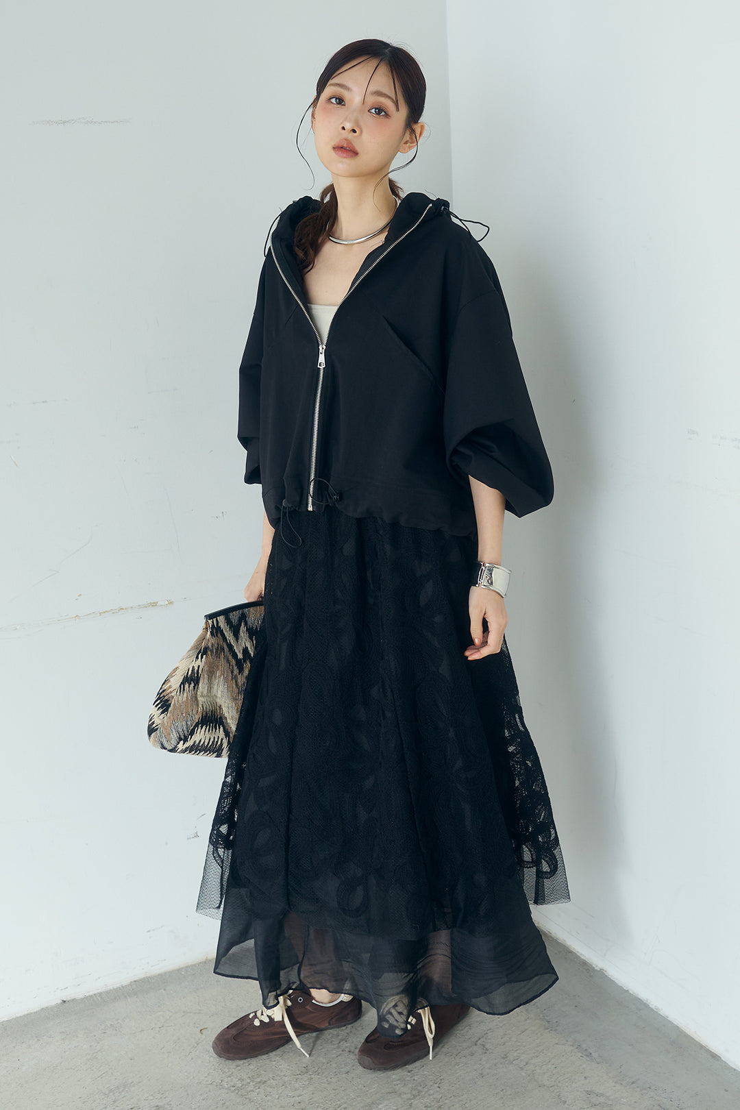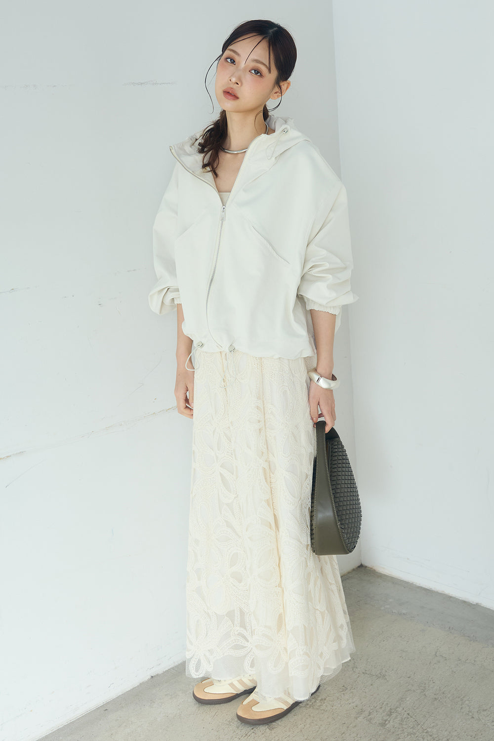 [SET]ネック裾絞りブルゾンアウター+ニュアンス柄刺繍スカート(2set)