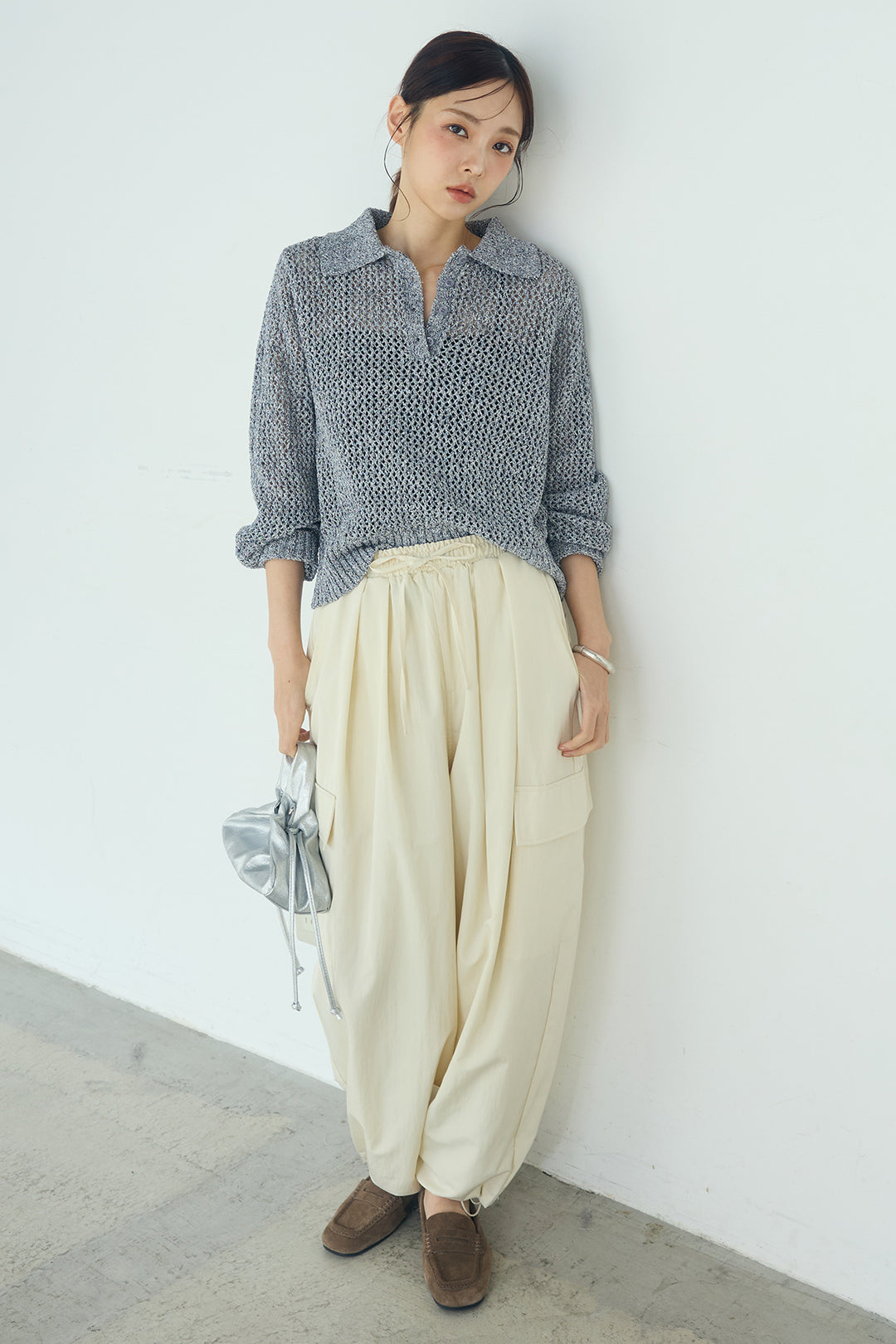 [SET]ミックスメッシュポロニット+麻混タックワイドパンツ(2set)