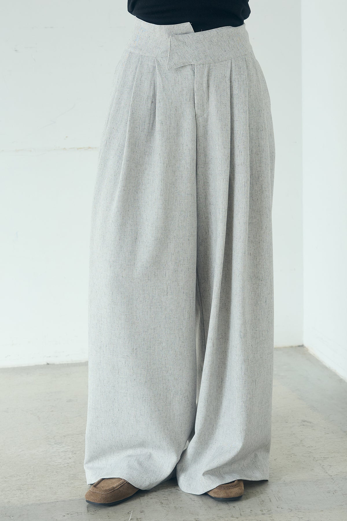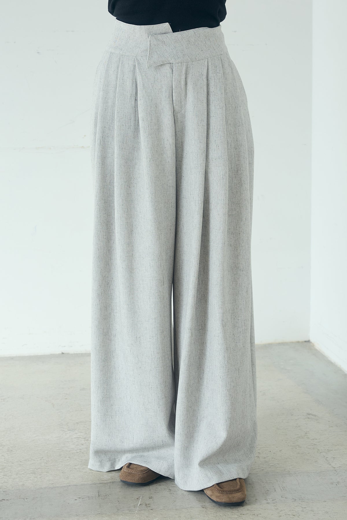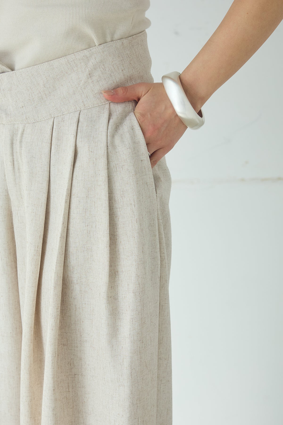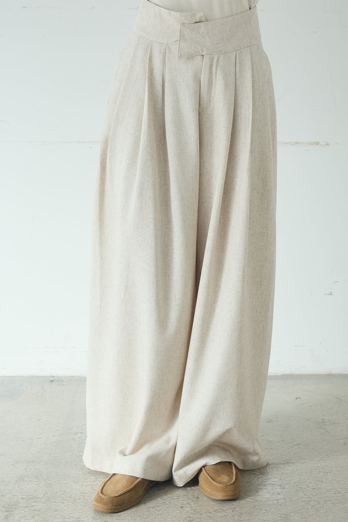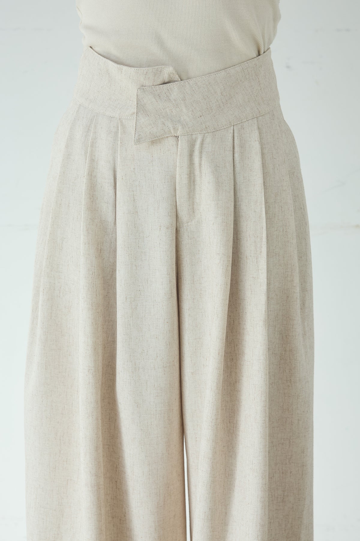 麻混タックワイドパンツ