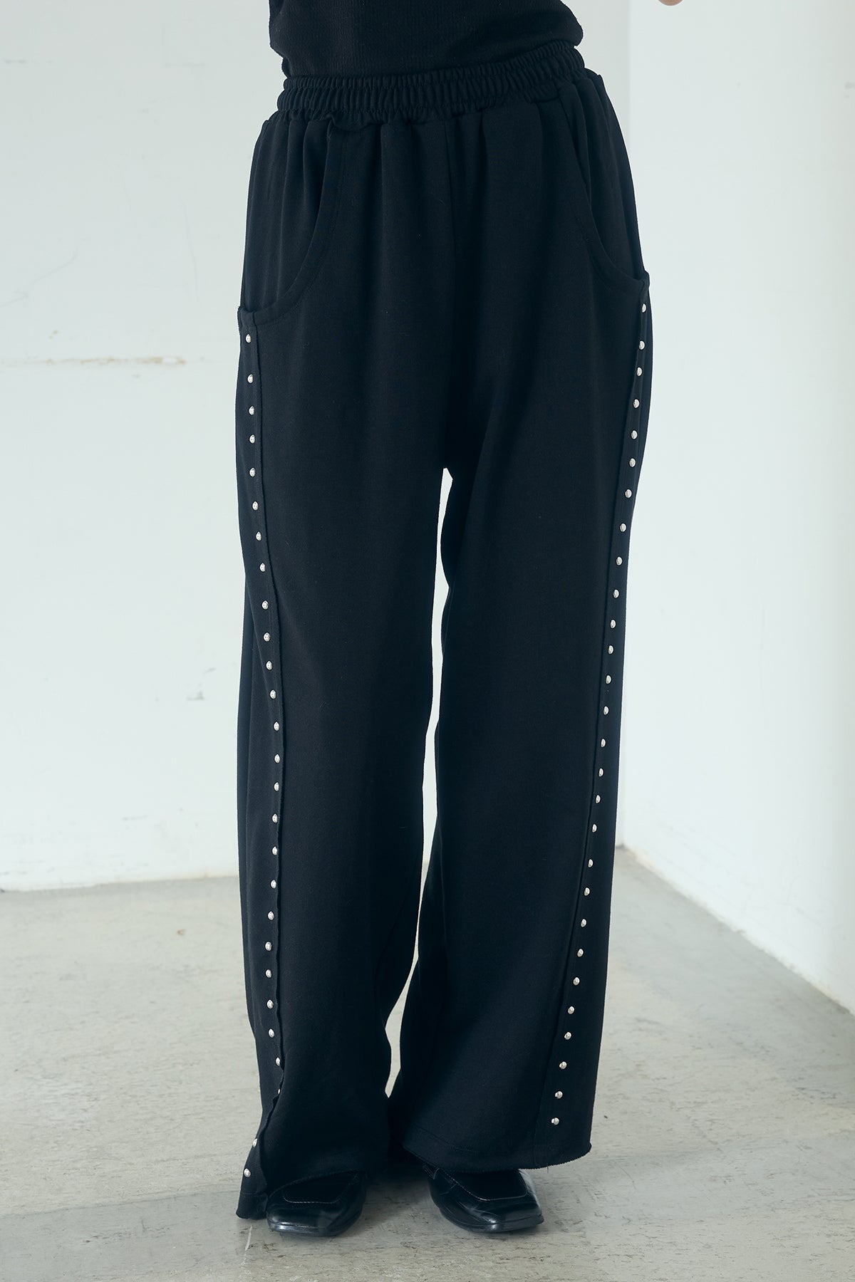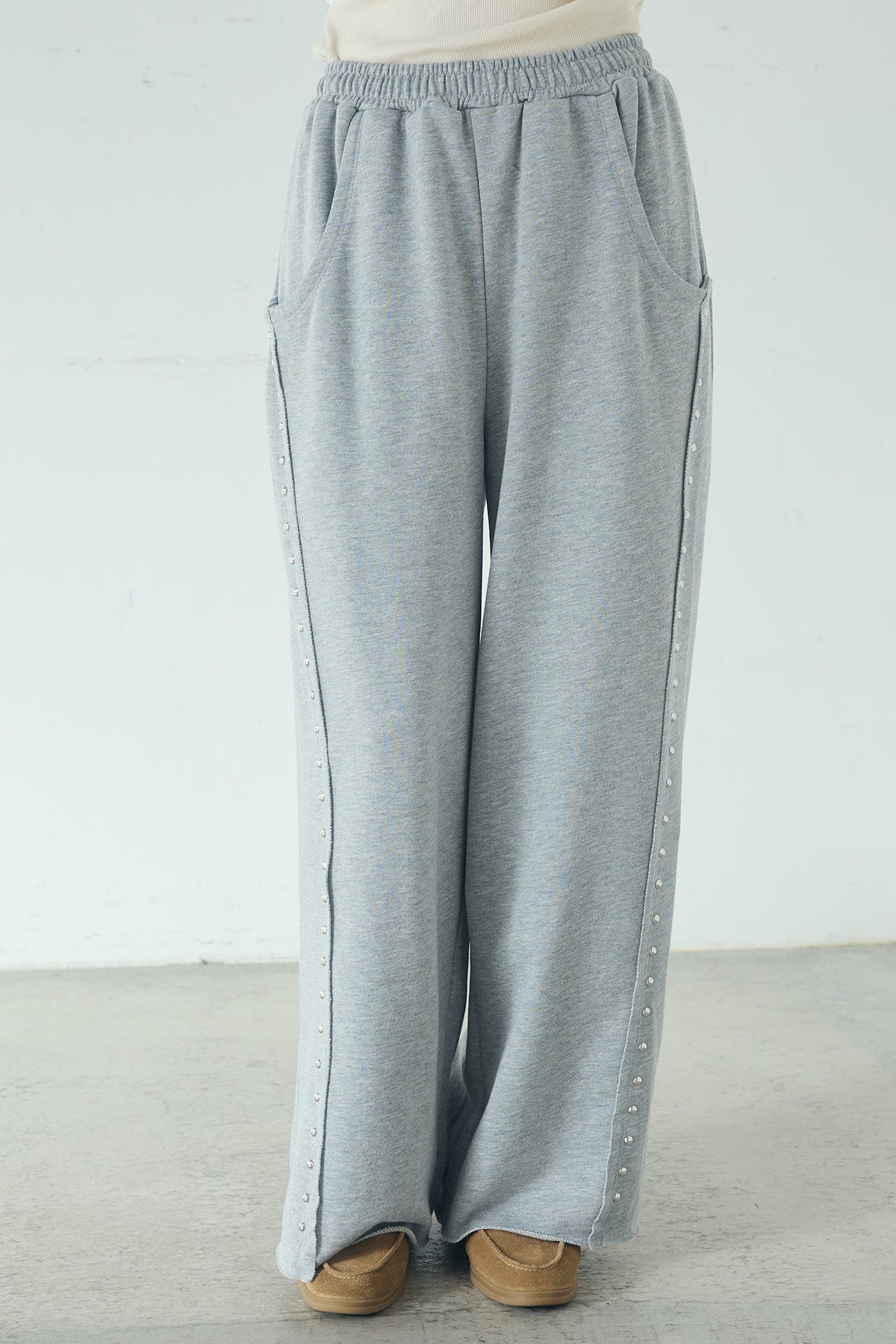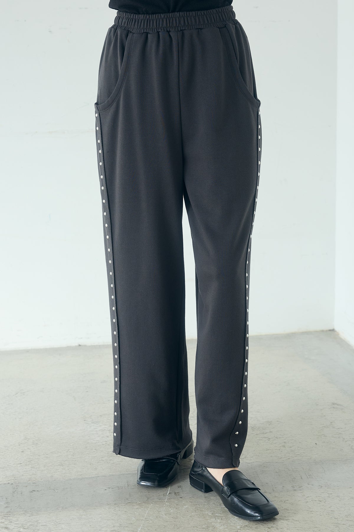リラックス感の中に、さりげないアクセントを添えて。 程よくラフな穿き心地が魅力のスウェットパンツに、サイドデザインを効かせた一本。シンプルなシルエットにライン状のディテールを加えることで、カジュアルになりすぎずスタイリングにほどよい存在感をプラスします。 ウエストはイージー仕様でストレスフリーな着用感。ゆとりのあるストレートラインが脚のラインを拾いにくく、自然な抜け感のあるバランスに仕上がります。 コンパクトなトップスからオーバーサイズのシャツやニットまで幅広く合わせやすく、デイリーに取り入れやすいのも魅力。ラフさとデザイン性を両立した、着回し力の高いアイテムです。