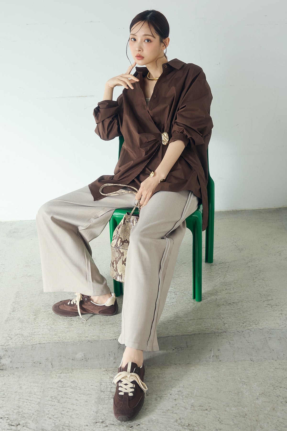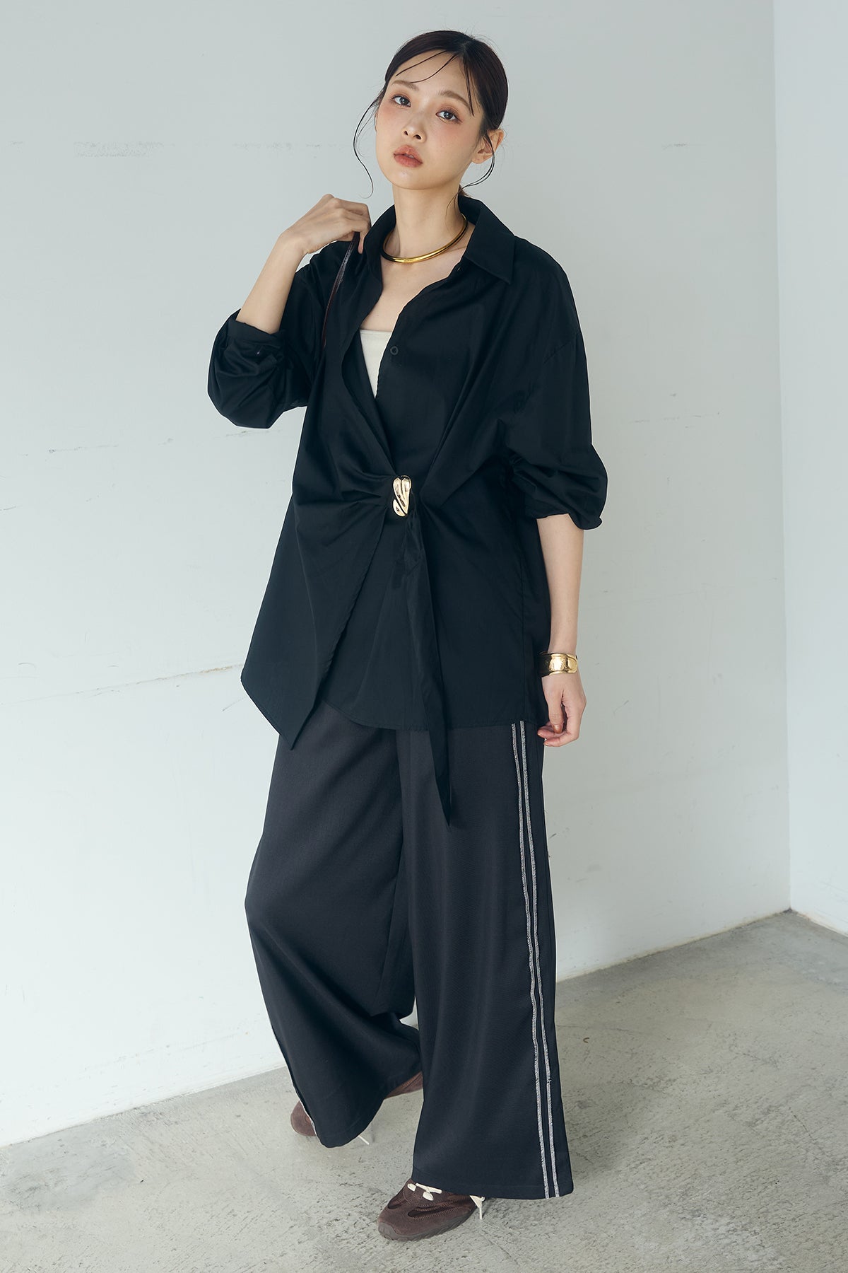 [SET]サイド留め具デザインシャツ+トラックイージーパンツ(2set)