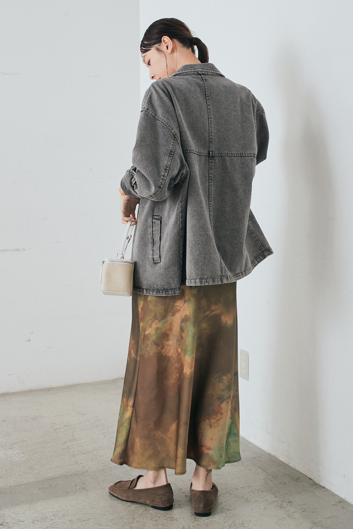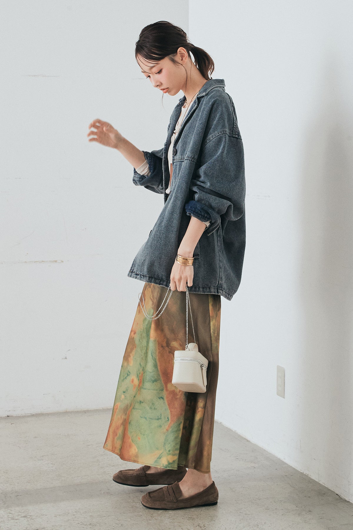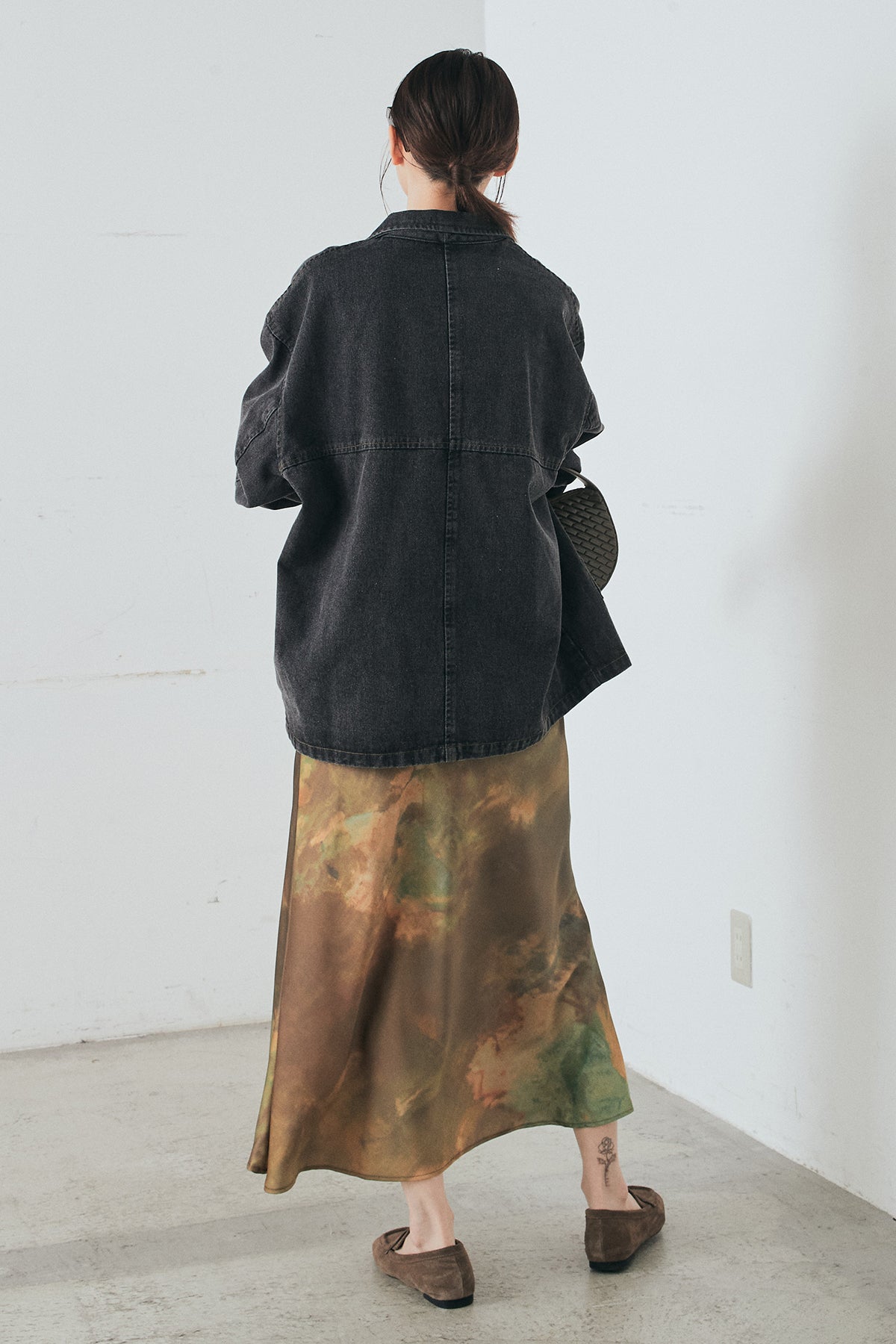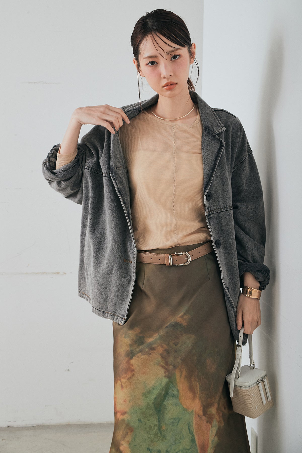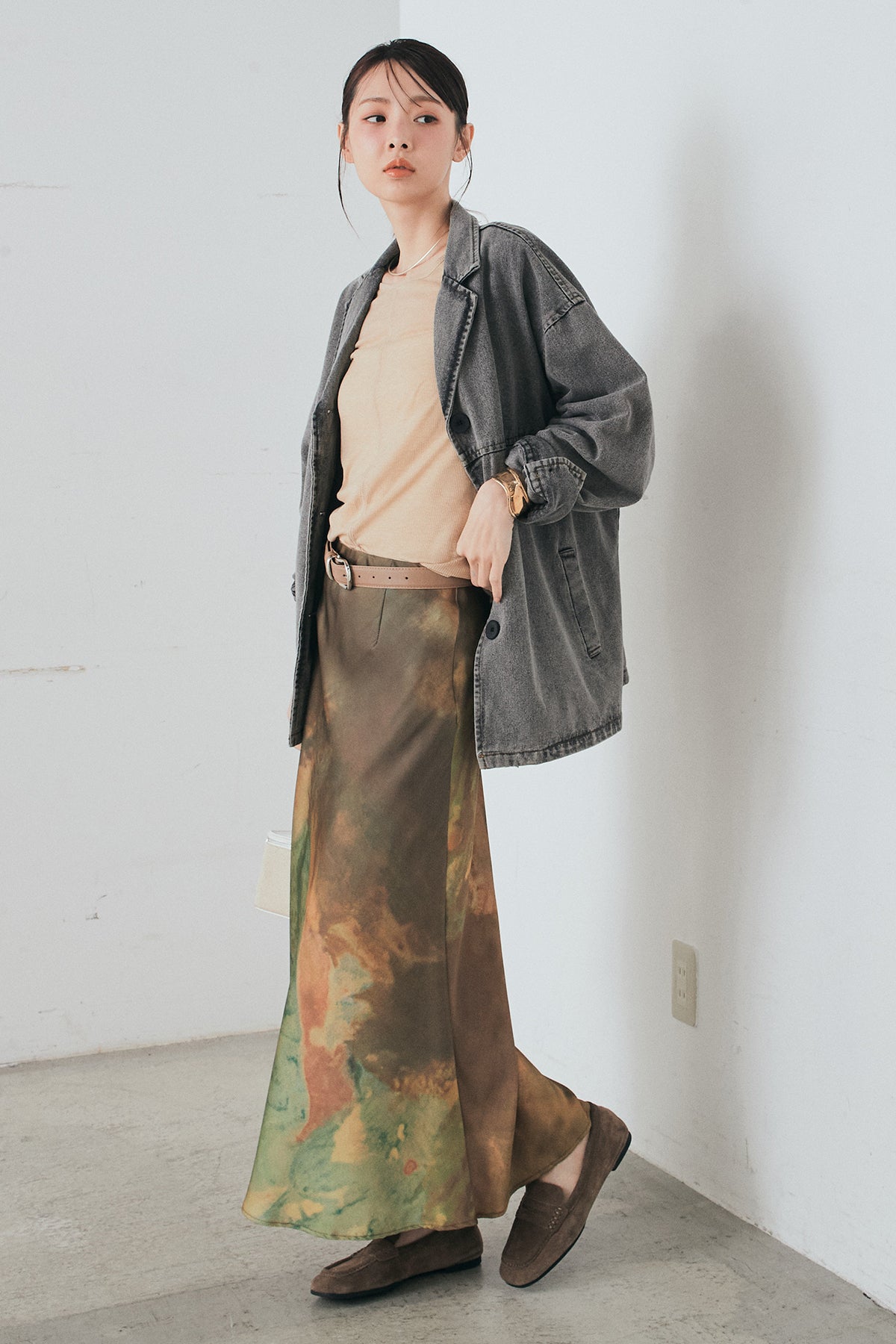 [SET]オーバーデニムジャケット+ニュアンス柄サテンスカート(2set)