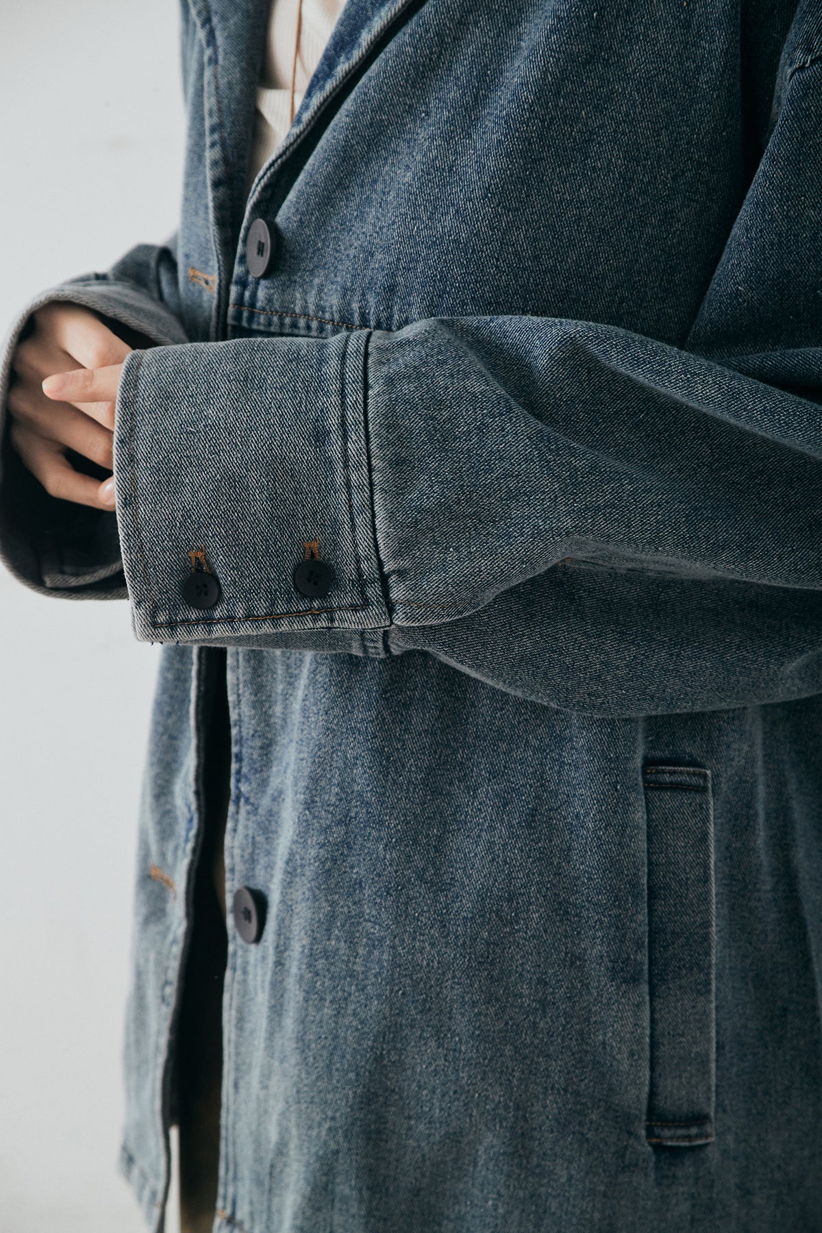 程よくラフな抜け感を楽しめるオーバーデニムジャケット。 ゆとりのあるシルエットがこなれた印象を与え、さっと羽織るだけでスタイリングに奥行きをプラスします。ヴィンテージライクな風合いが大人のカジュアルスタイルに馴染み、シンプルなコーディネートも自然とバランスよくまとまる一枚。 季節の変わり目のライトアウターとしてはもちろん、レイヤード次第でロングシーズン活躍するアイテムです。