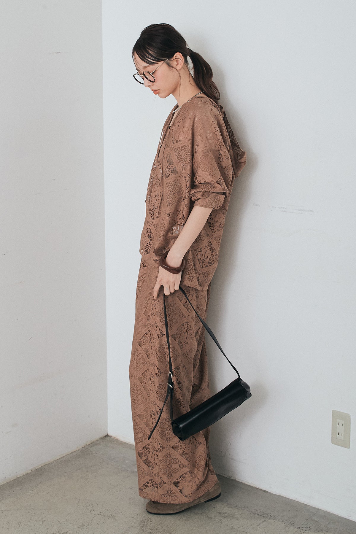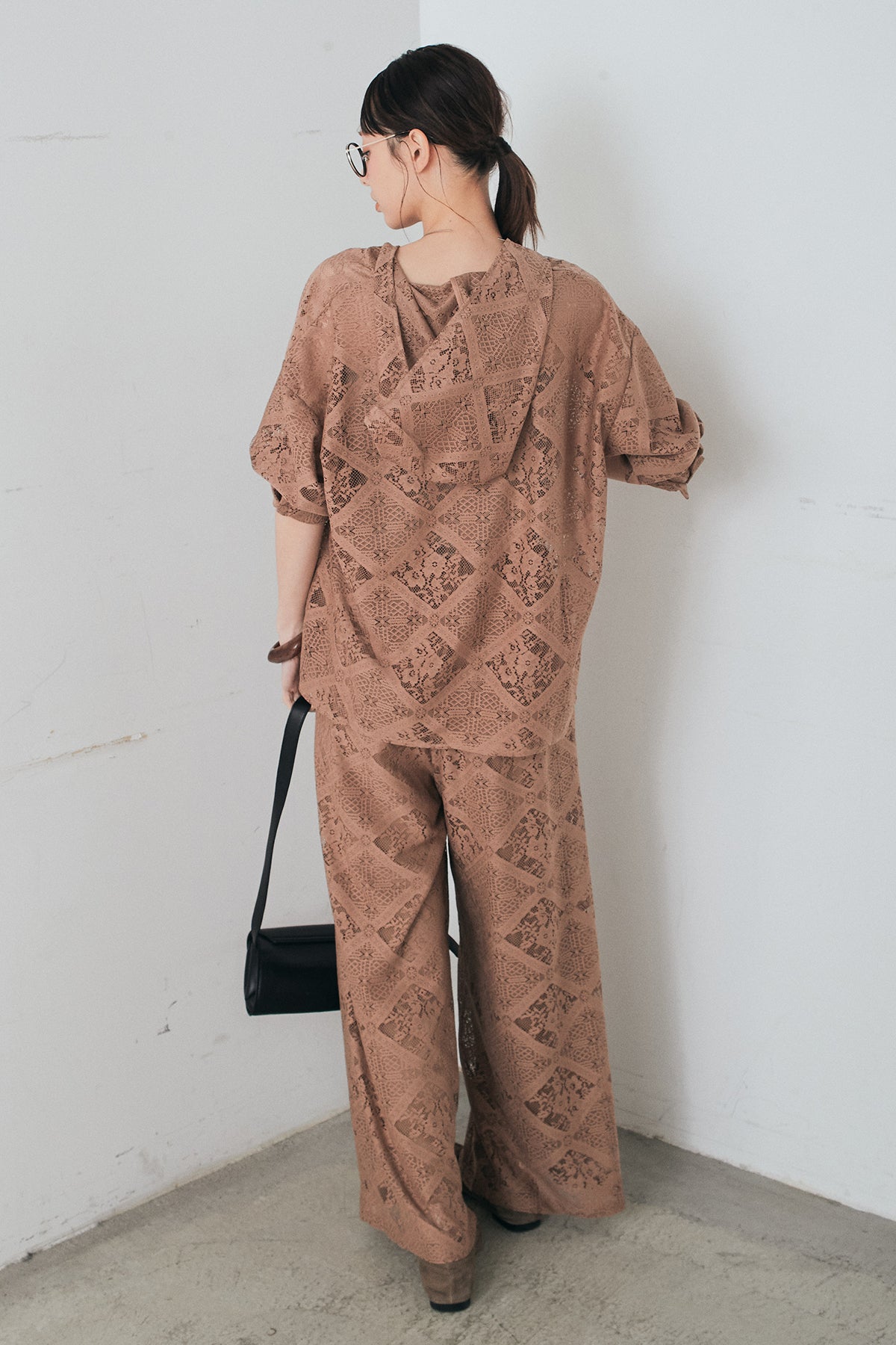 [SET]ブロックレースフード付きブラウス+リラックスブロックレースワイドパンツ(2set)