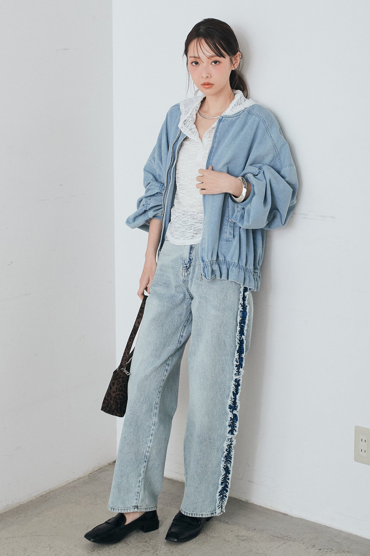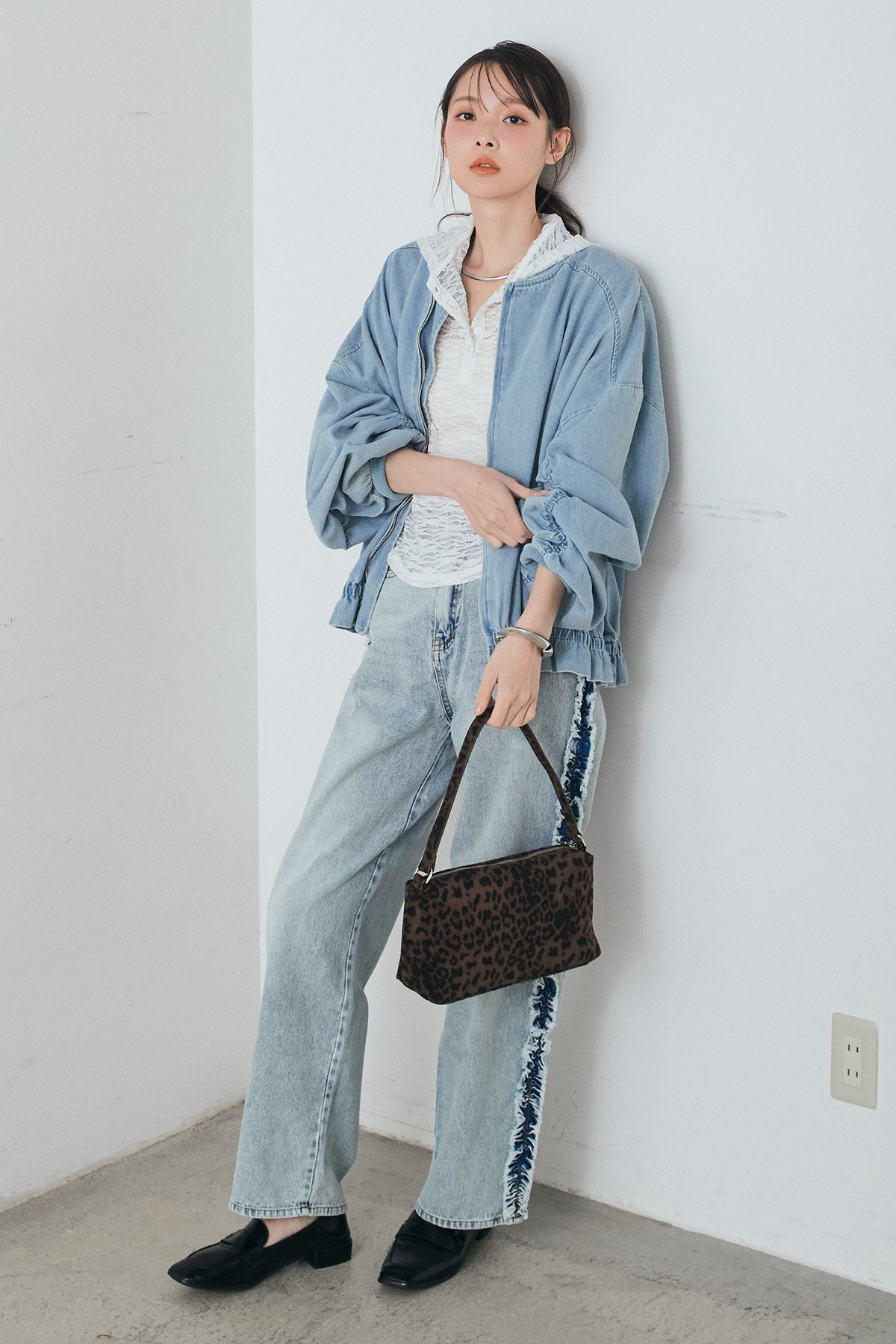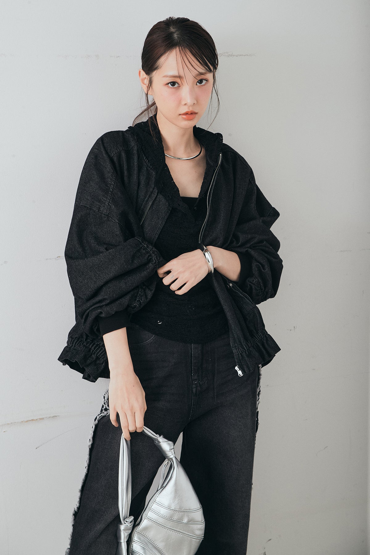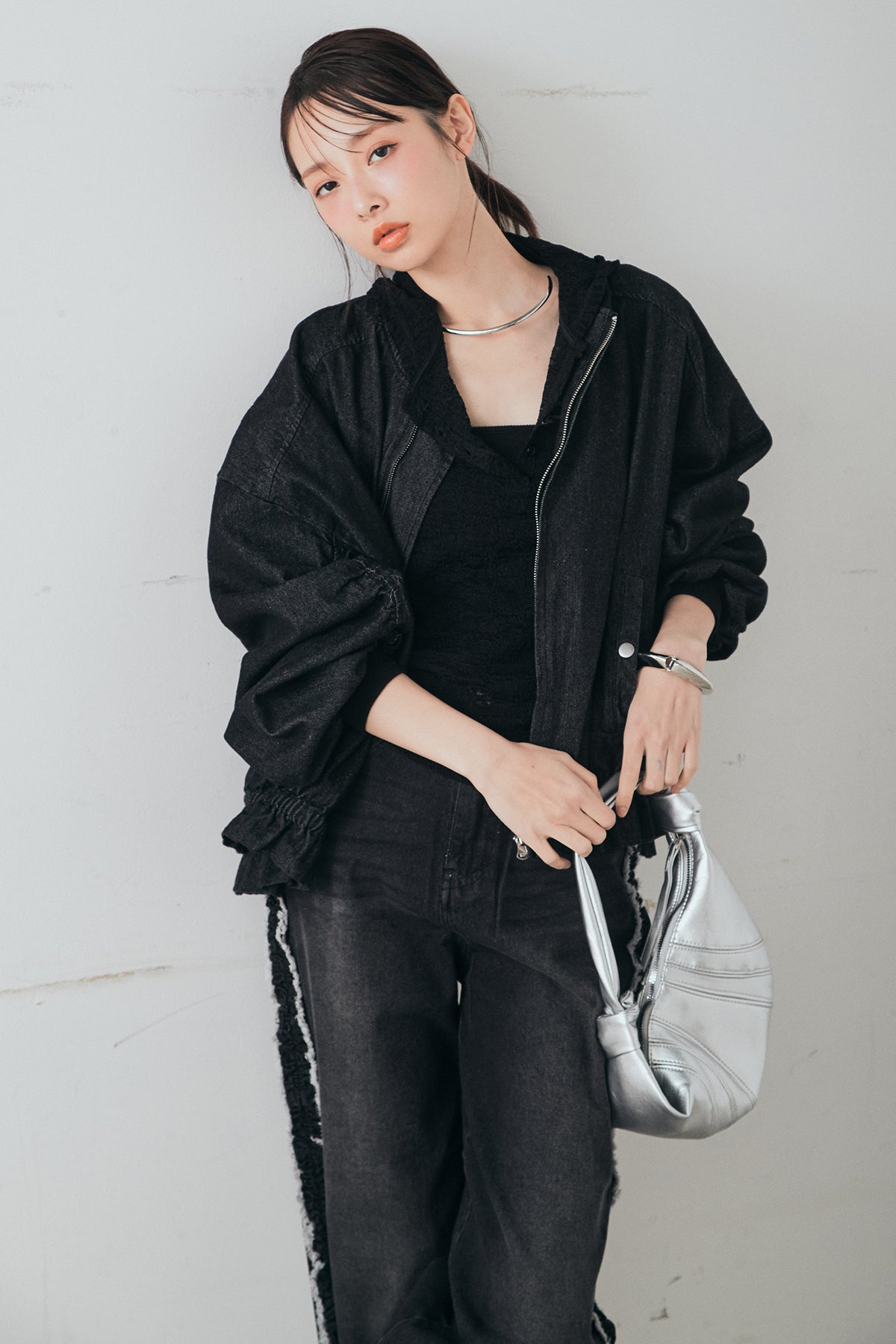 袖シャーリング裾フリルデニムブルゾンの他のセットページはこちら