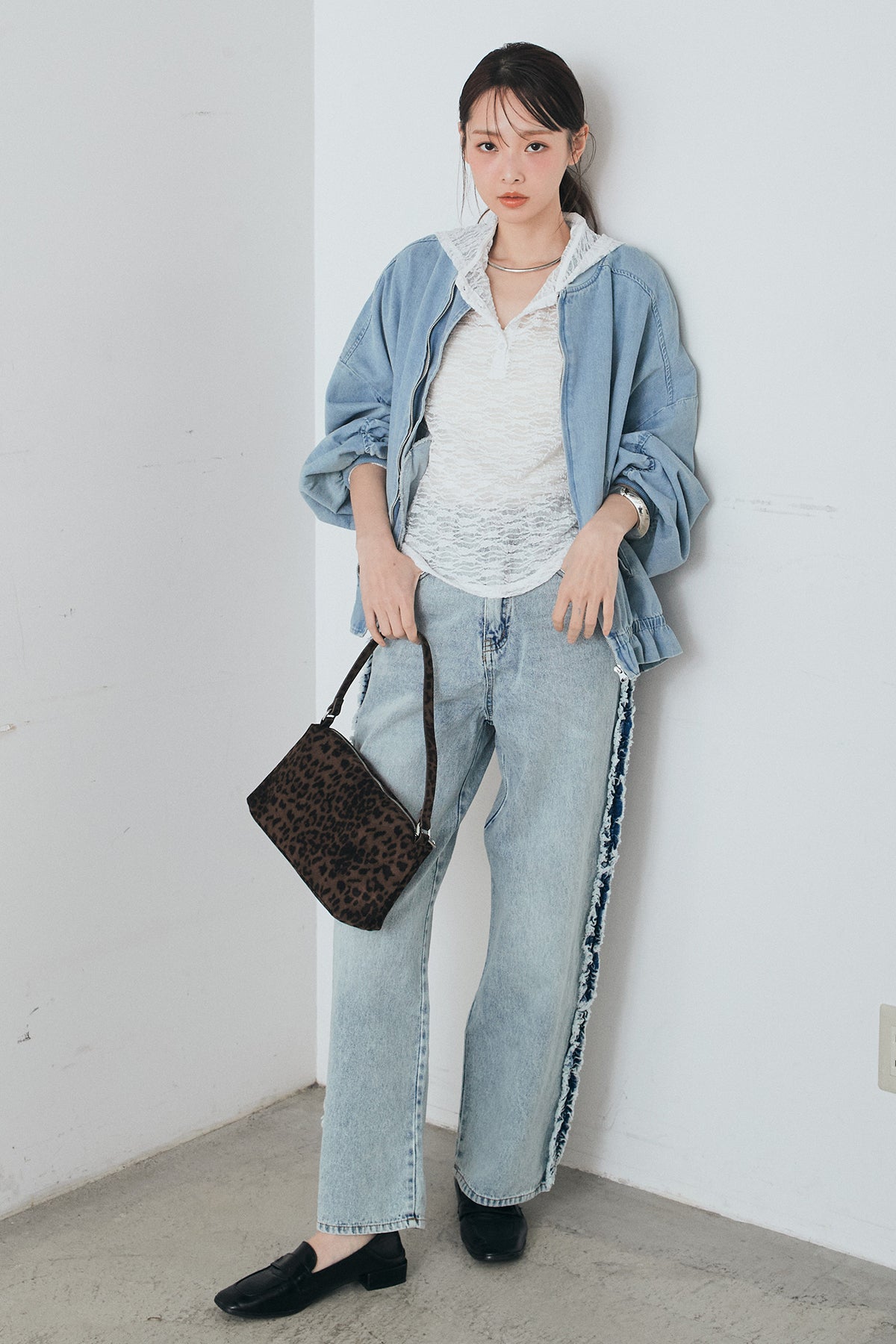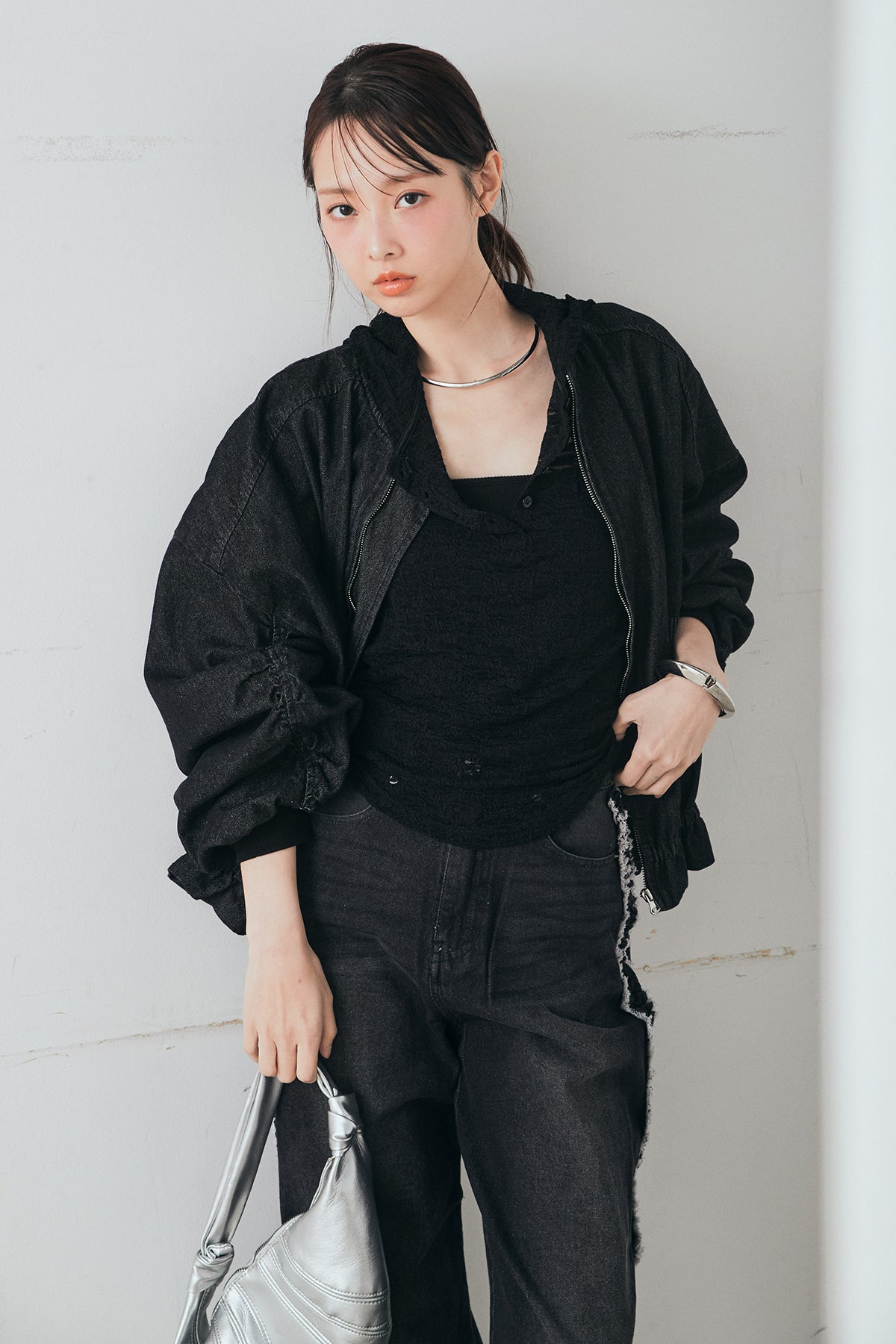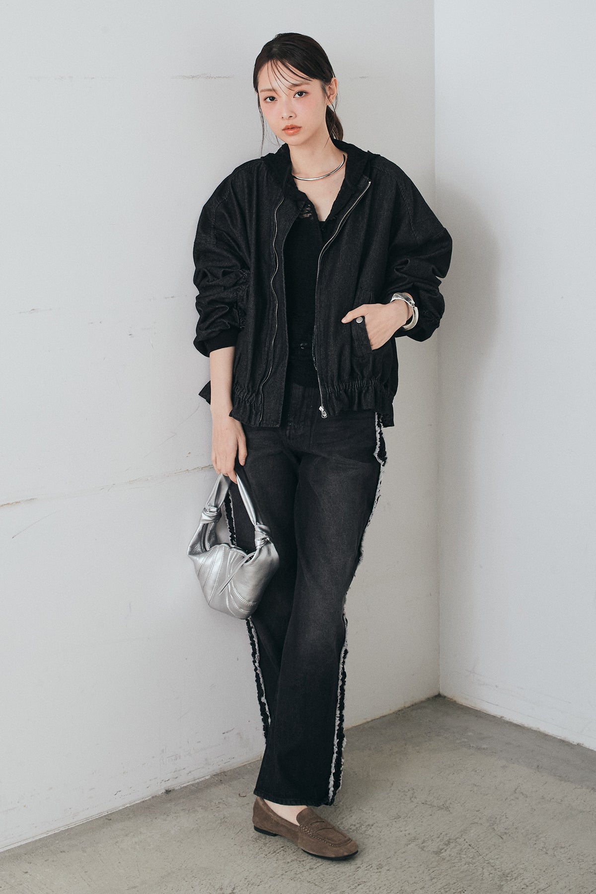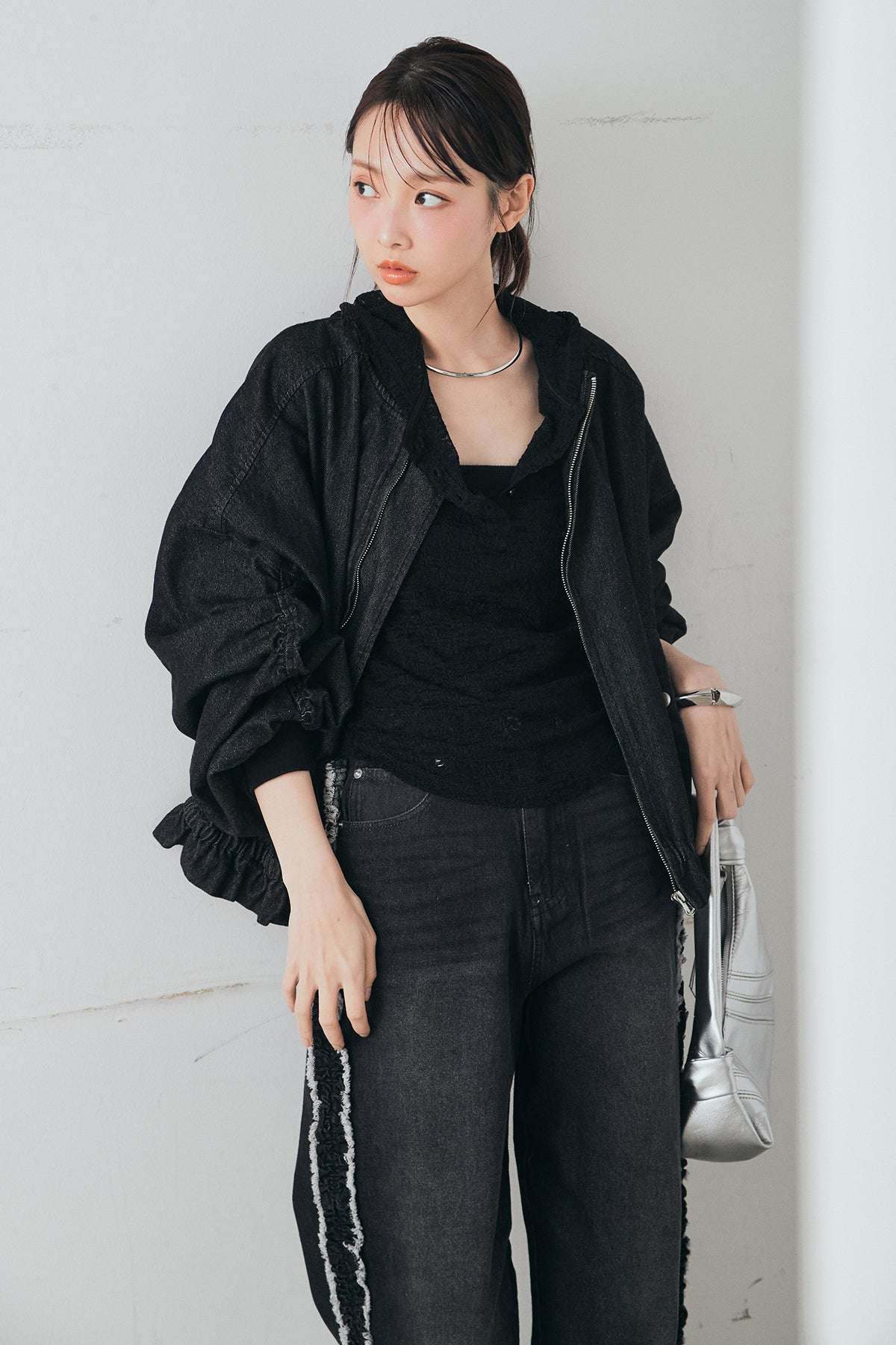 袖シャーリング裾フリルデニムブルゾンの他のセットページはこちら