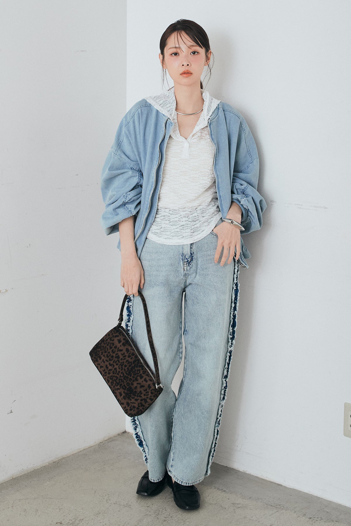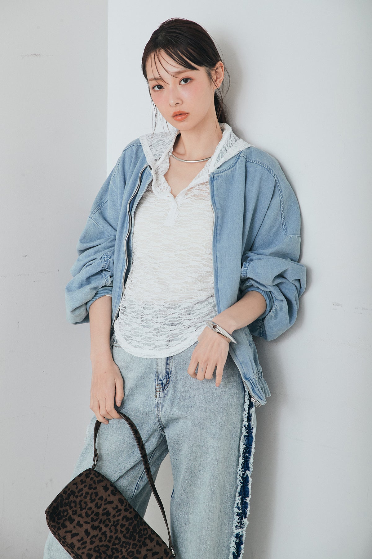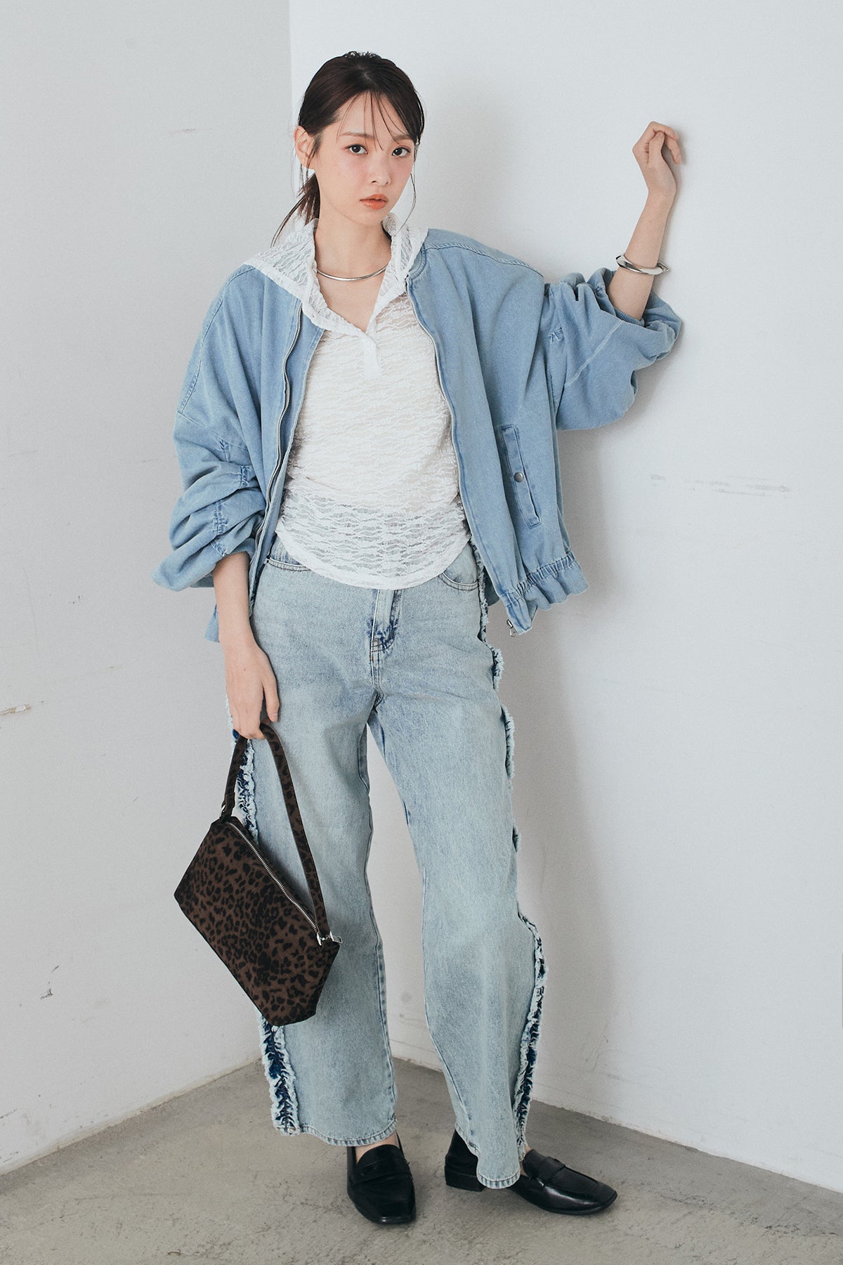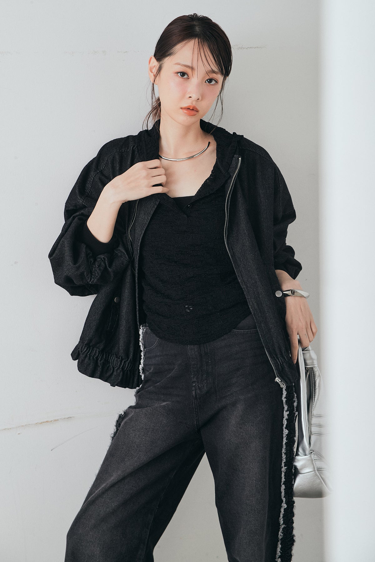 袖シャーリング裾フリルデニムブルゾンの他のセットページはこちら