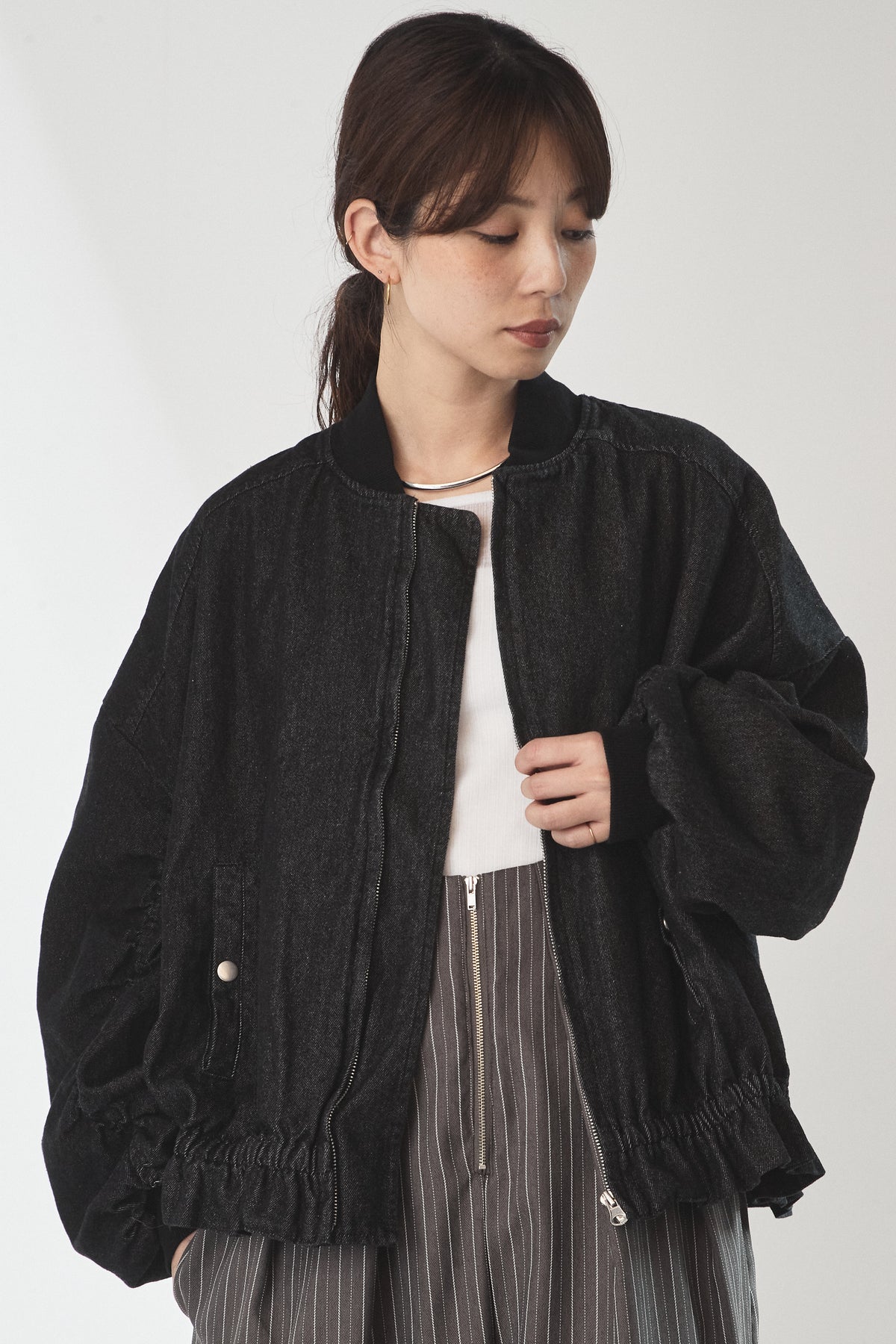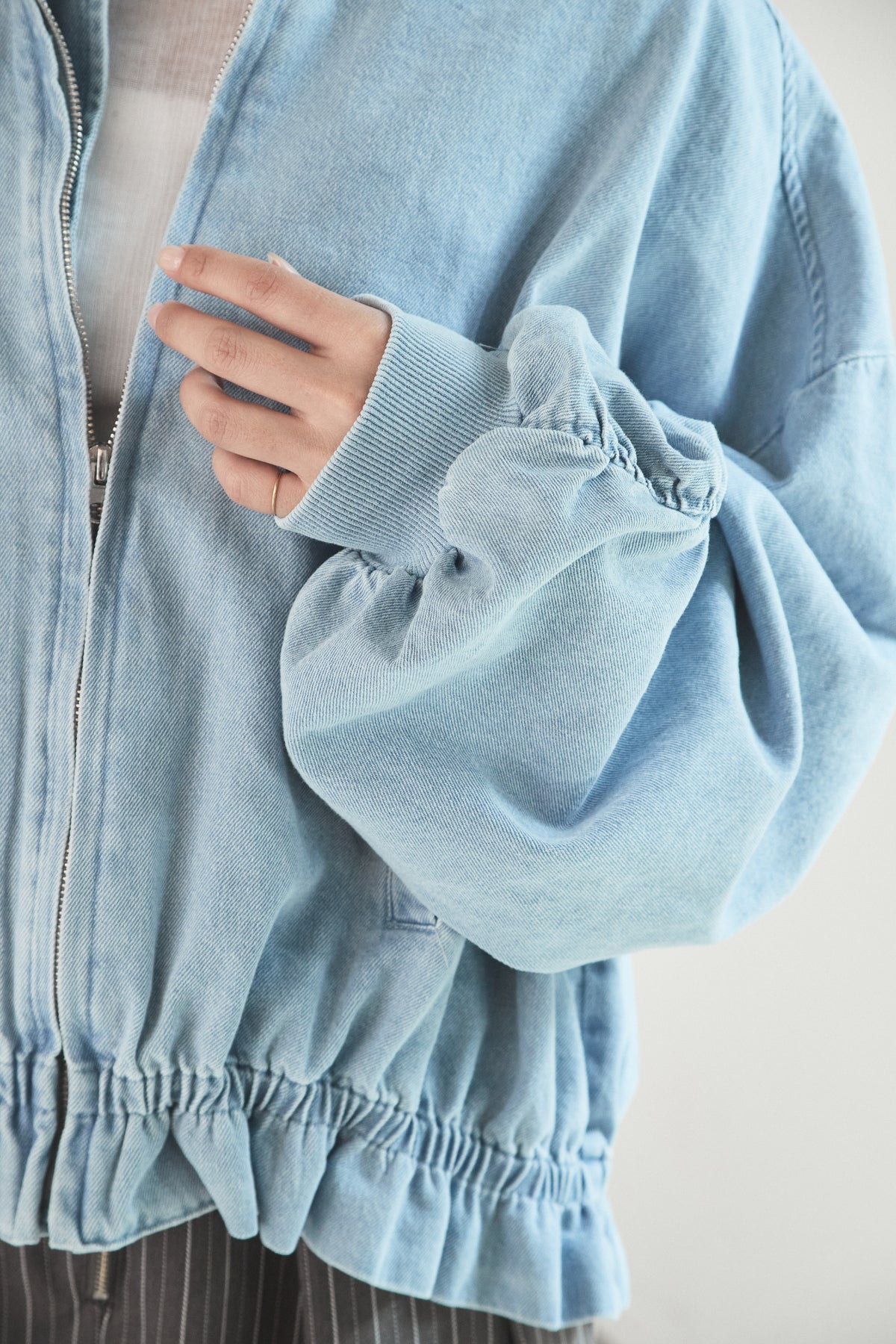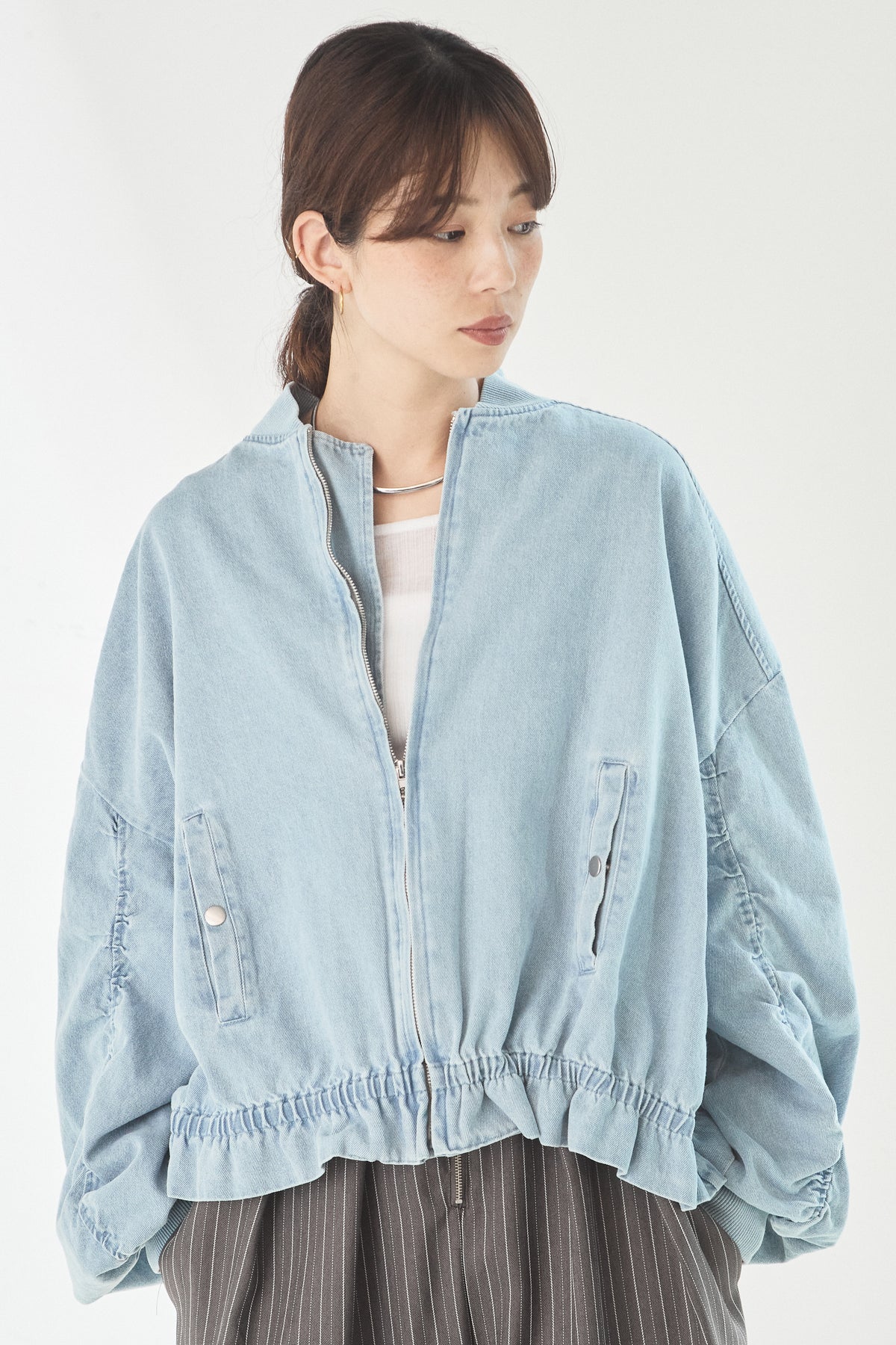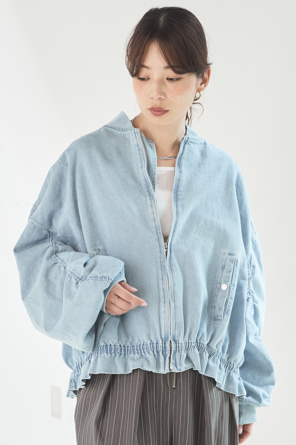 ◆ 袖シャーリング裾フリルデニムブルゾン