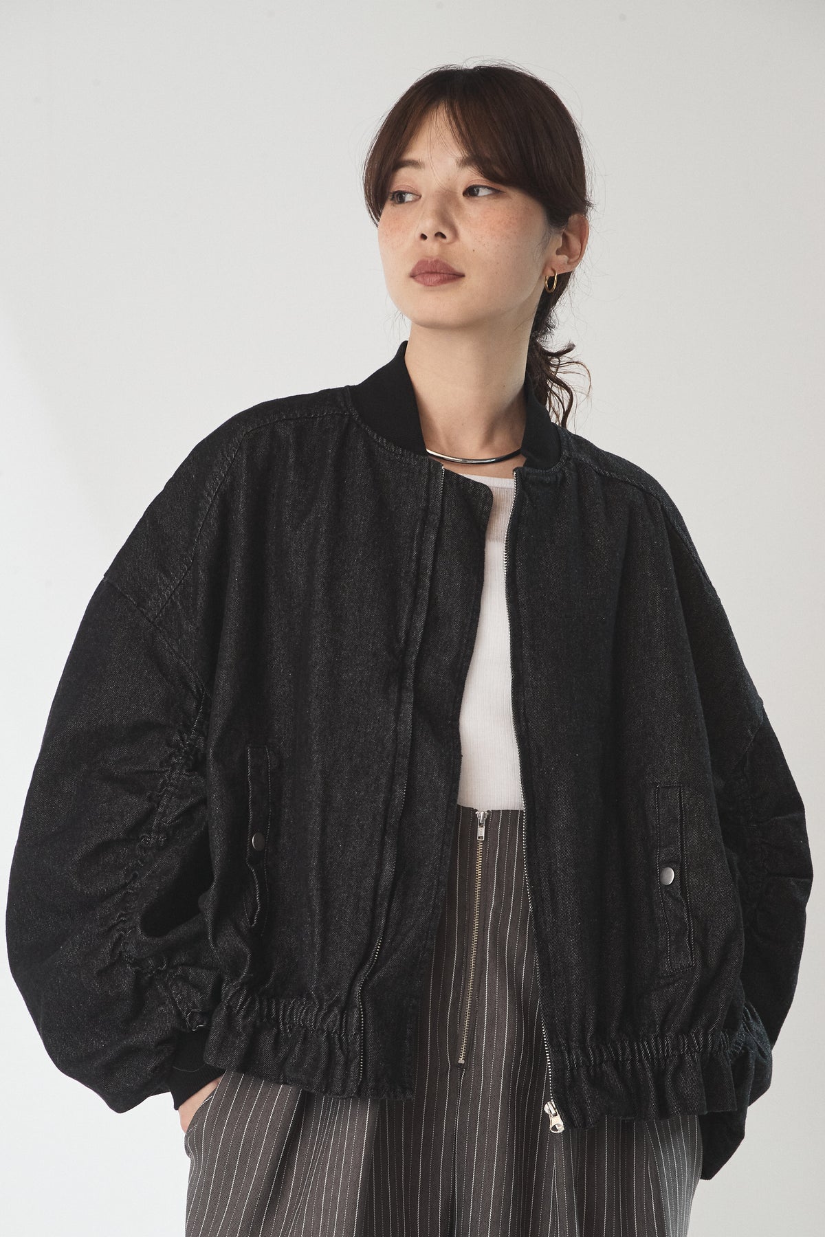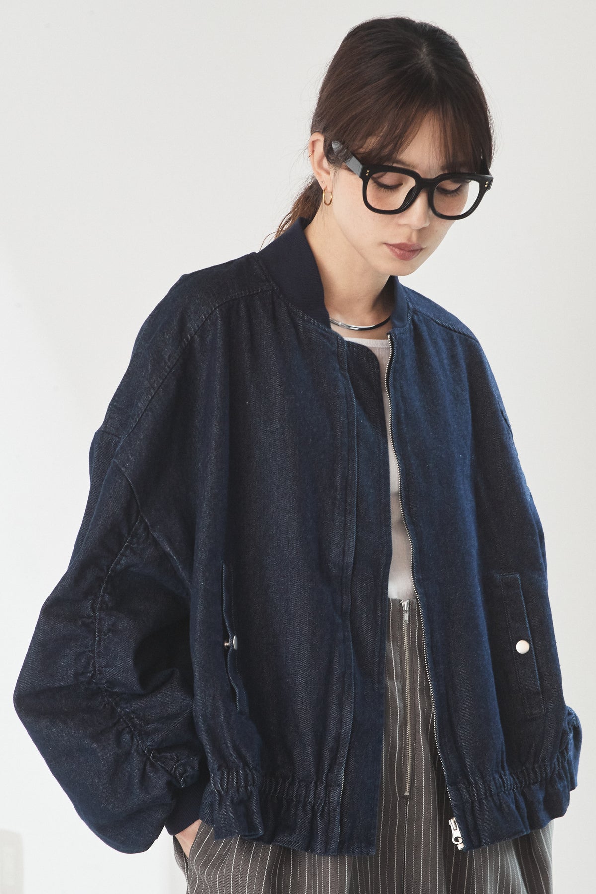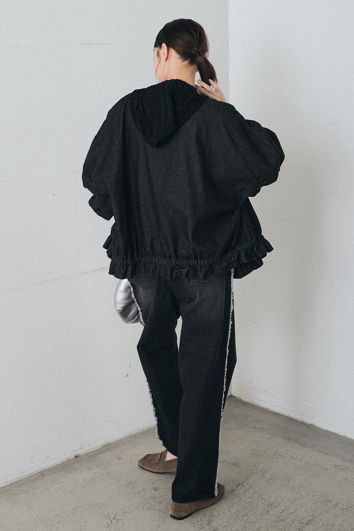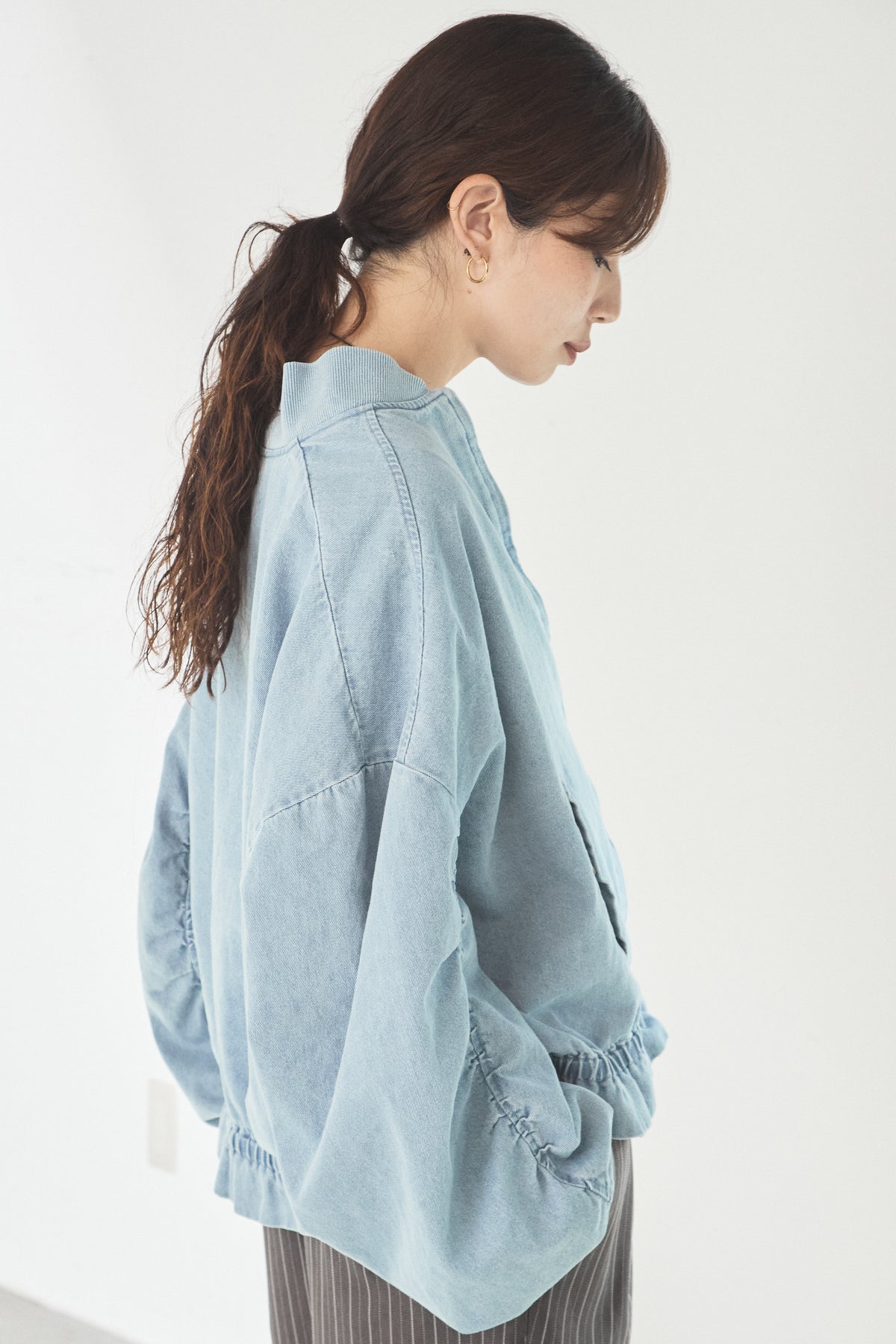 ◆ 袖シャーリング裾フリルデニムブルゾン