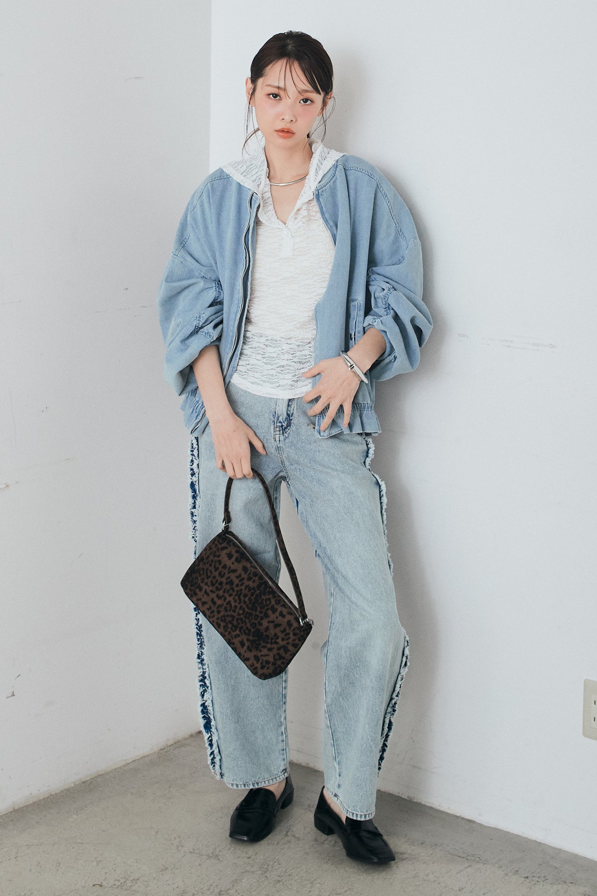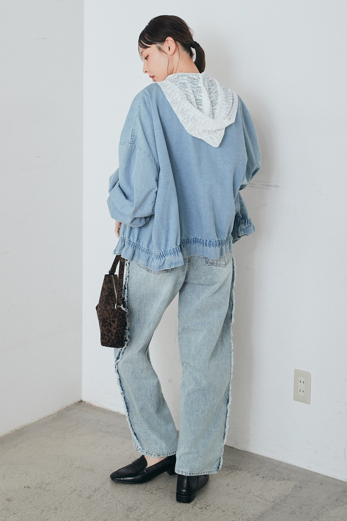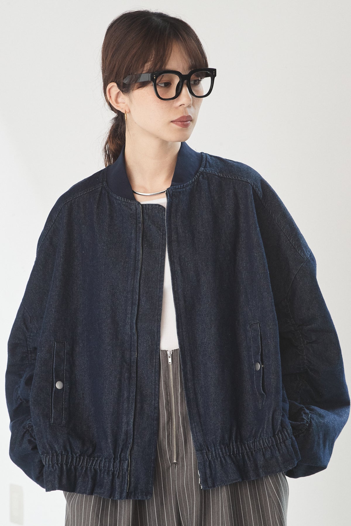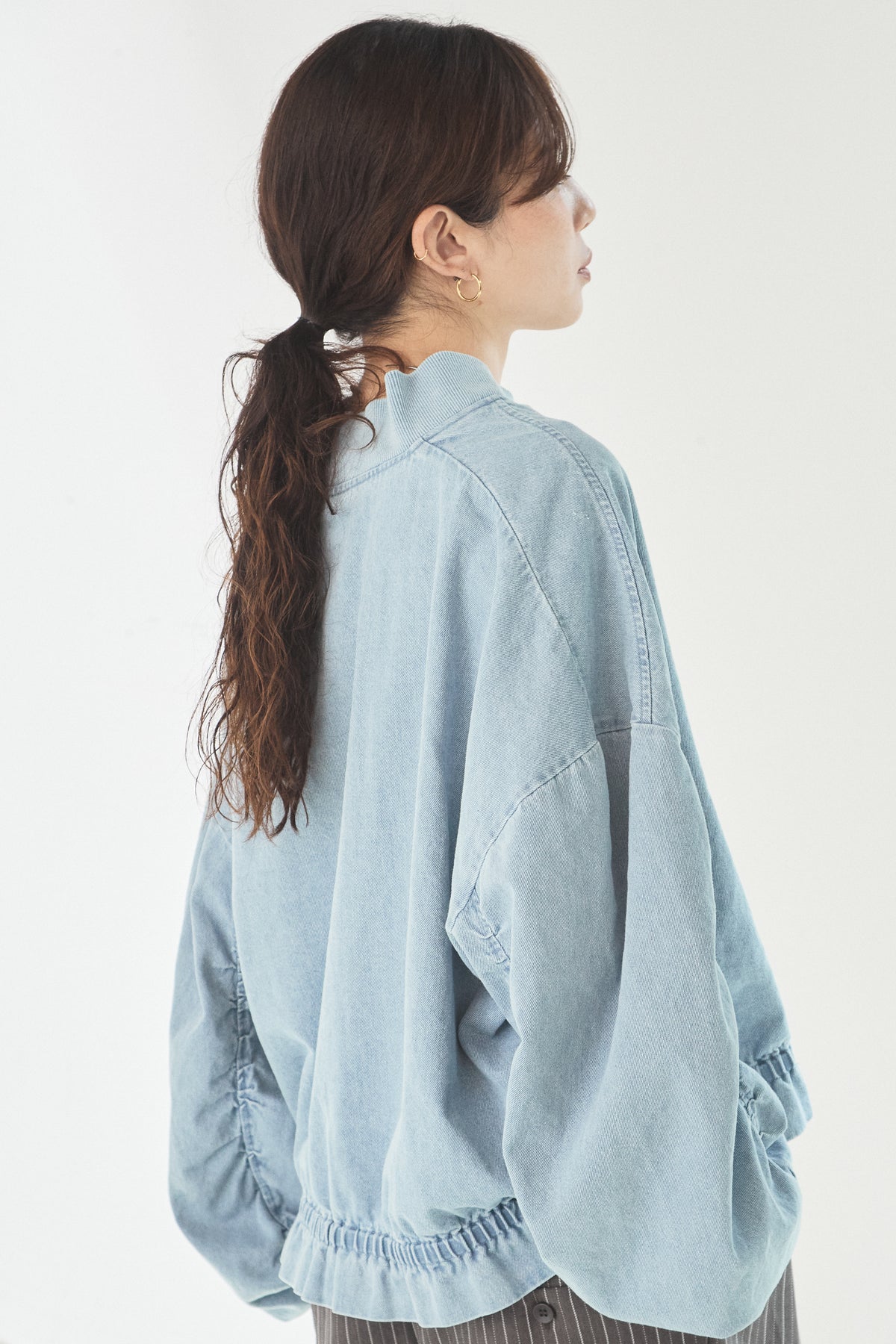 ◆ 袖シャーリング裾フリルデニムブルゾン