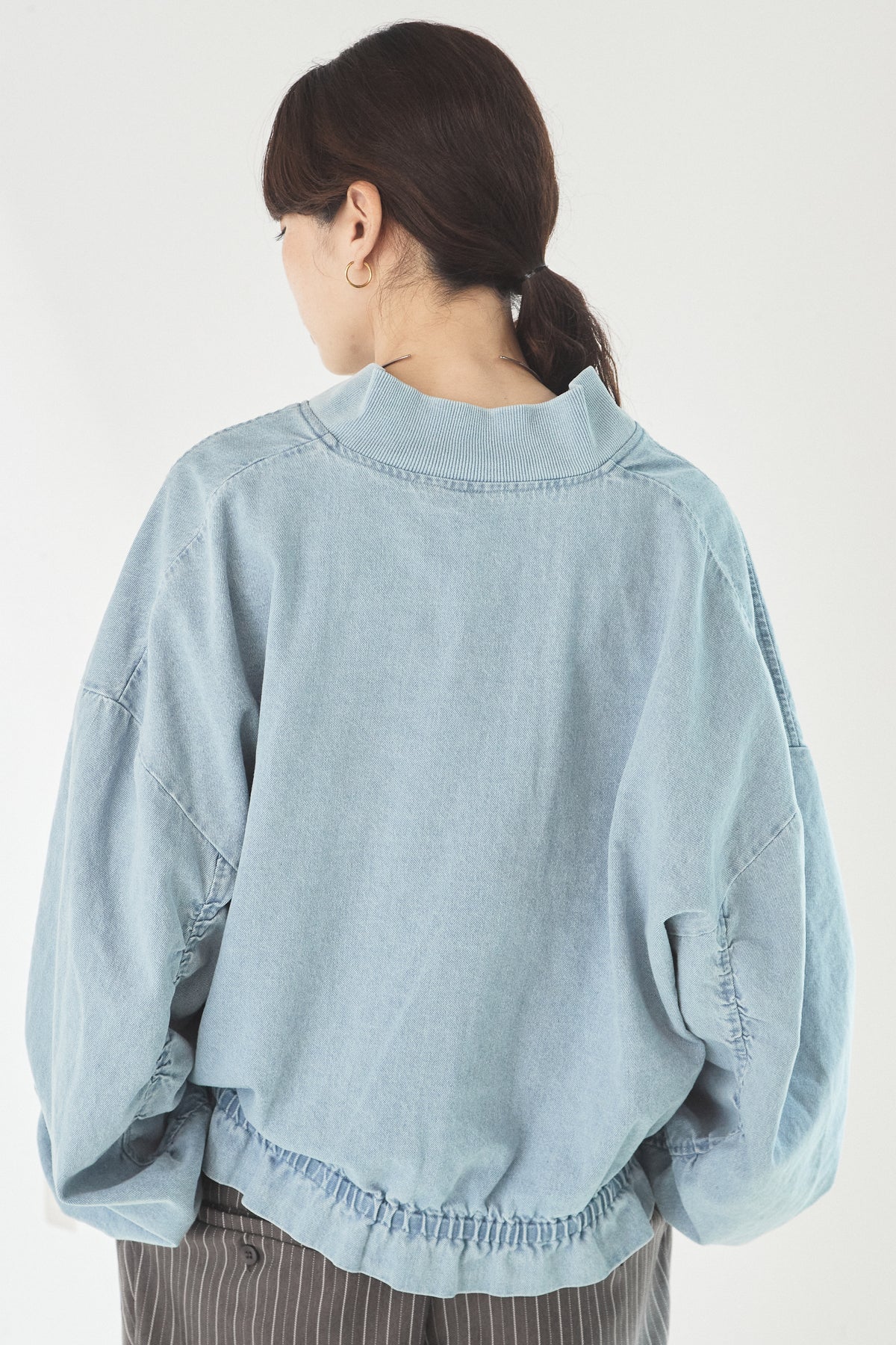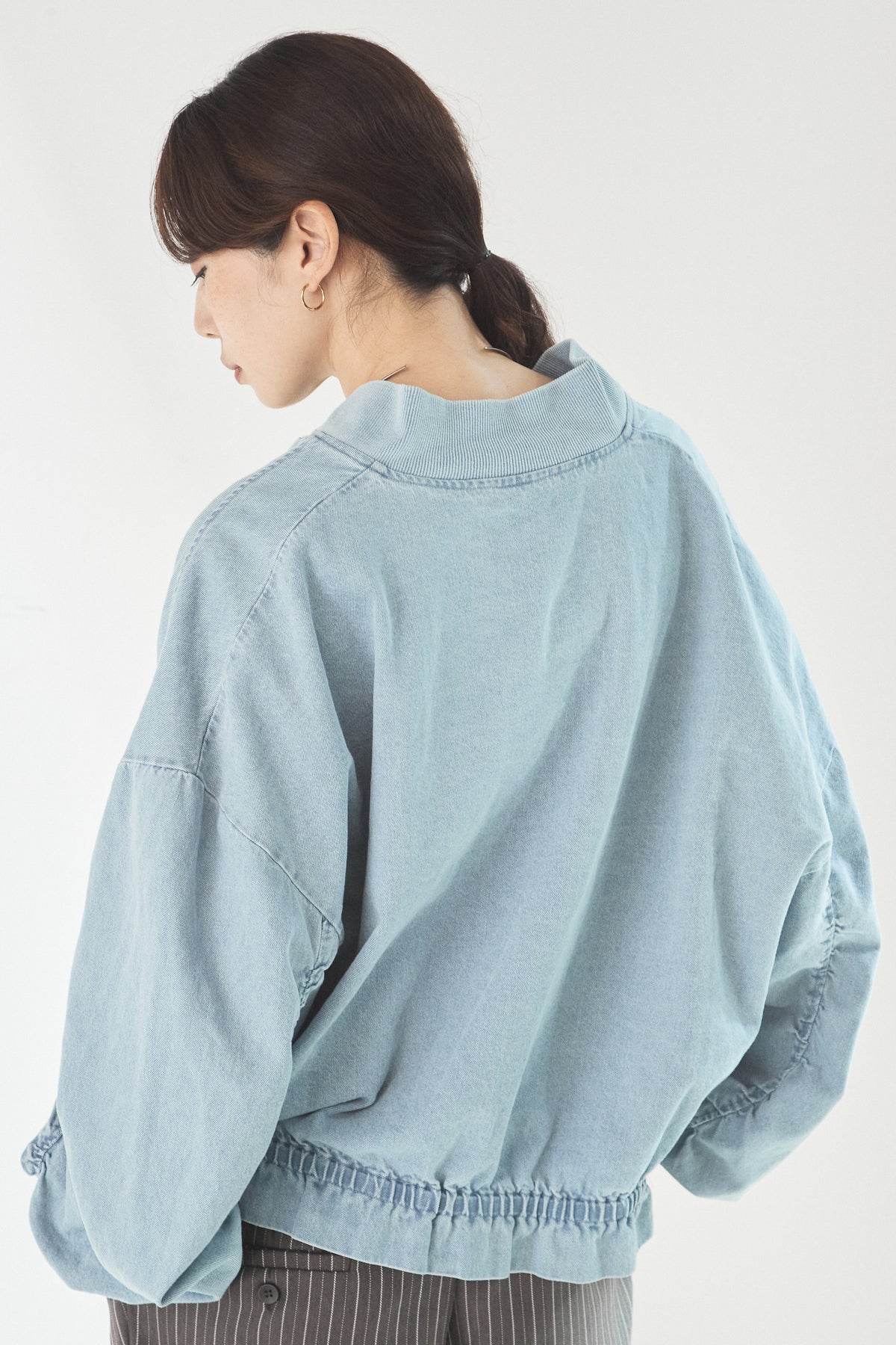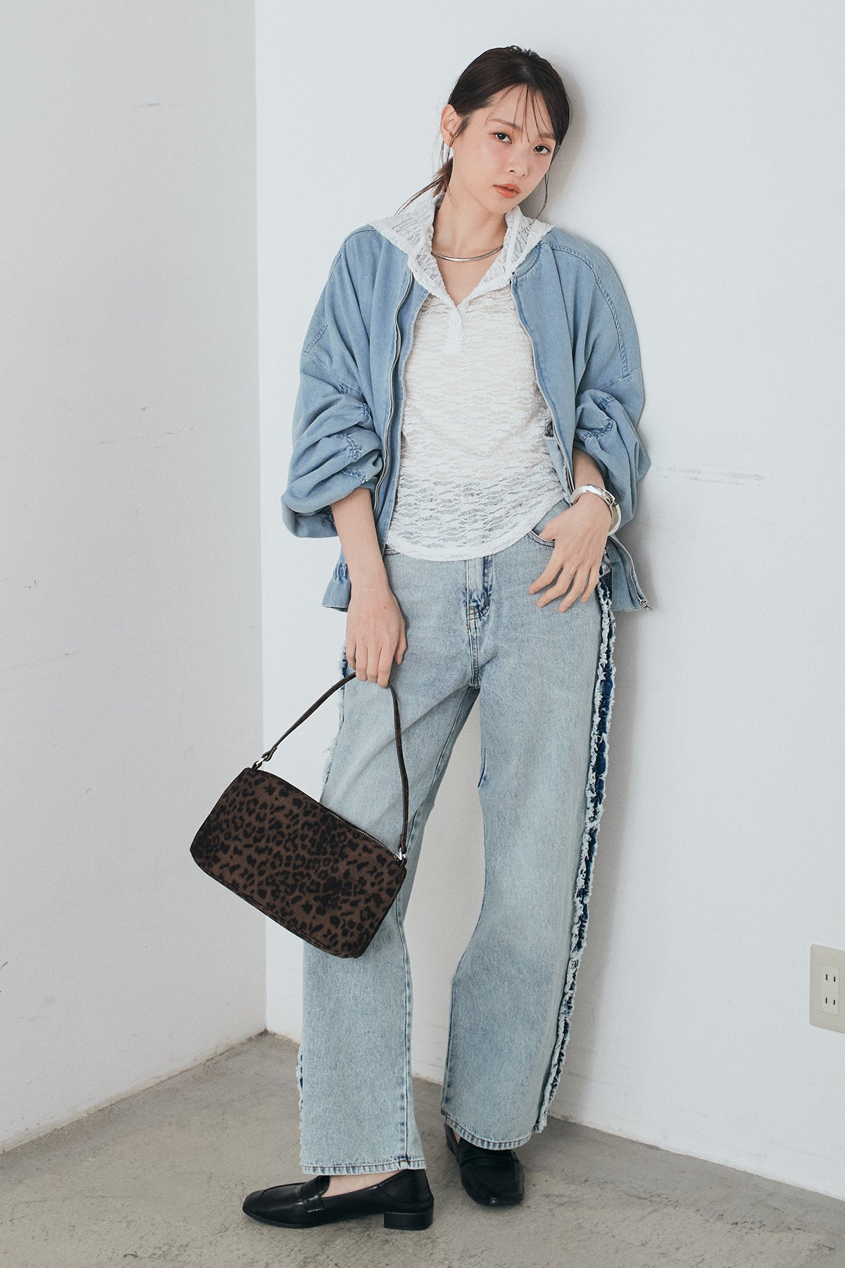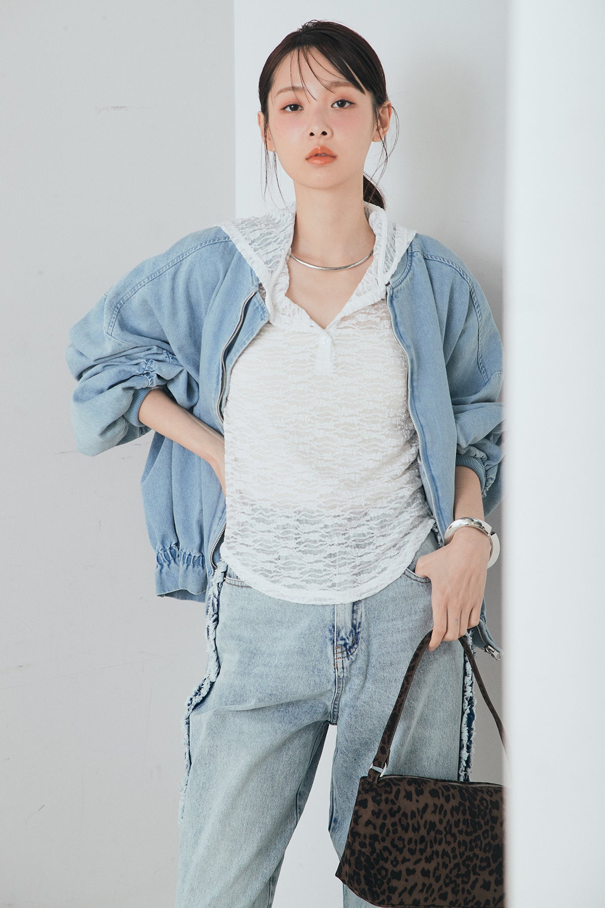 ◆ 袖シャーリング裾フリルデニムブルゾン