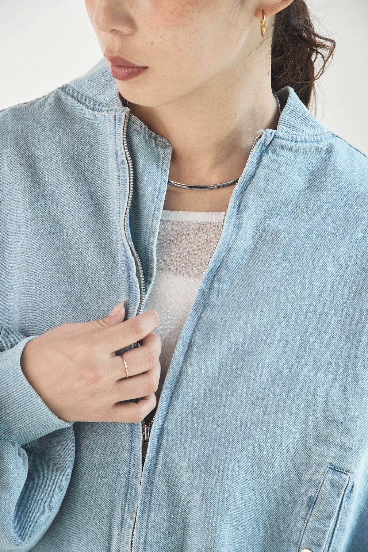 柔らかなデニム素材に、袖のシャーリングと裾のフリルデザインを組み合わせたデニムブルゾン。程よいボリューム感がありつつ、裾のギャザーがシルエットに軽やかな動きをプラスします。フロントジップ仕様で着脱しやすく、さっと羽織るだけでスタイリングに抜け感を演出。カジュアルなアイテムながら、ディテールで女性らしさを感じられる一枚です。