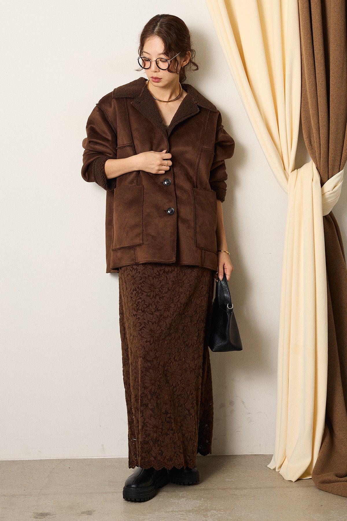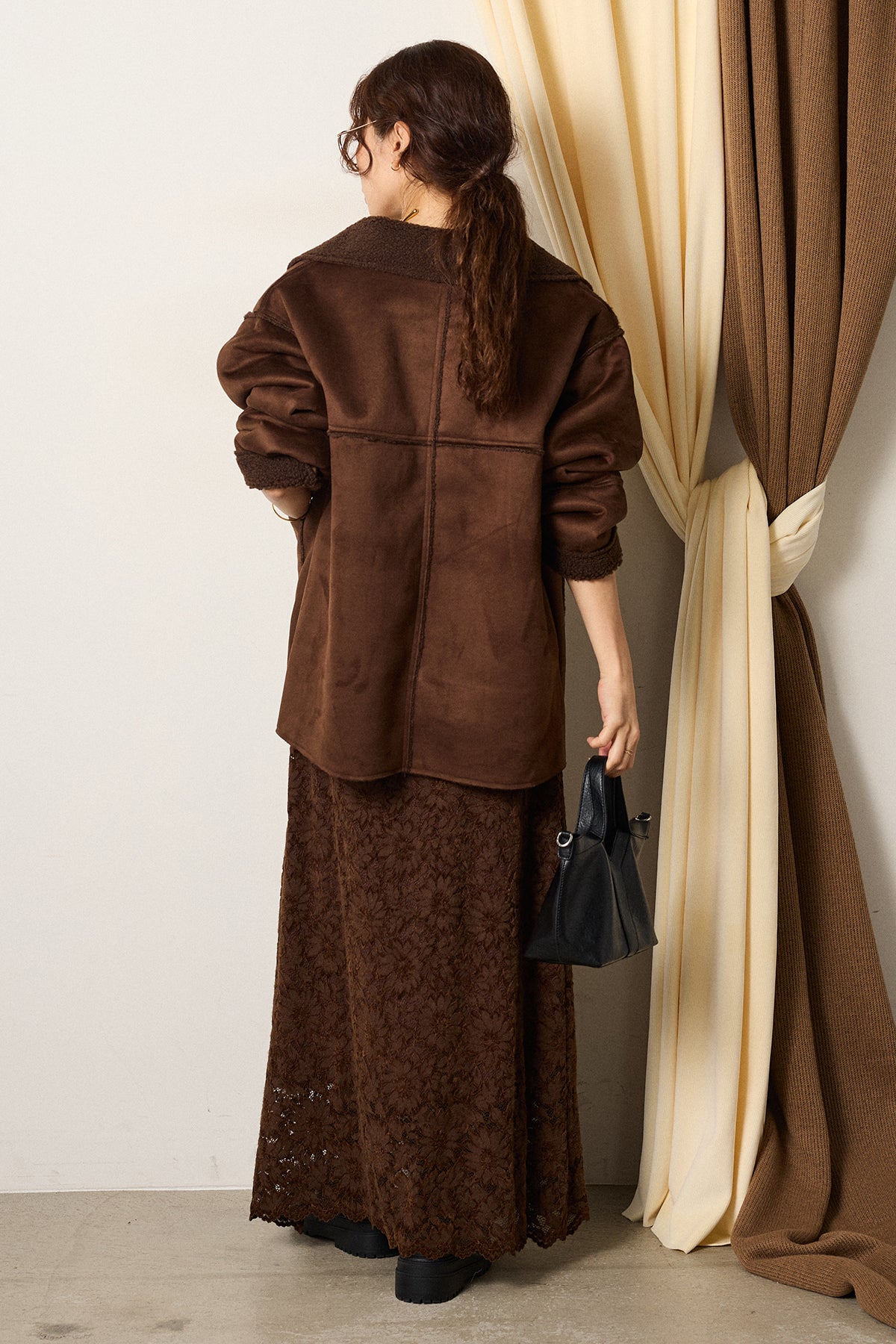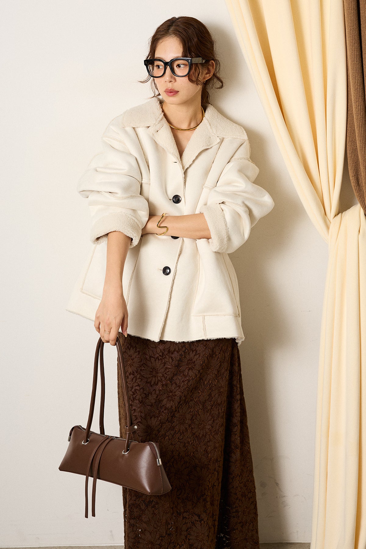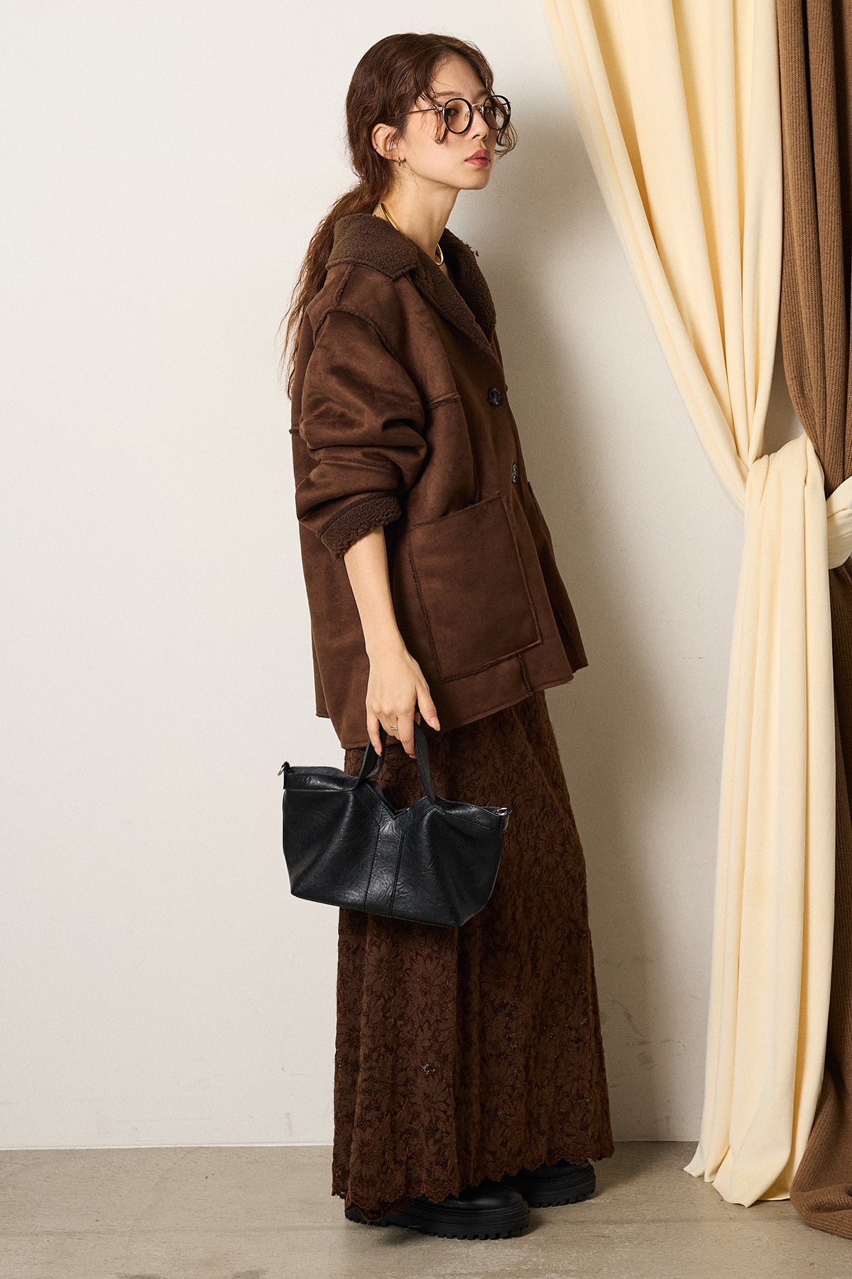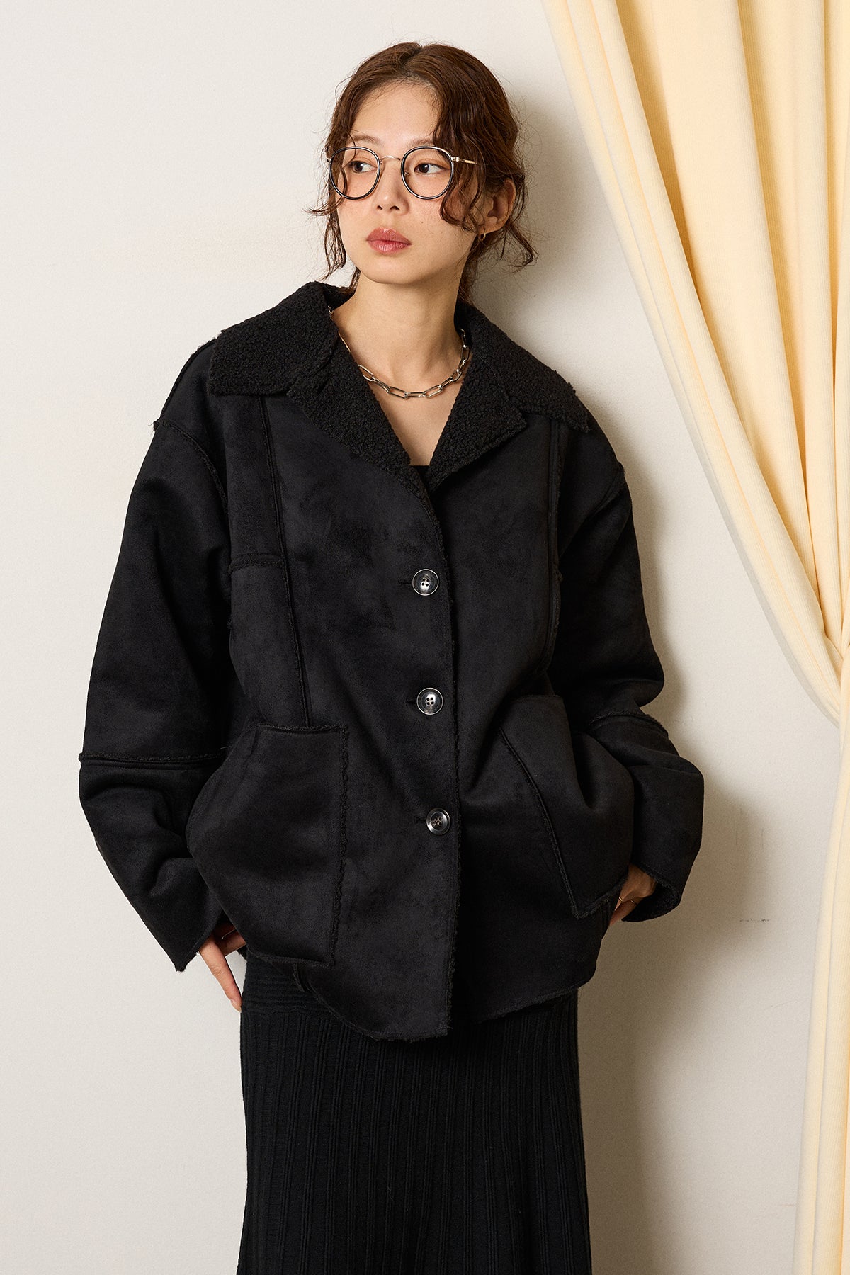 程よくボリュームのあるシルエットが魅力のエコムートンカバーオール。 滑らかなスエード調素材とふんわりとした裏ボアの組み合わせで、見た目にも暖かく季節感たっぷり。 ゆったりとした身幅で厚手のニットにも重ねやすく、デイリー使いに最適です。 大きめのポケットがアクセントになり、実用性とデザイン性を兼ね備えた一枚。