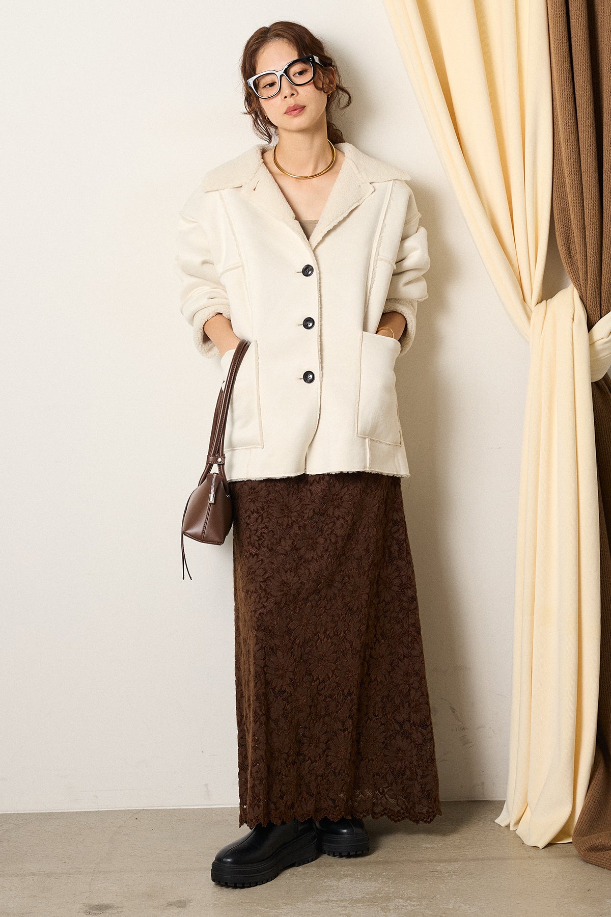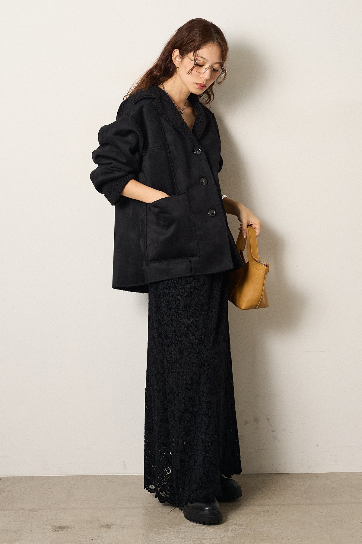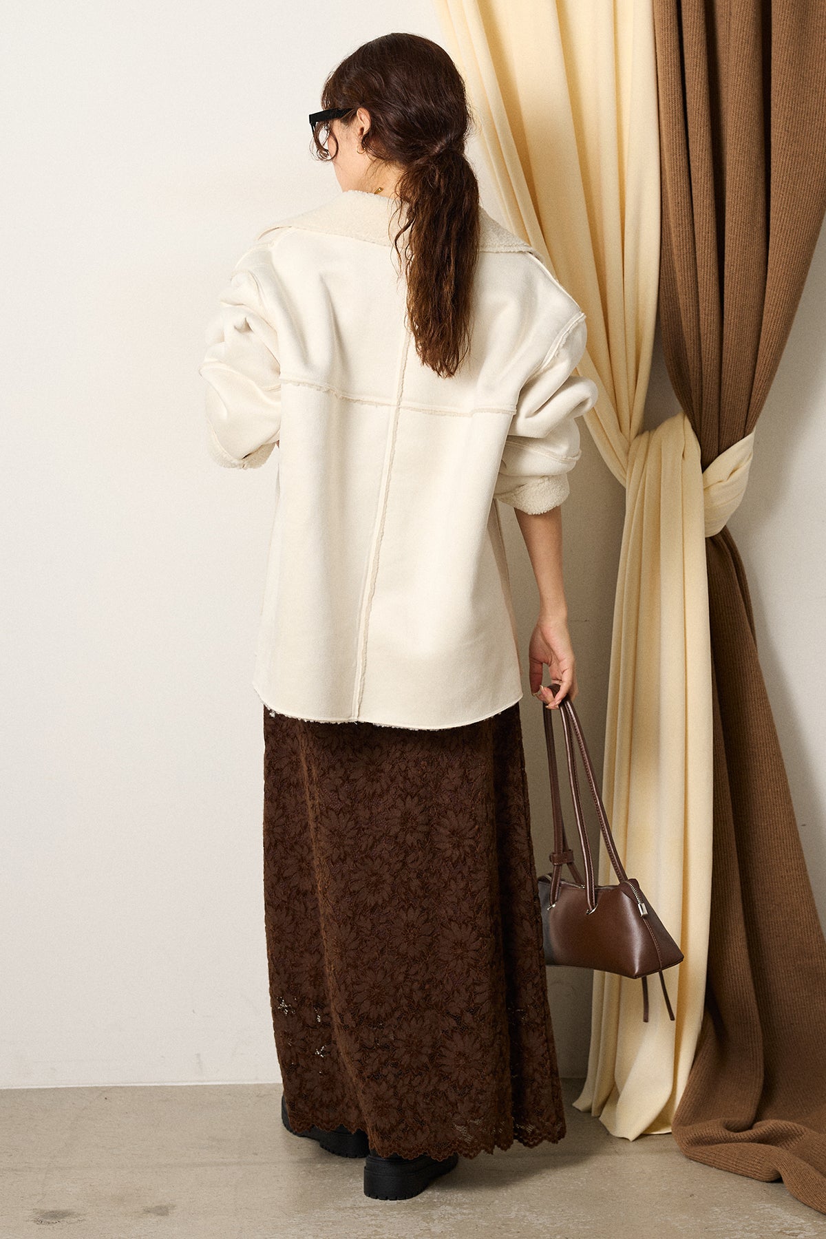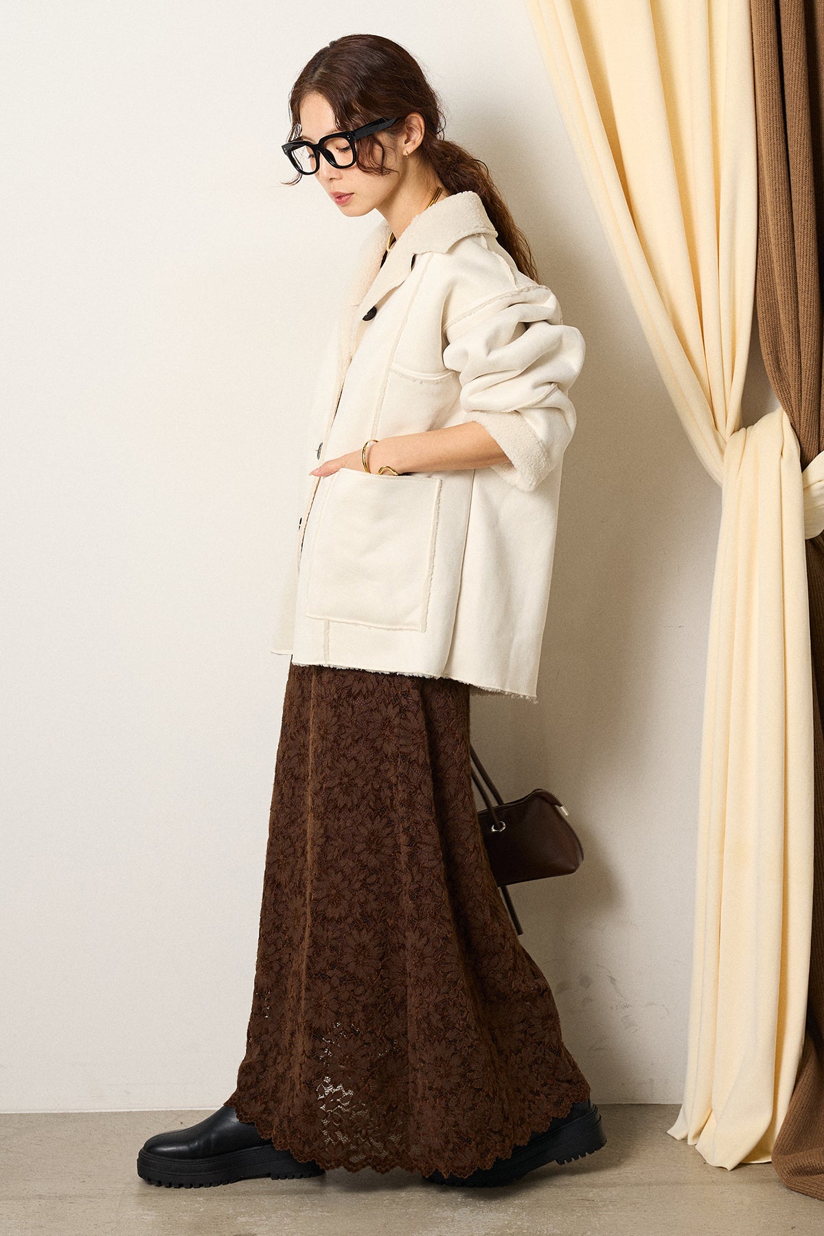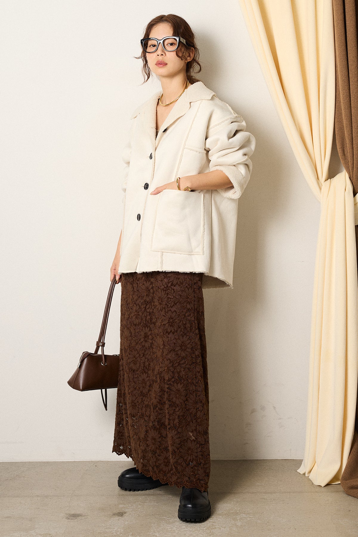 程よくボリュームのあるシルエットが魅力のエコムートンカバーオール。 滑らかなスエード調素材とふんわりとした裏ボアの組み合わせで、見た目にも暖かく季節感たっぷり。 ゆったりとした身幅で厚手のニットにも重ねやすく、デイリー使いに最適です。 大きめのポケットがアクセントになり、実用性とデザイン性を兼ね備えた一枚。