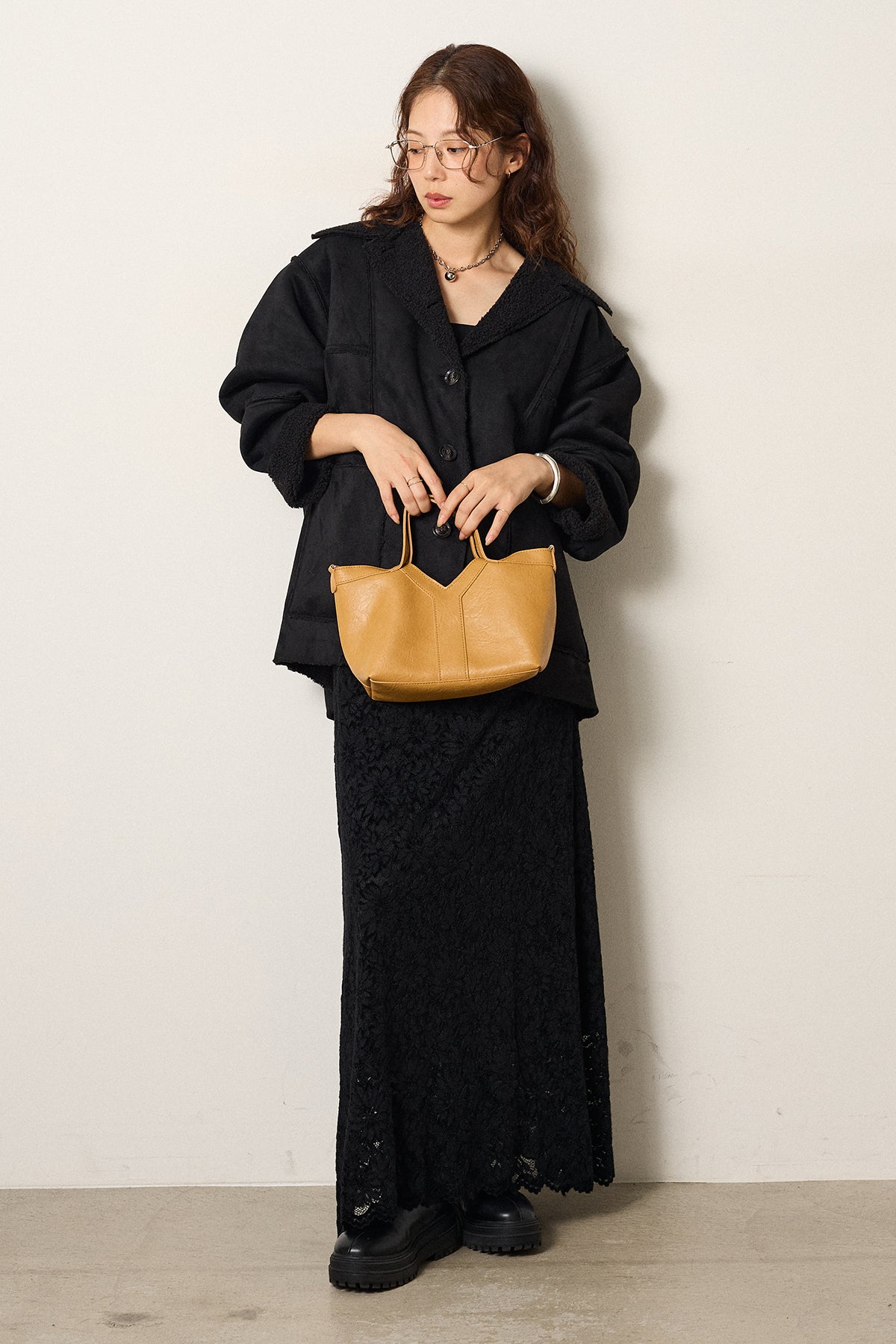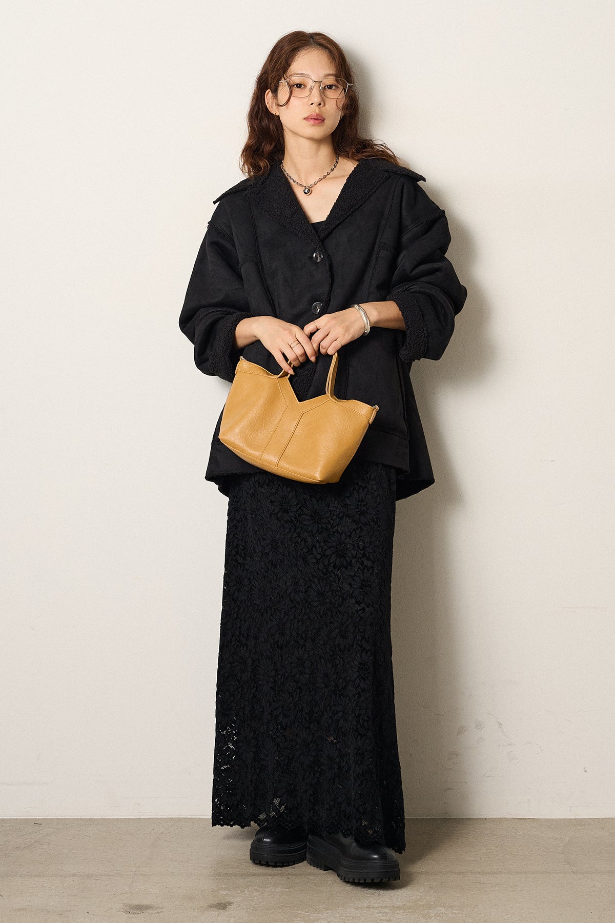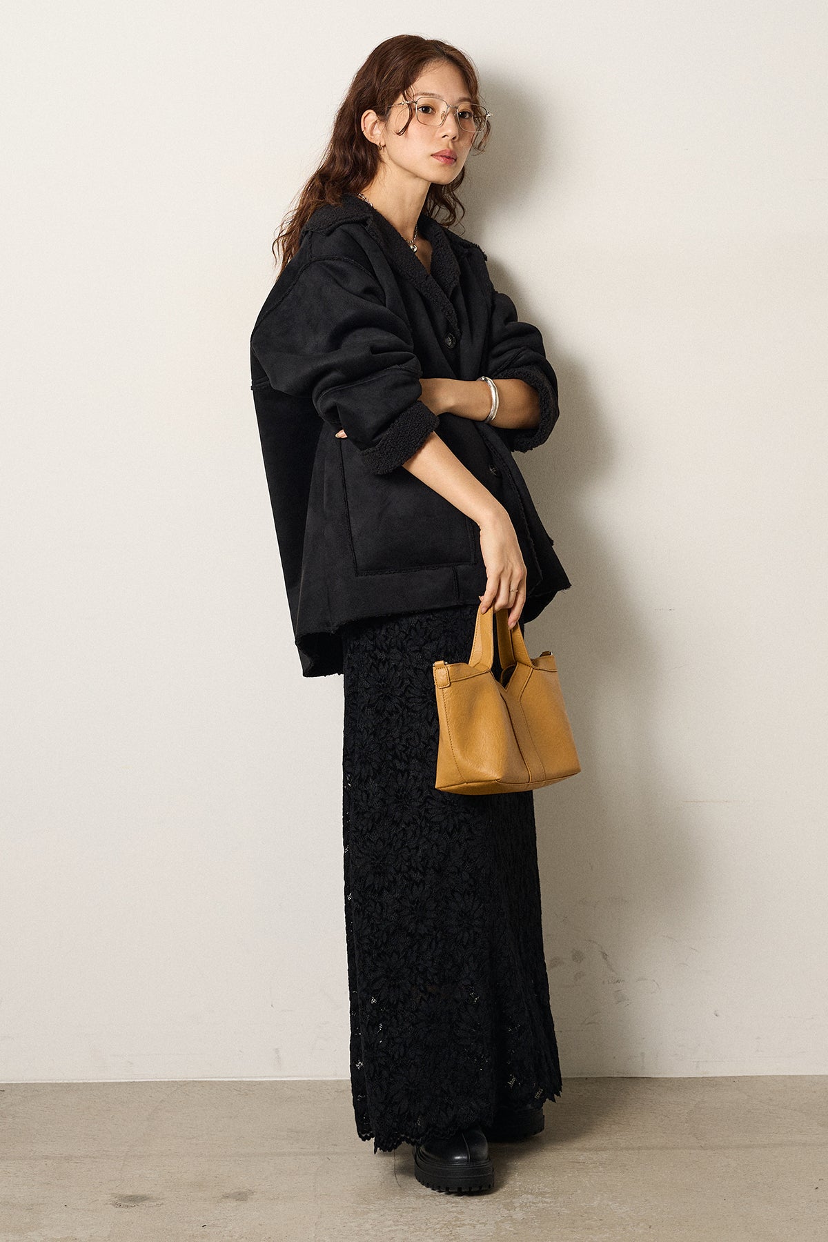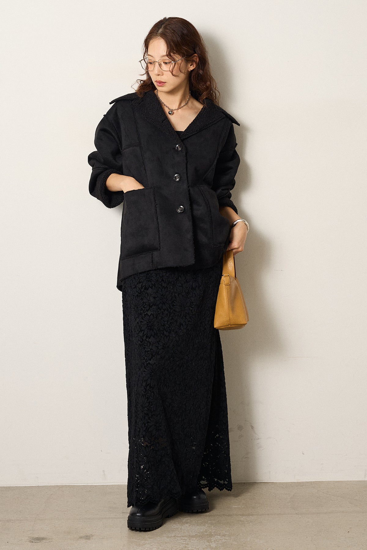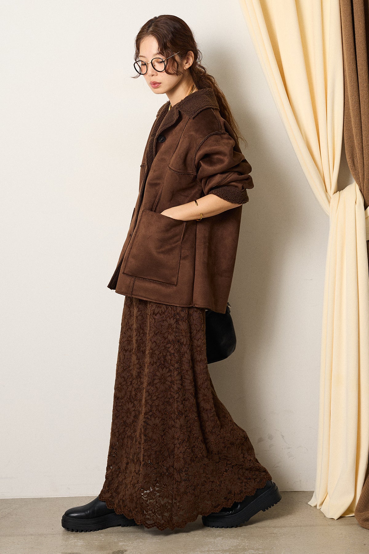 程よくボリュームのあるシルエットが魅力のエコムートンカバーオール。 滑らかなスエード調素材とふんわりとした裏ボアの組み合わせで、見た目にも暖かく季節感たっぷり。 ゆったりとした身幅で厚手のニットにも重ねやすく、デイリー使いに最適です。 大きめのポケットがアクセントになり、実用性とデザイン性を兼ね備えた一枚。
