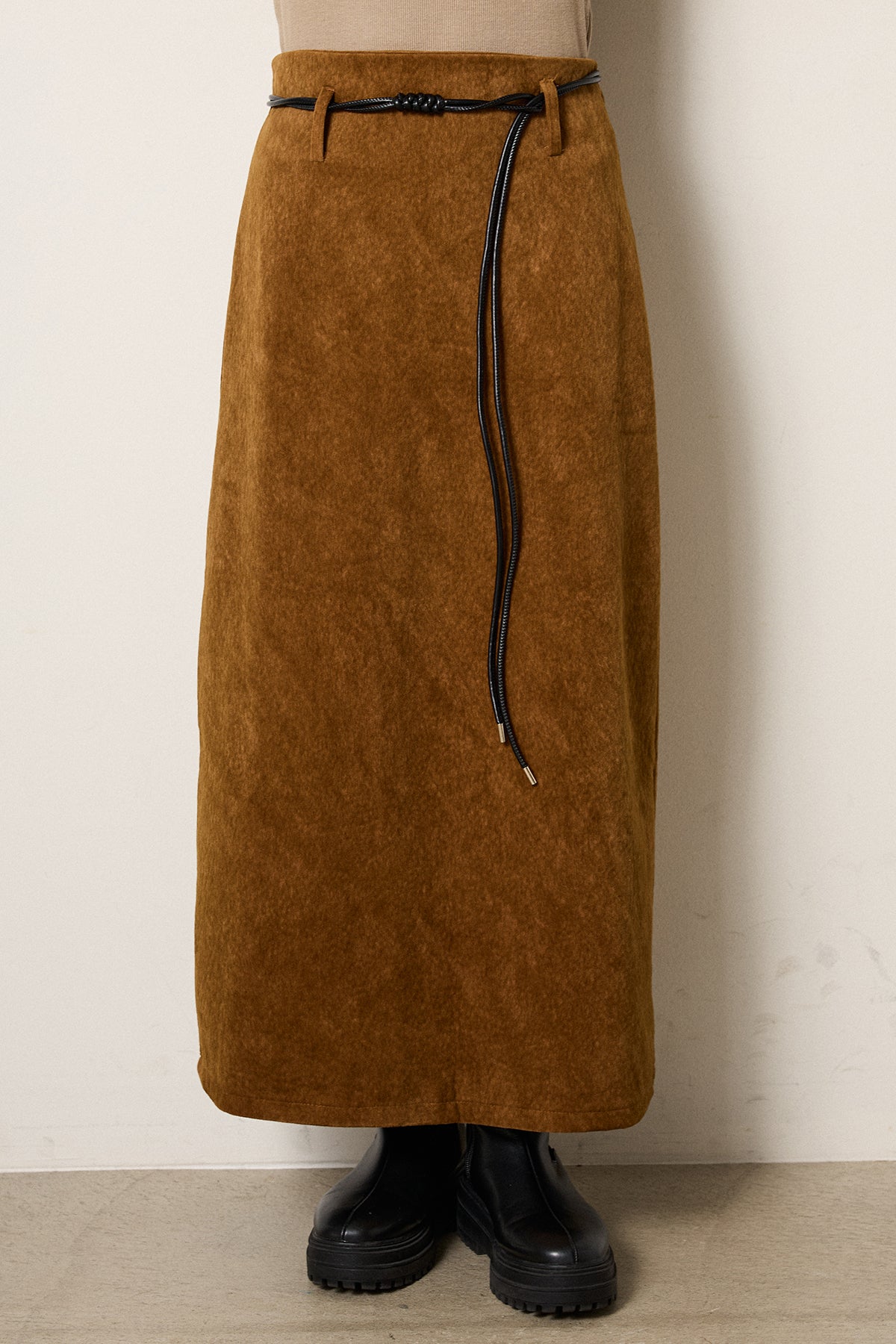 ロープベルト付きスウェード調スカート
