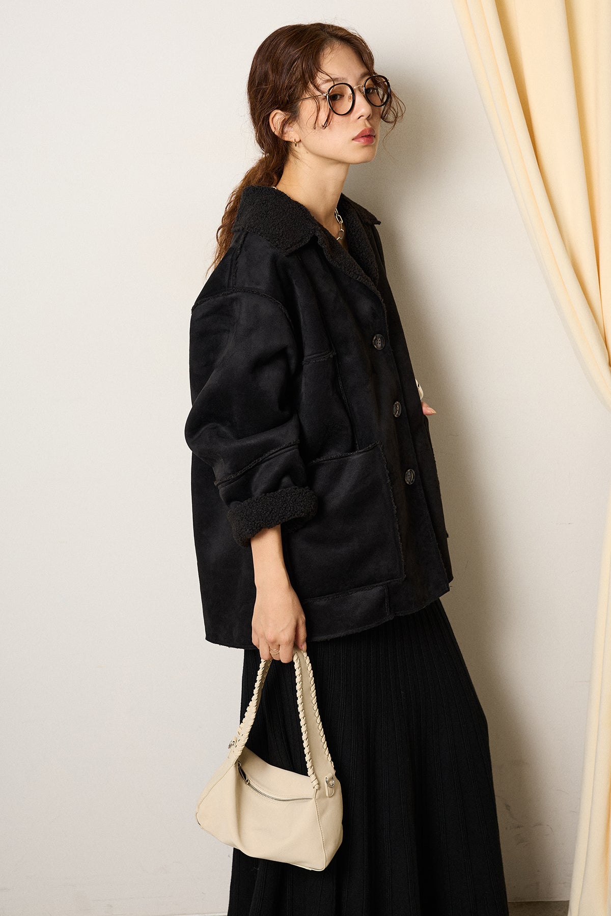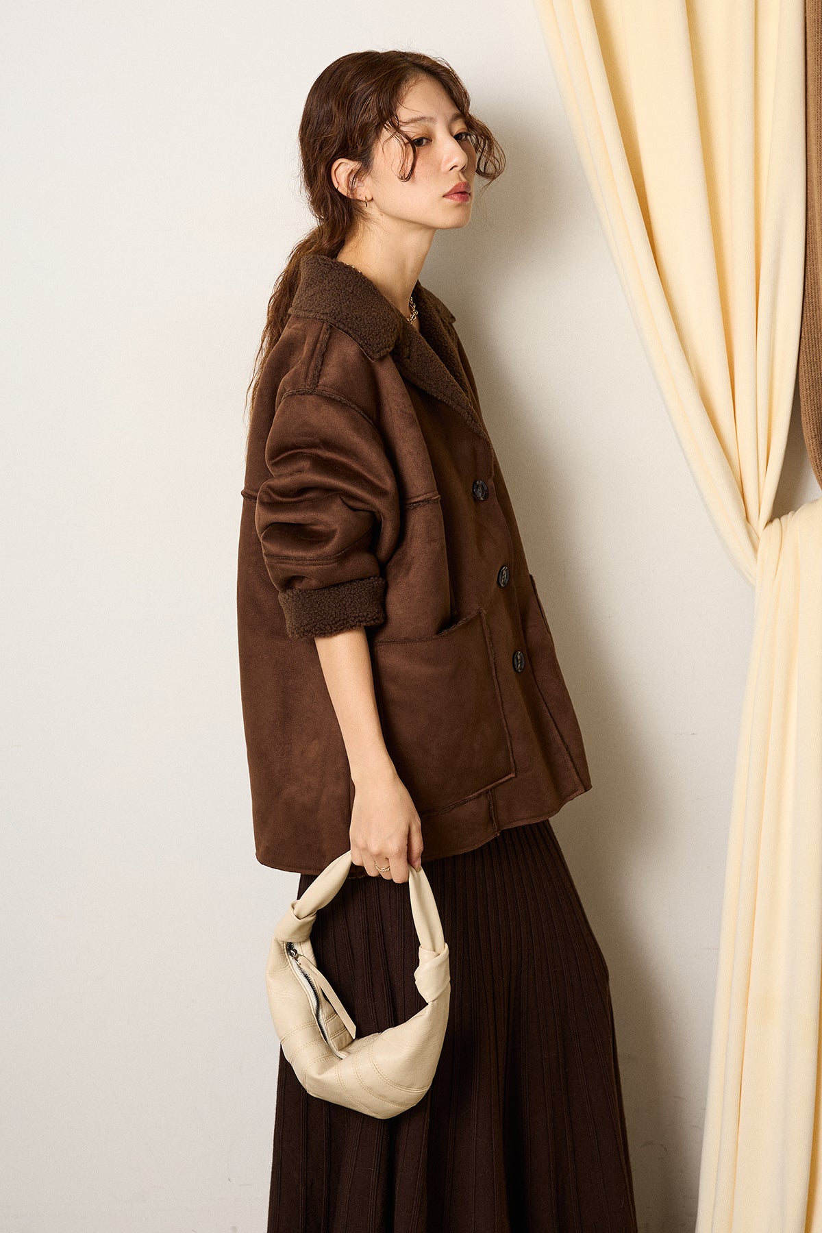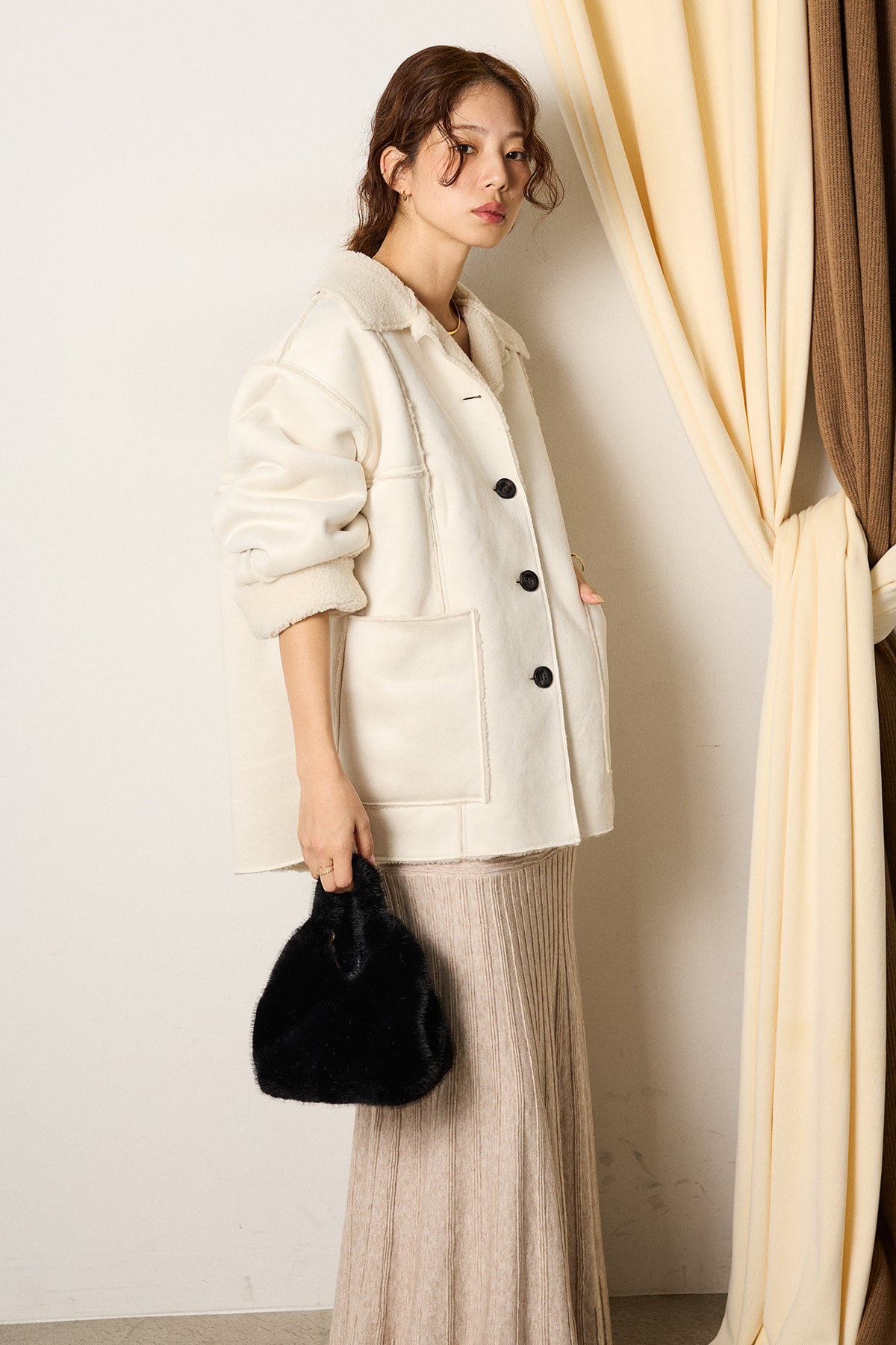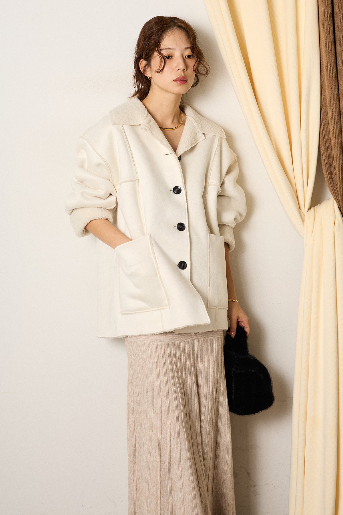 程よくボリュームのあるシルエットが魅力のエコムートンカバーオール。 滑らかなスエード調素材とふんわりとした裏ボアの組み合わせで、見た目にも暖かく季節感たっぷり。 ゆったりとした身幅で厚手のニットにも重ねやすく、デイリー使いに最適です。 大きめのポケットがアクセントになり、実用性とデザイン性を兼ね備えた一枚。