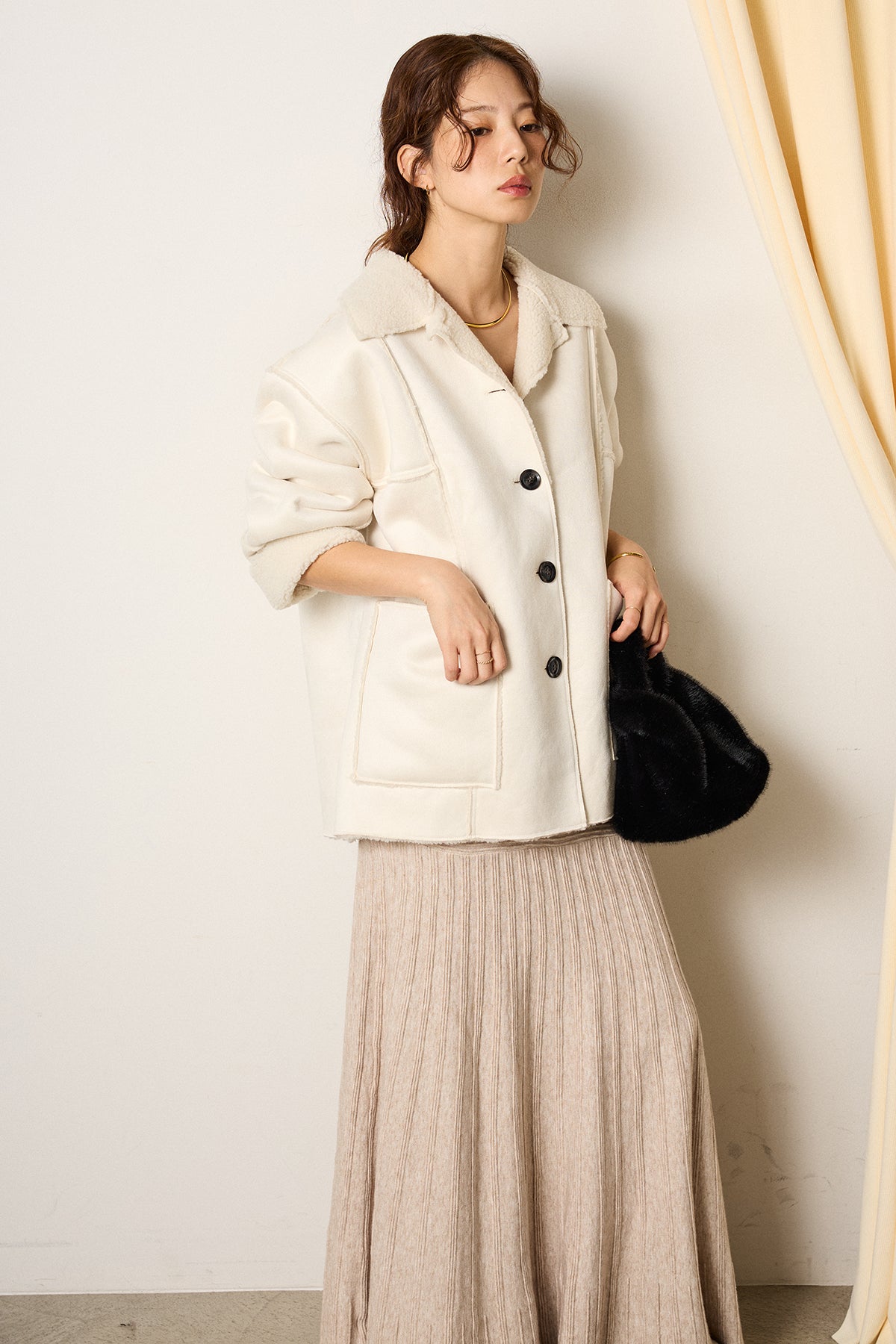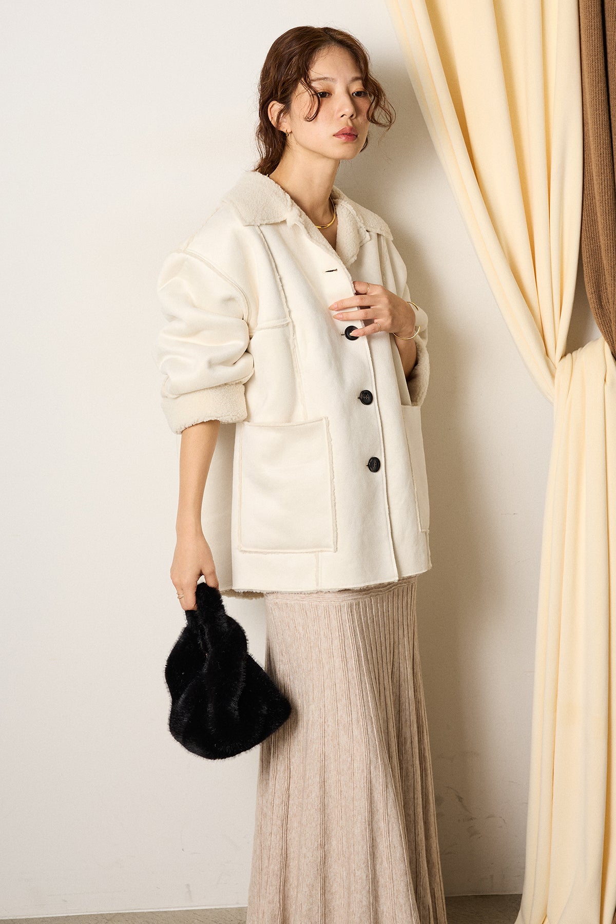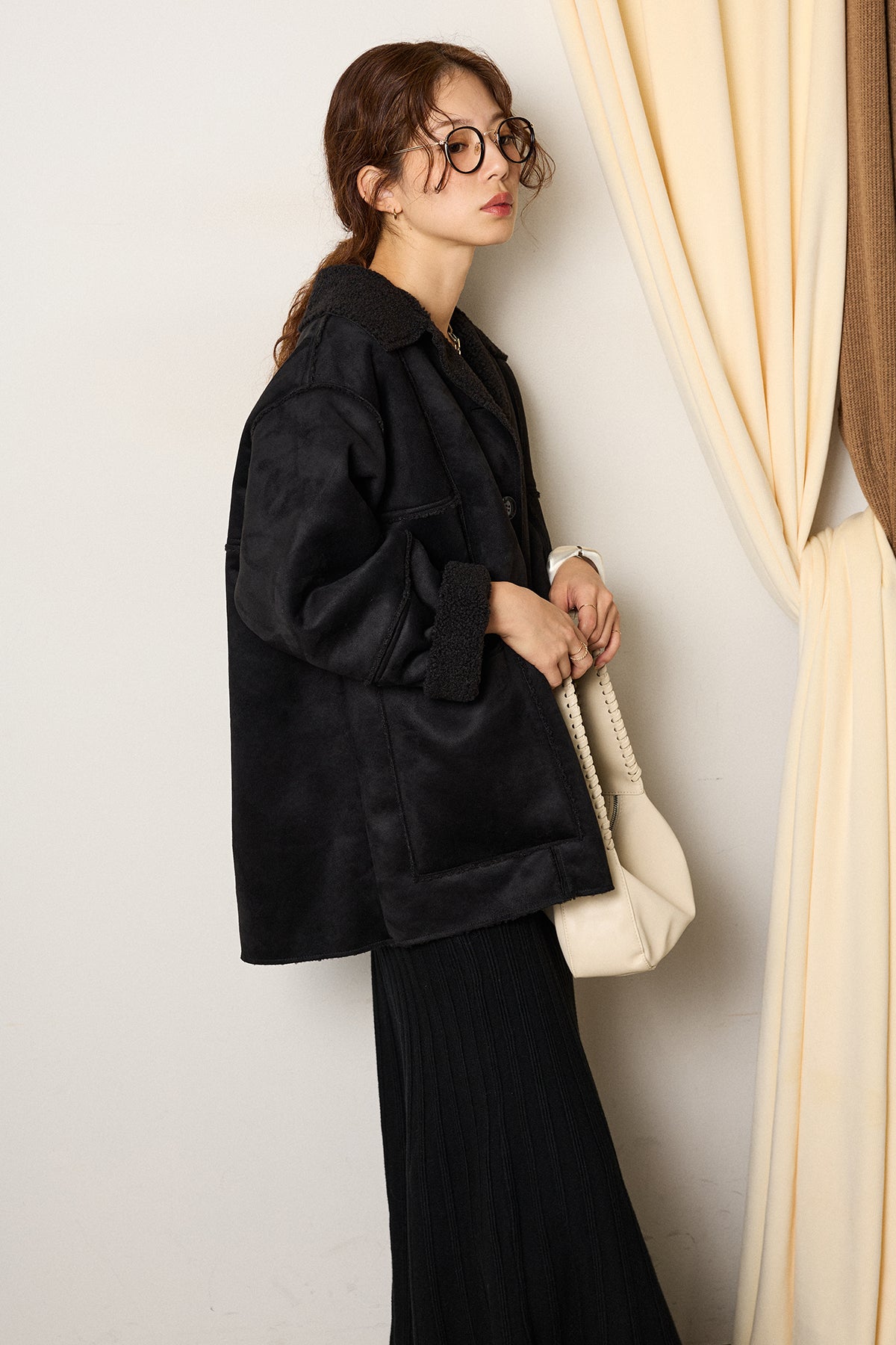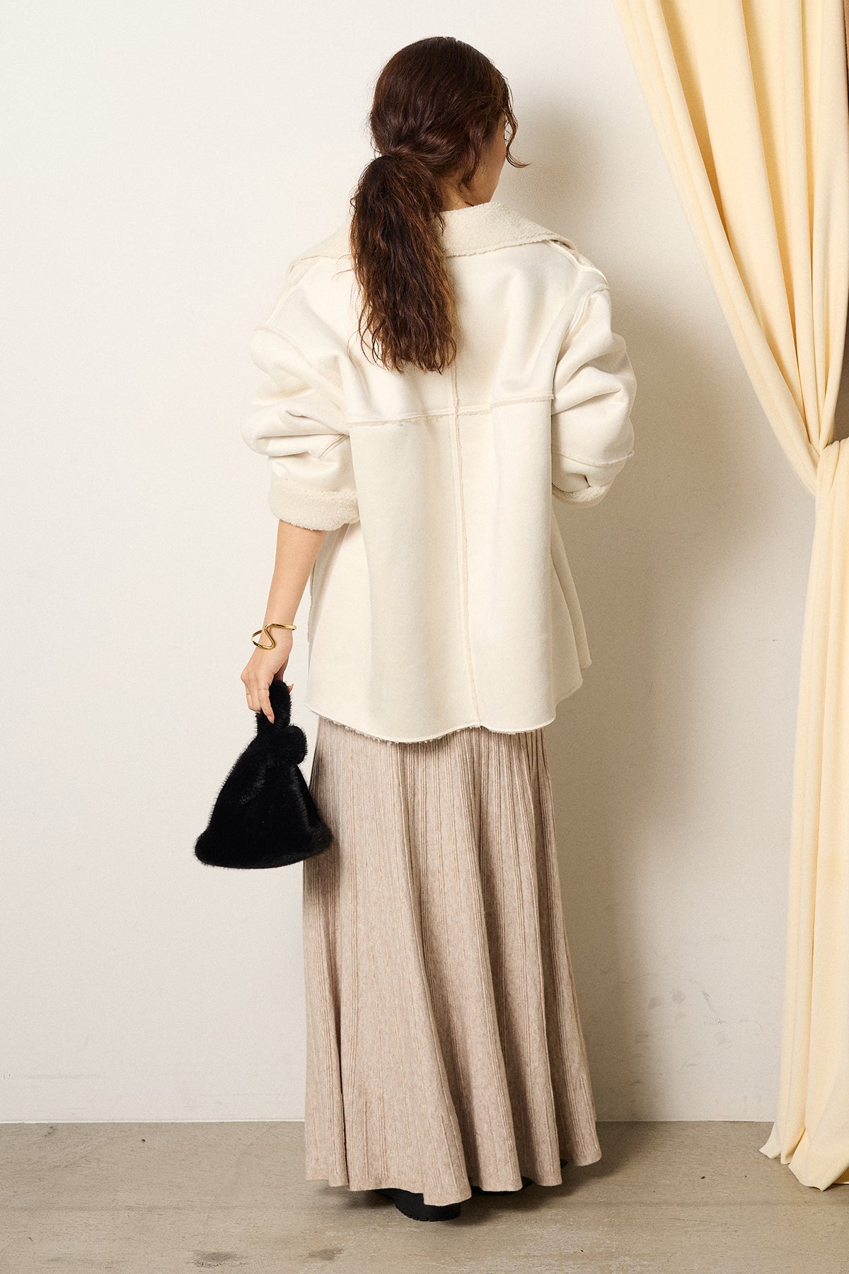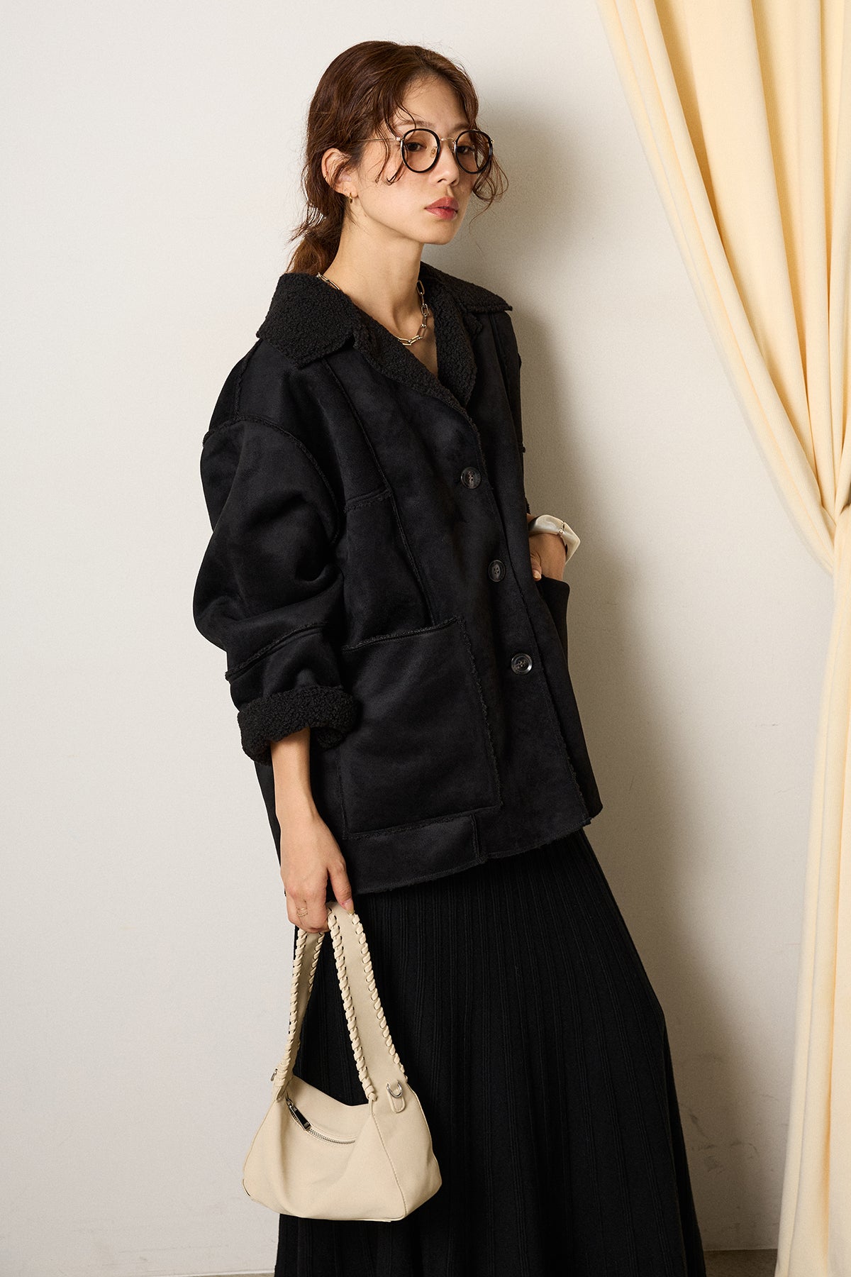 程よくボリュームのあるシルエットが魅力のエコムートンカバーオール。 滑らかなスエード調素材とふんわりとした裏ボアの組み合わせで、見た目にも暖かく季節感たっぷり。 ゆったりとした身幅で厚手のニットにも重ねやすく、デイリー使いに最適です。 大きめのポケットがアクセントになり、実用性とデザイン性を兼ね備えた一枚。