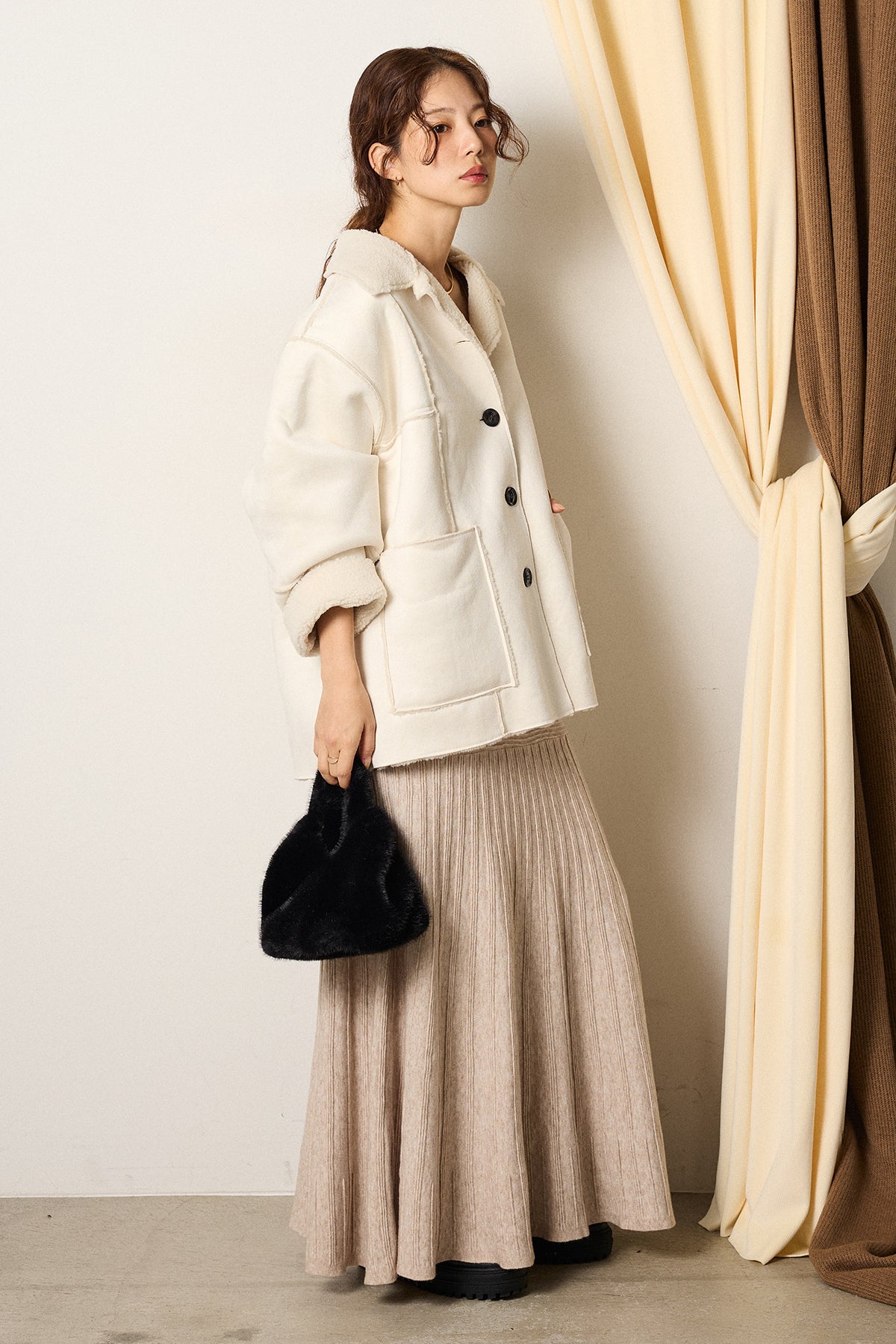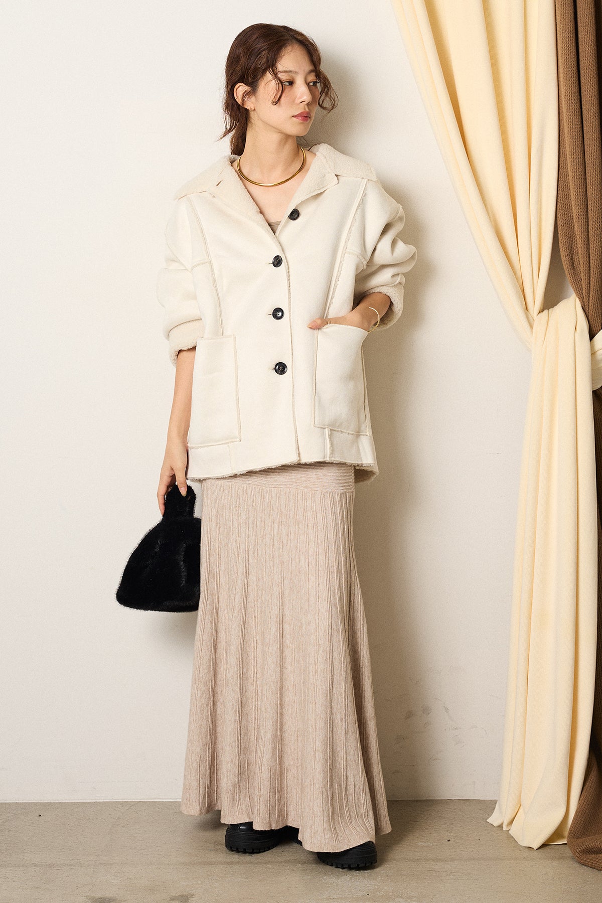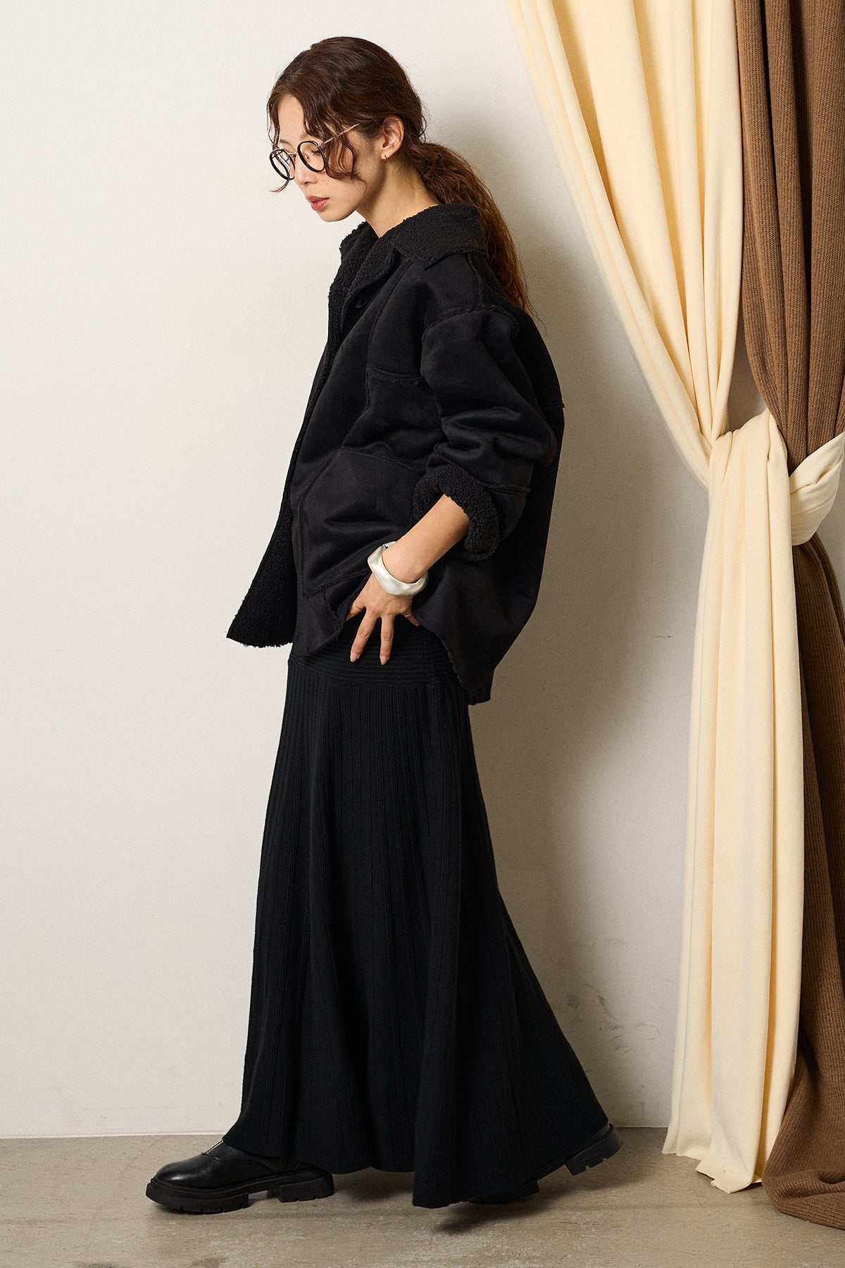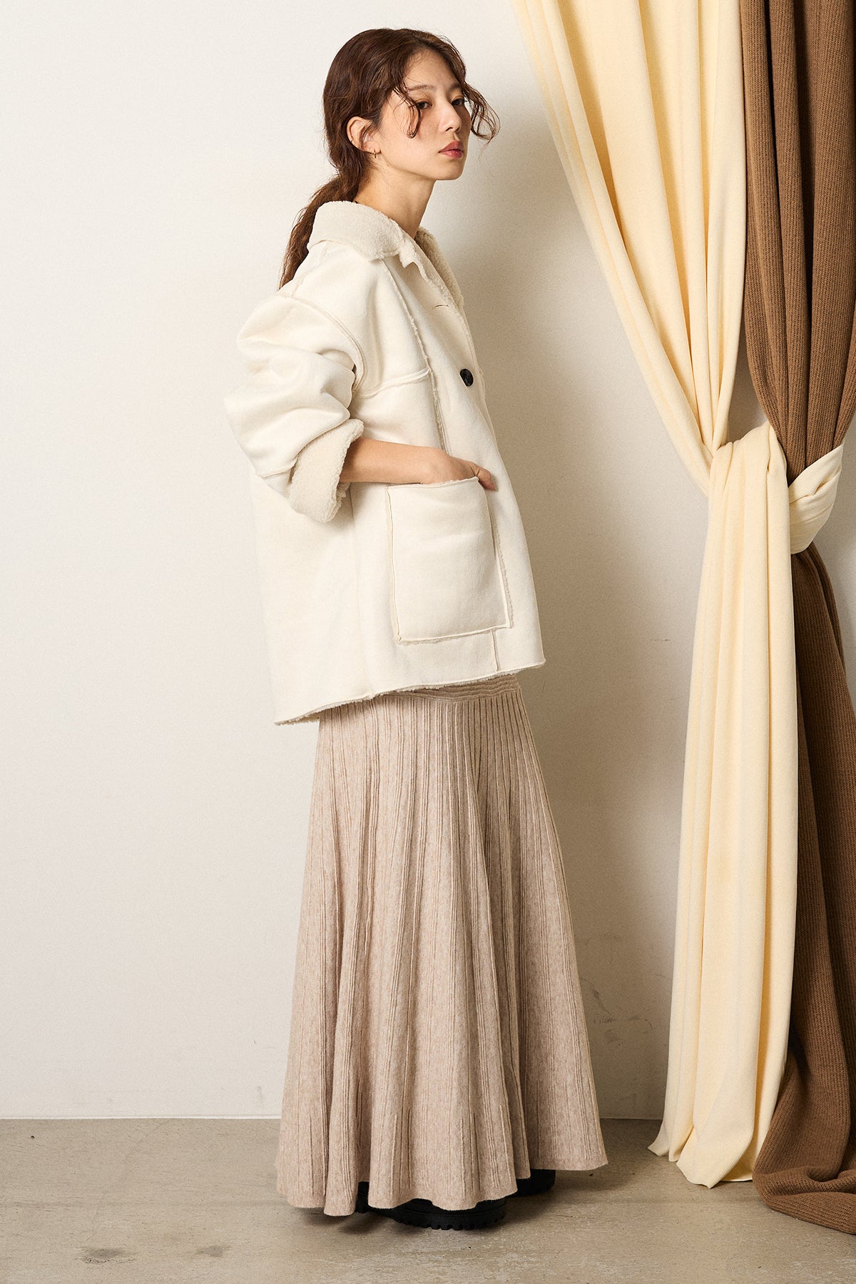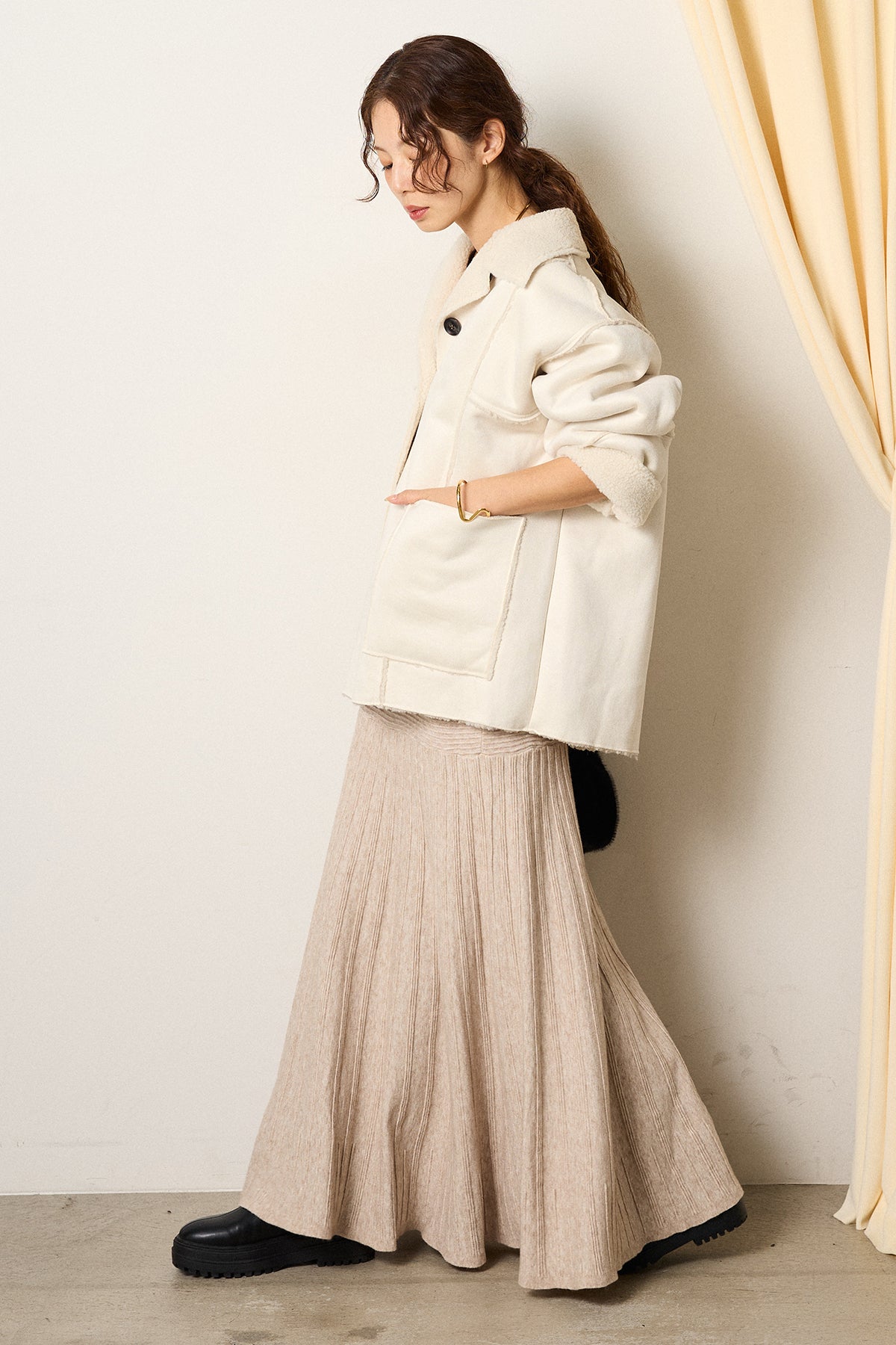 [SET]エコムートンカバーオール+編み地切り替えフレアニットスカート(2set)
