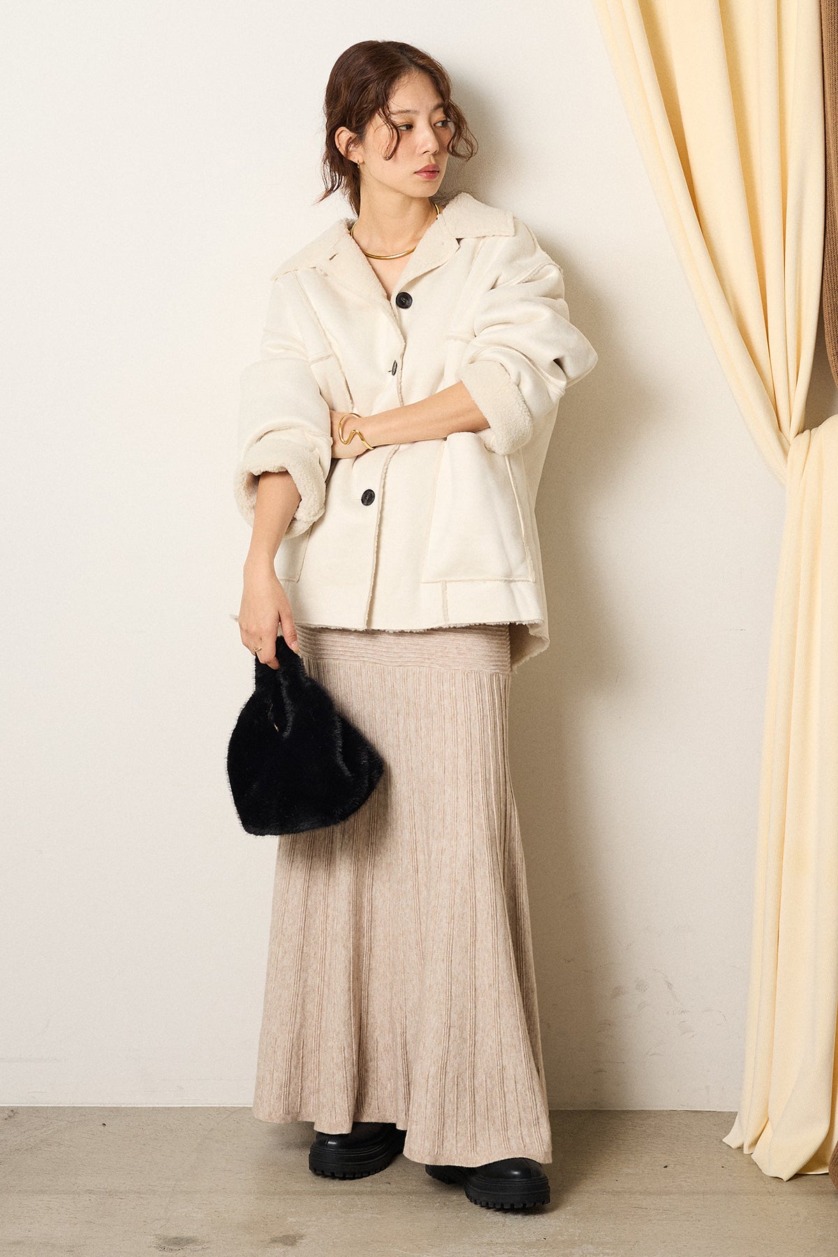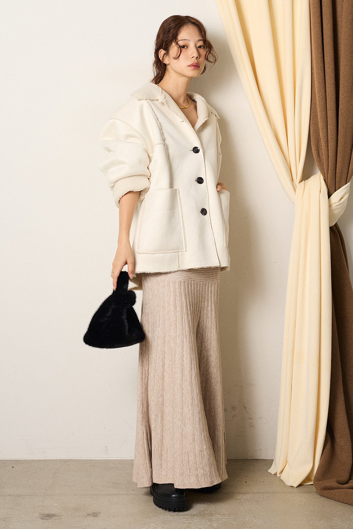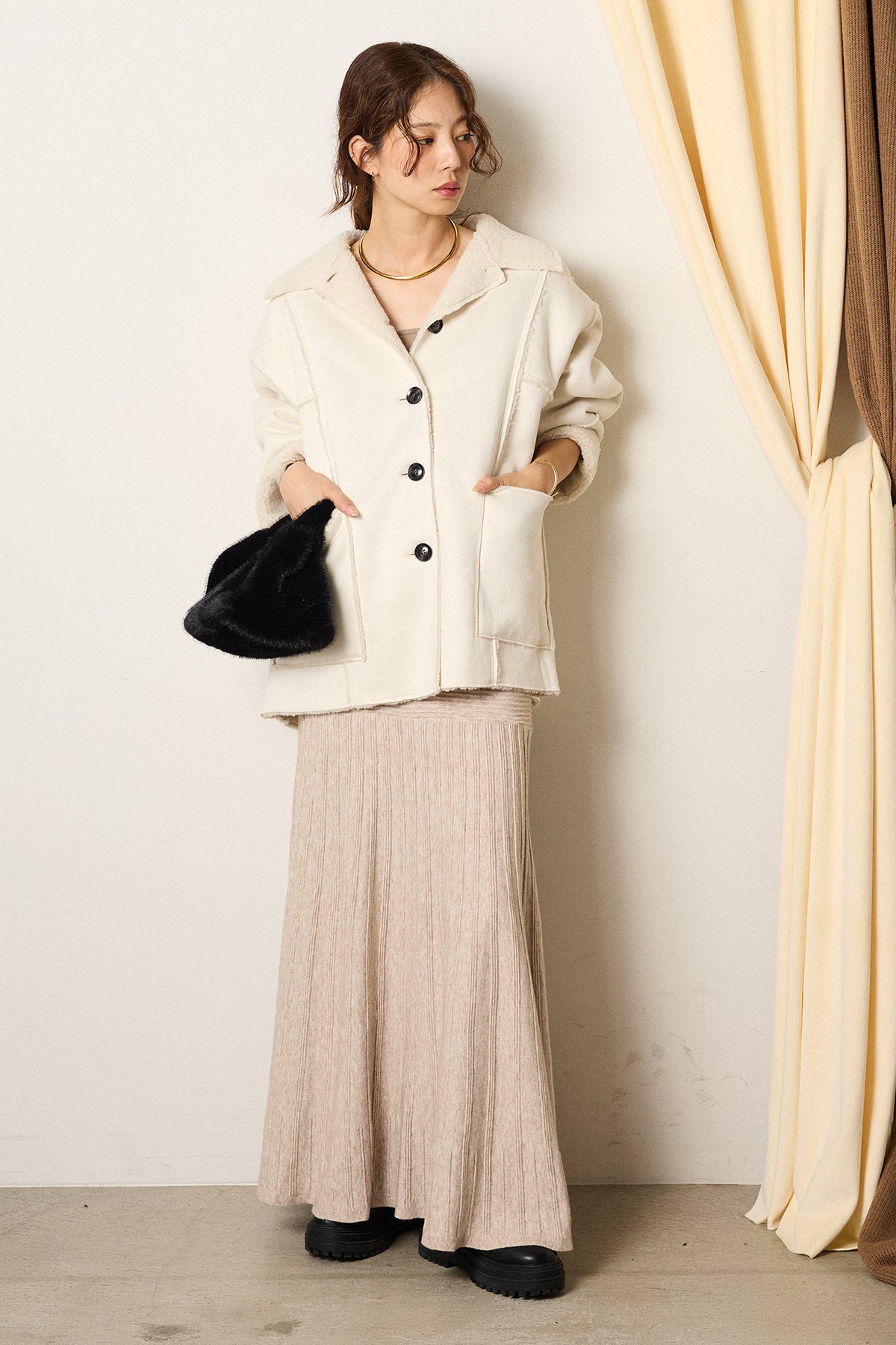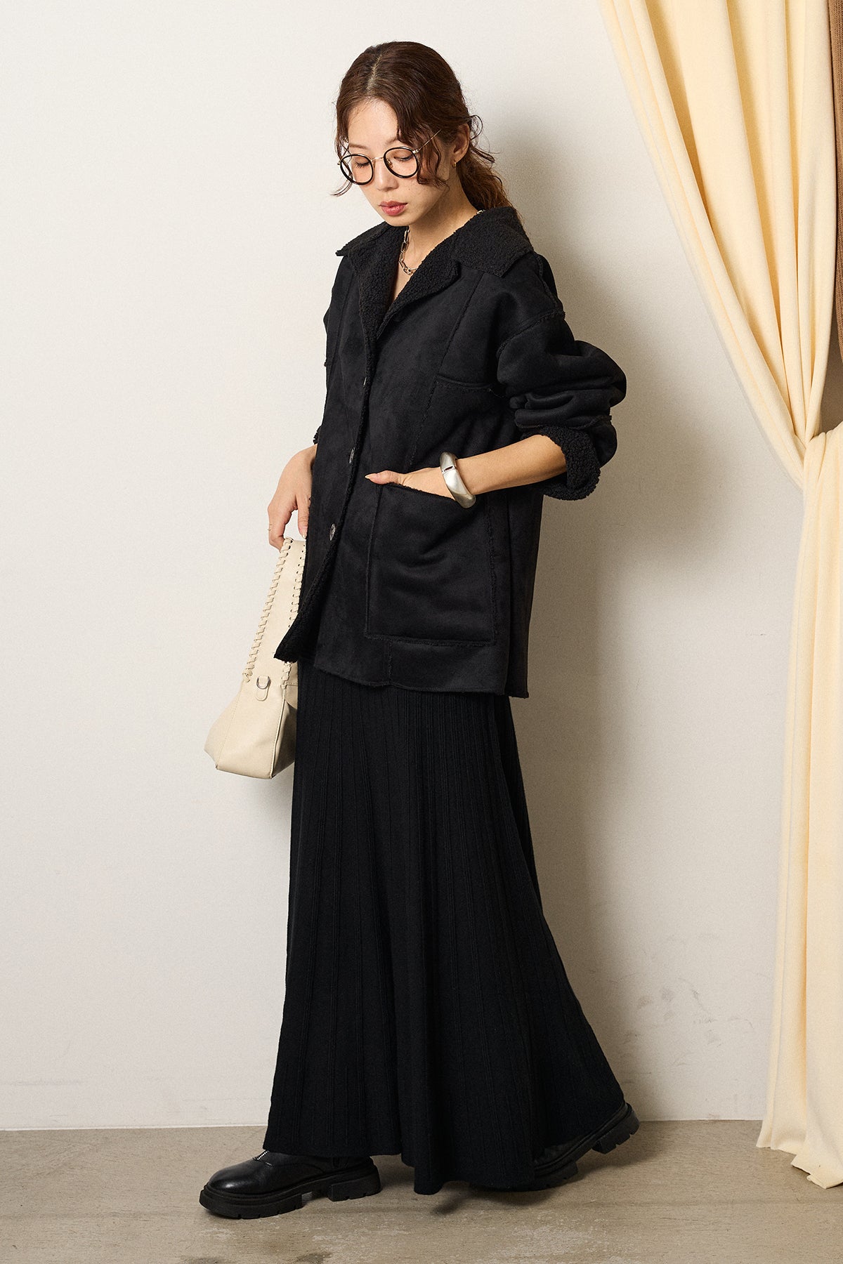 [SET]エコムートンカバーオール+編み地切り替えフレアニットスカート(2set)