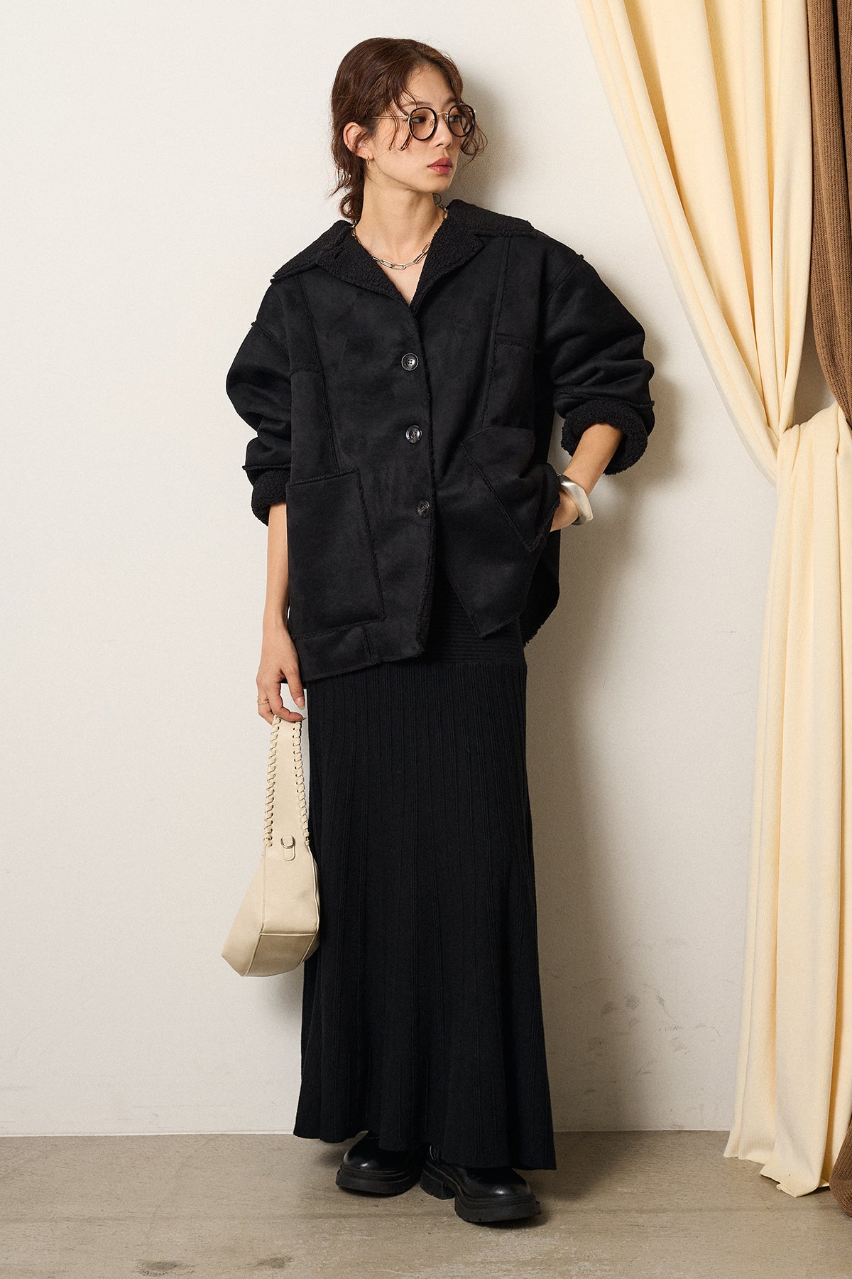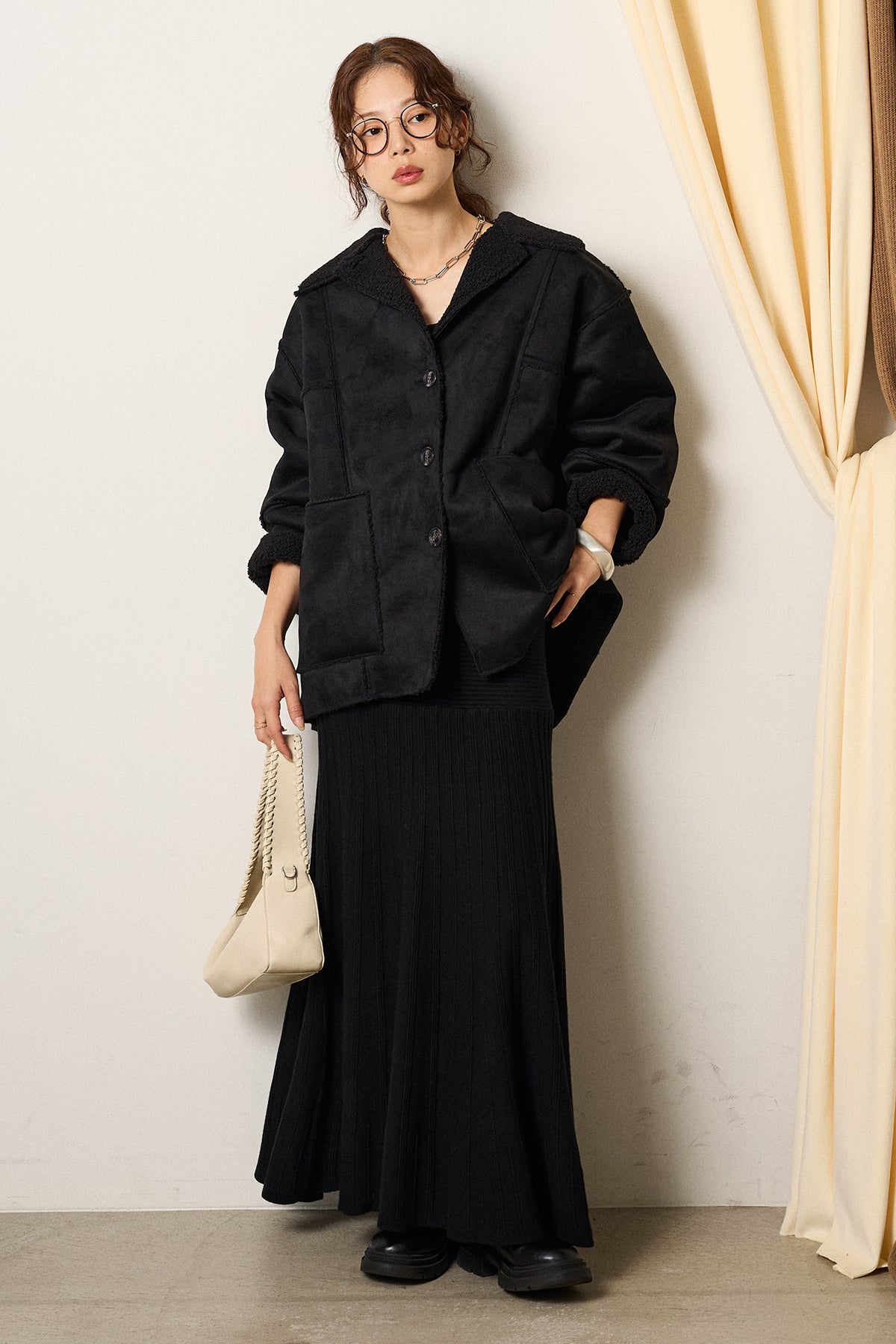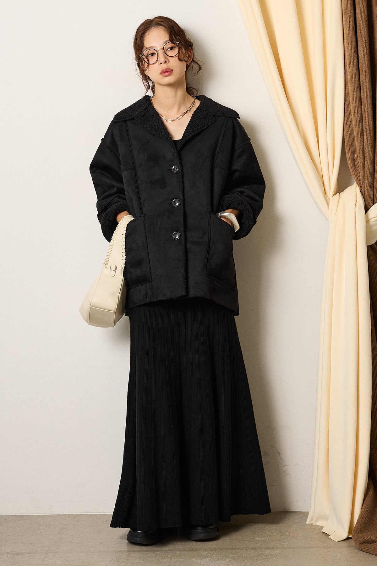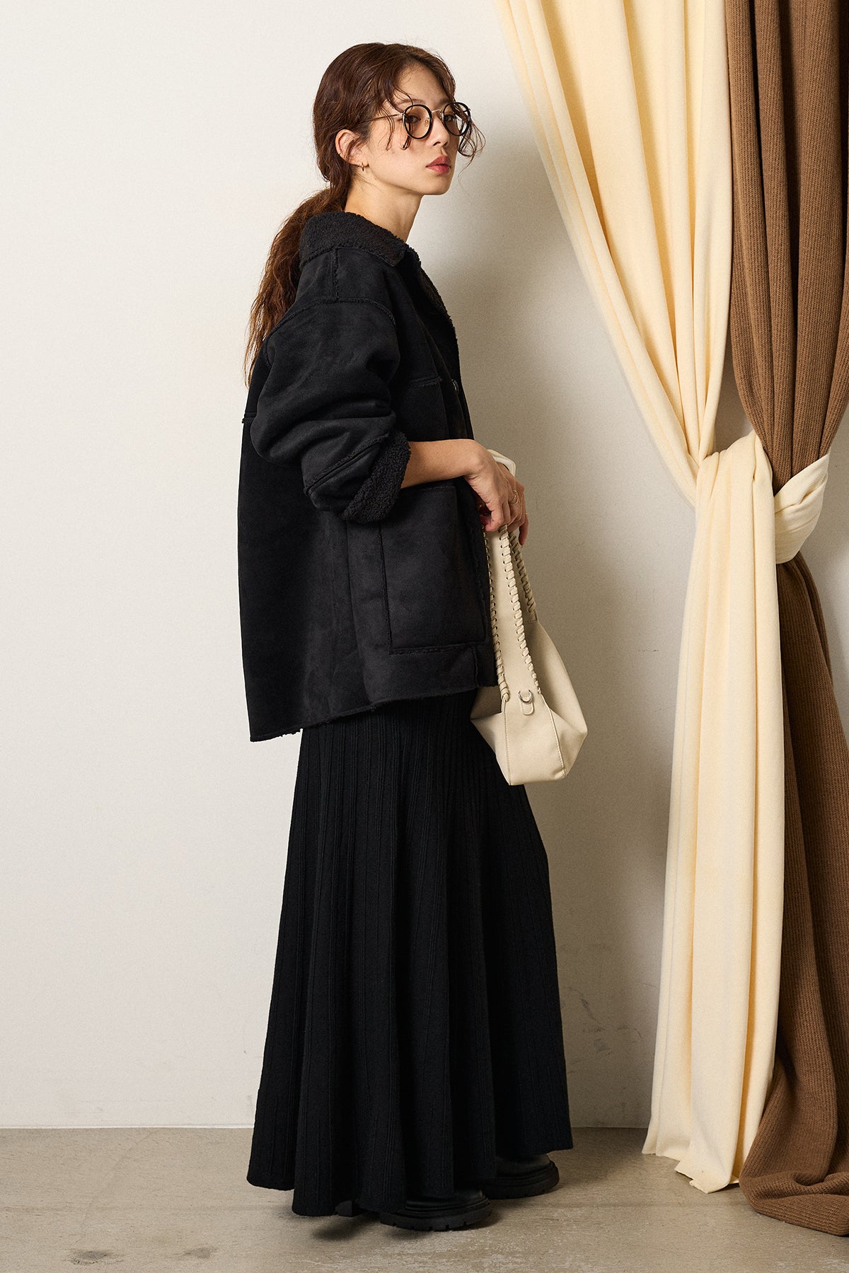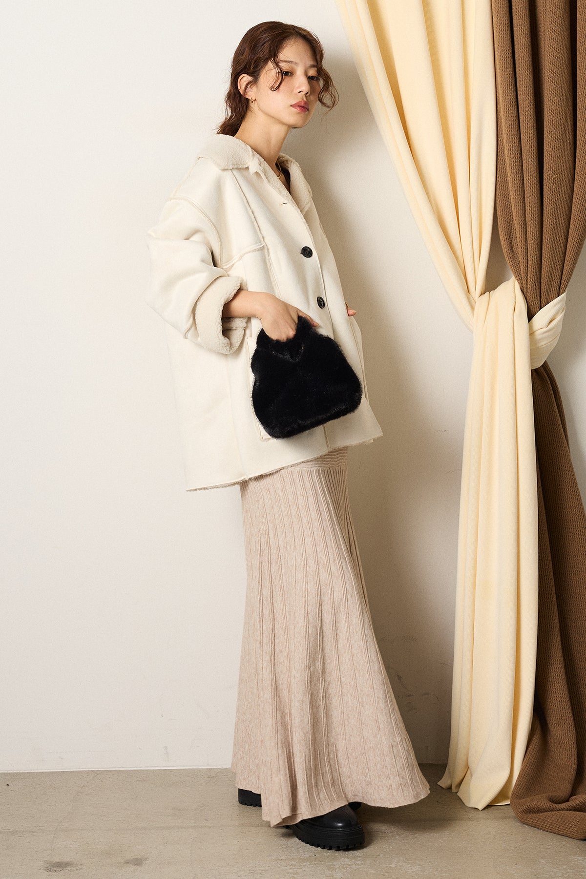 [SET]エコムートンカバーオール+編み地切り替えフレアニットスカート(2set)