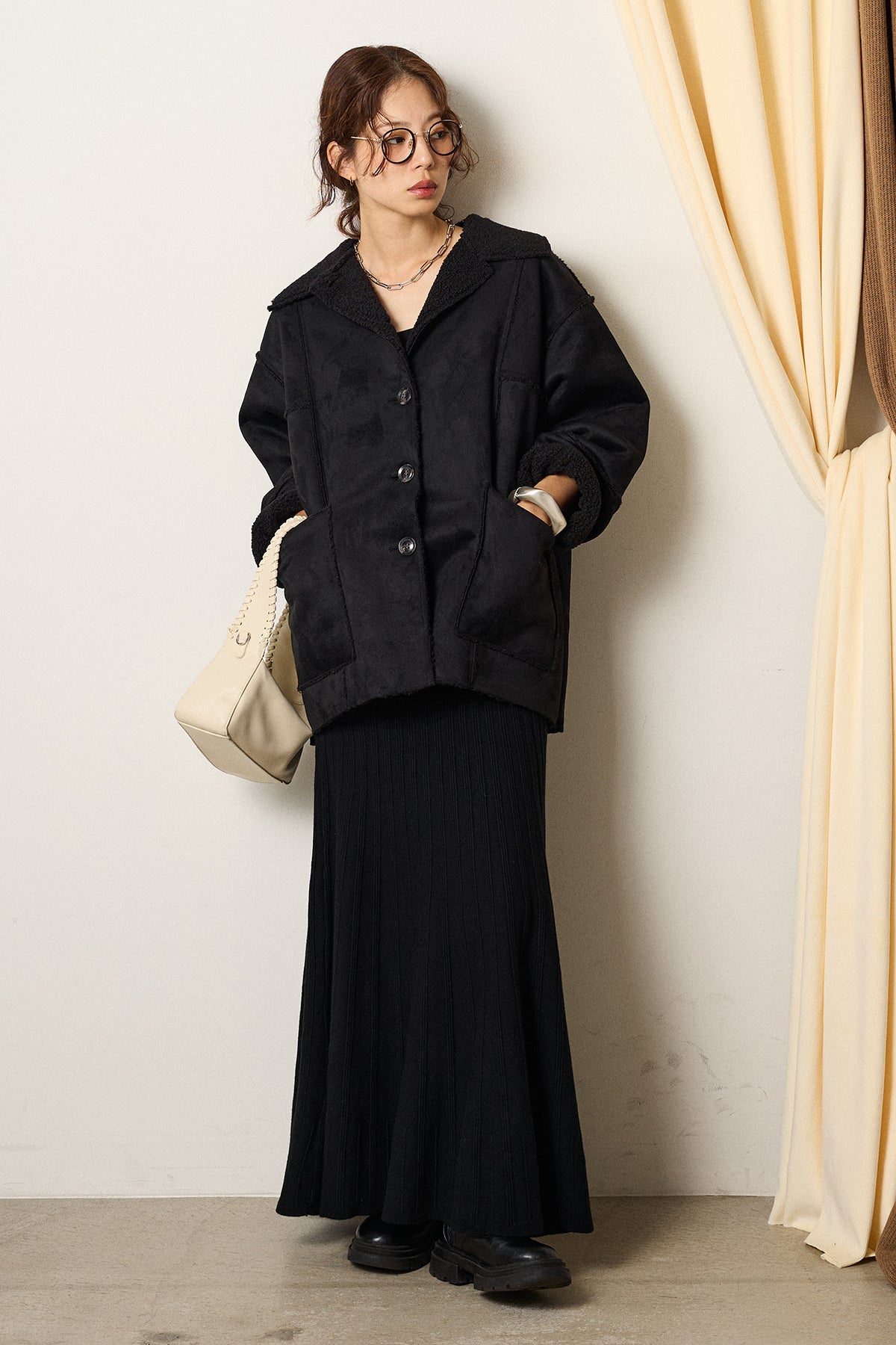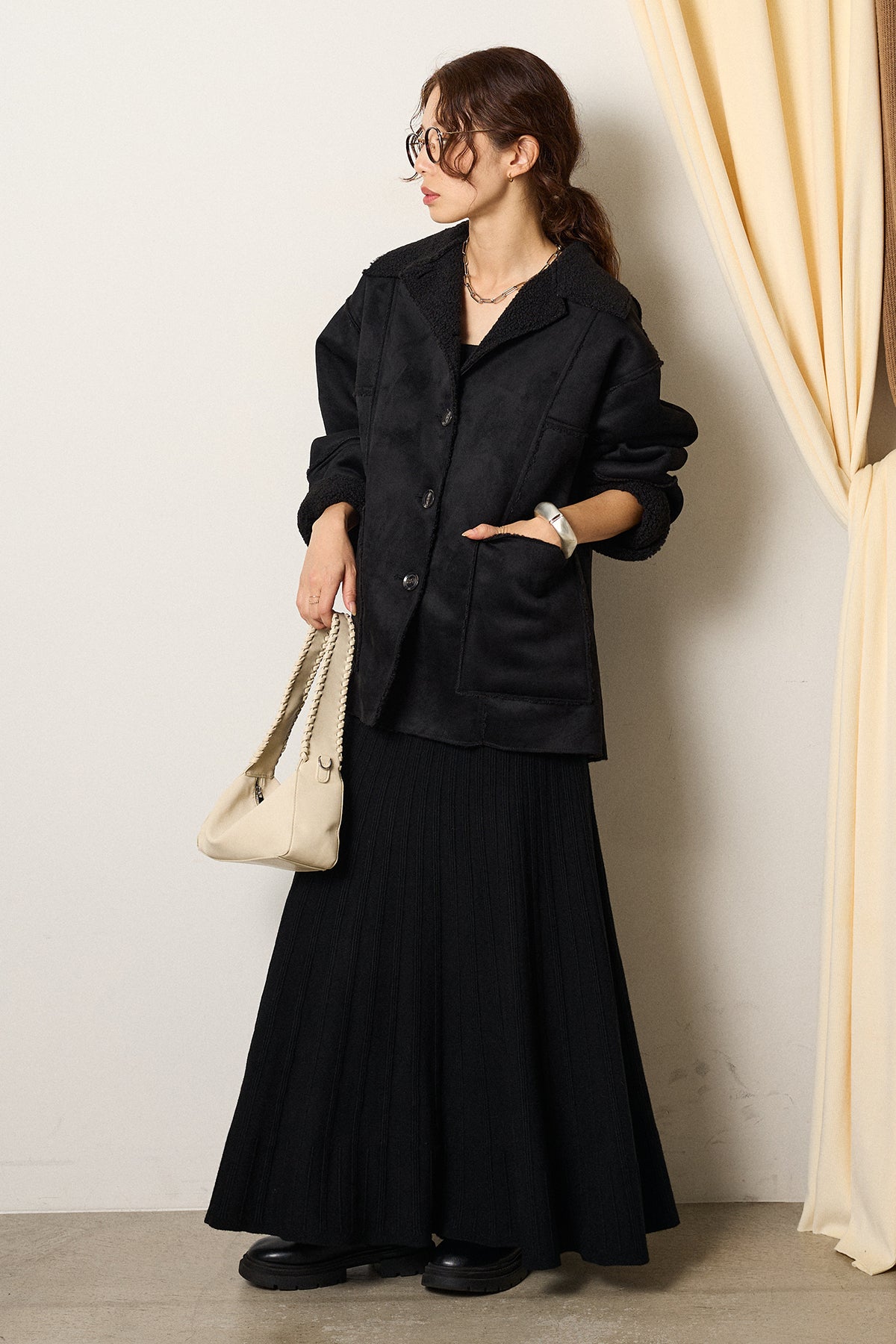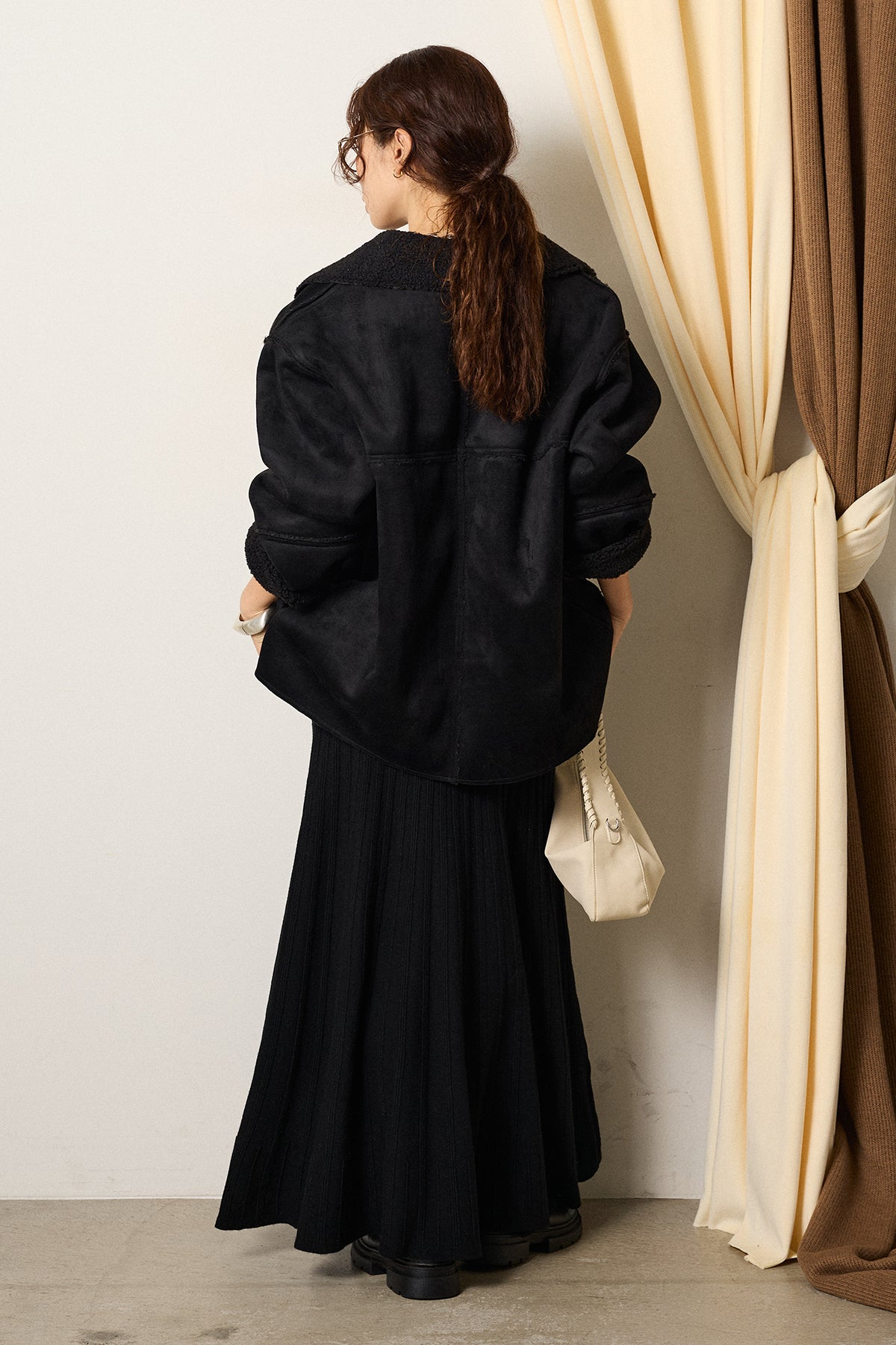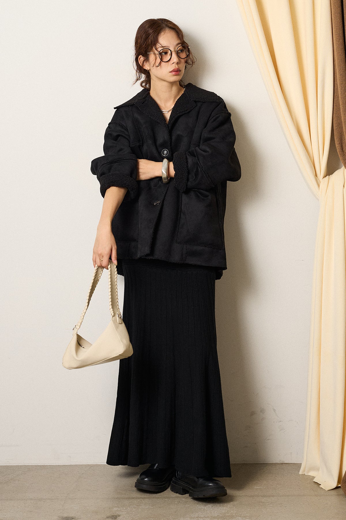 [SET]エコムートンカバーオール+編み地切り替えフレアニットスカート(2set)