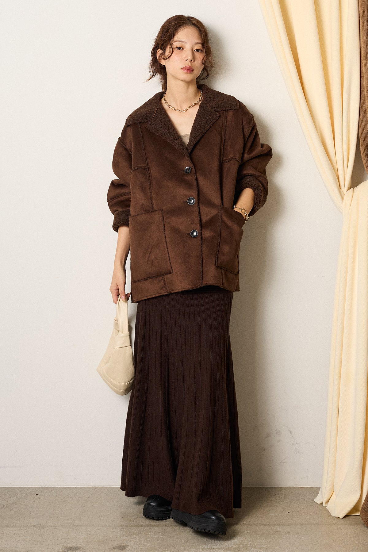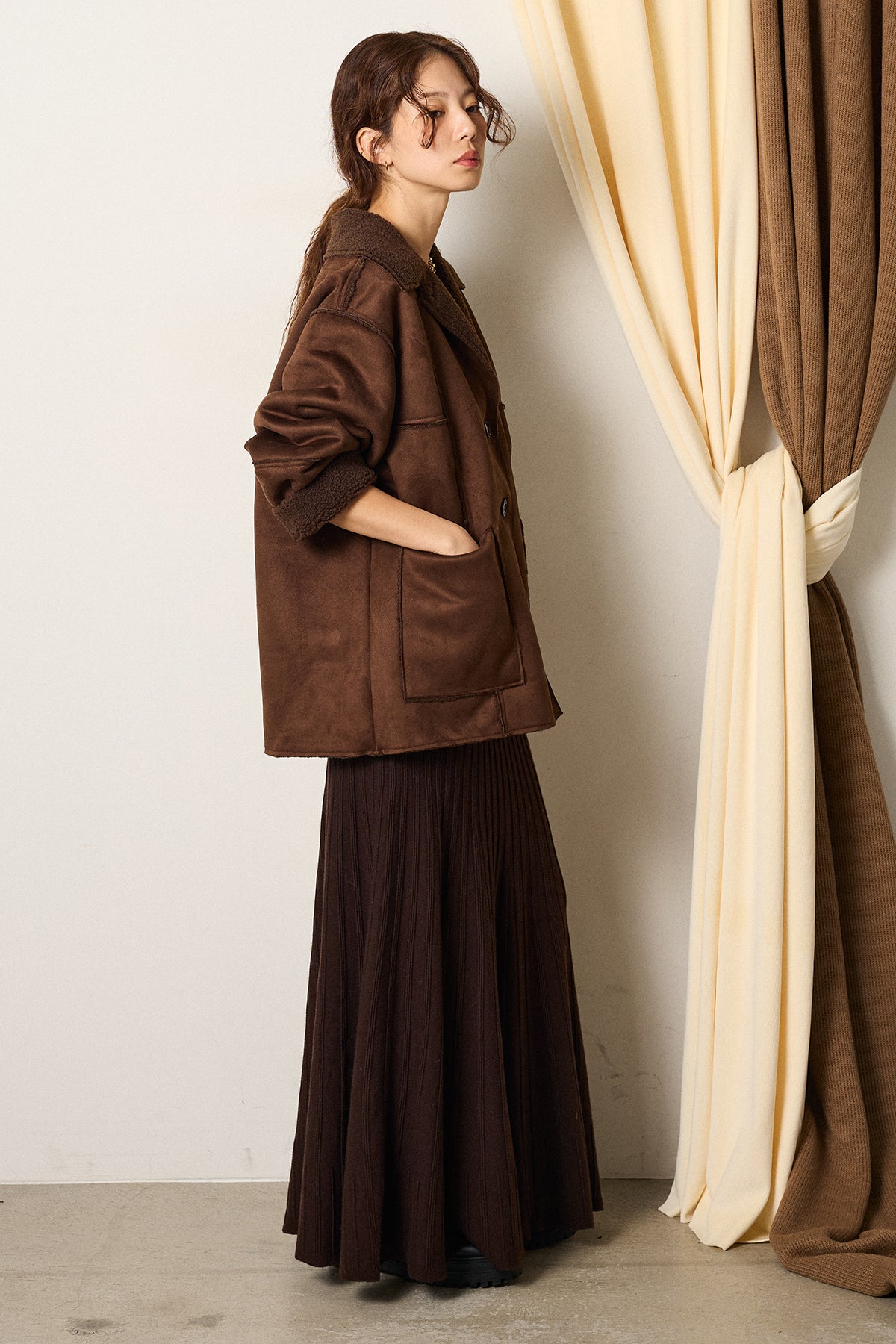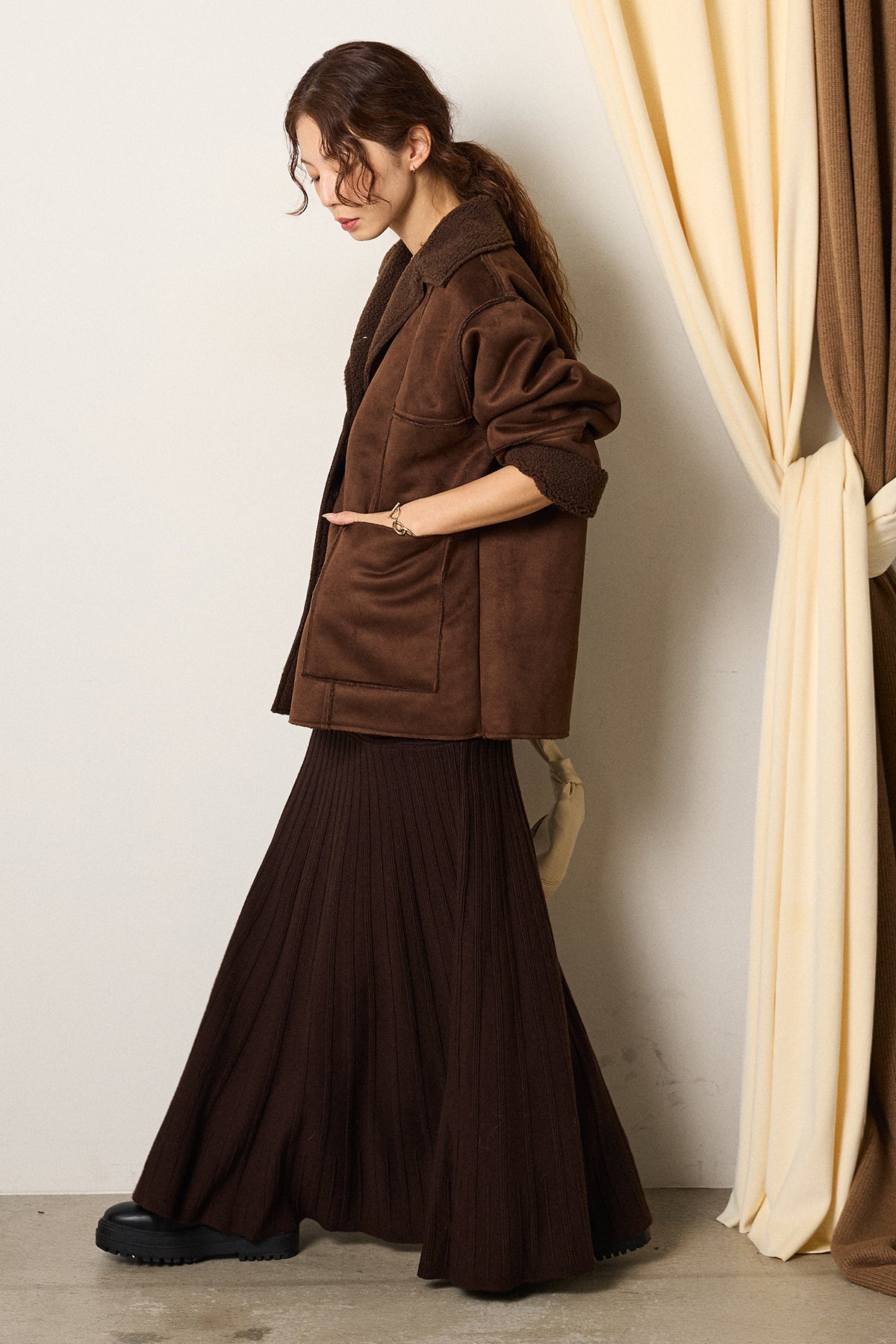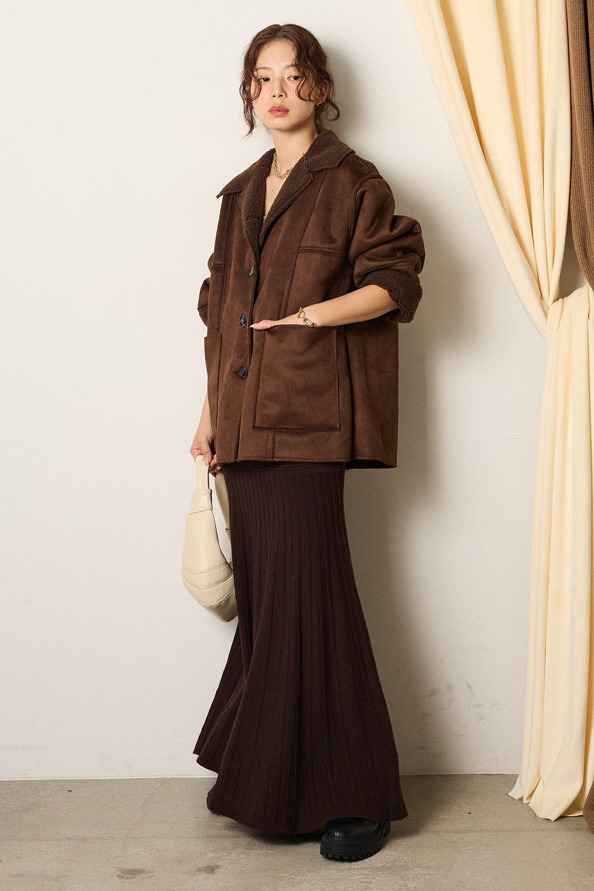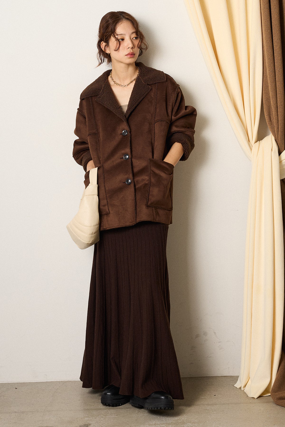 [SET]エコムートンカバーオール+編み地切り替えフレアニットスカート(2set)