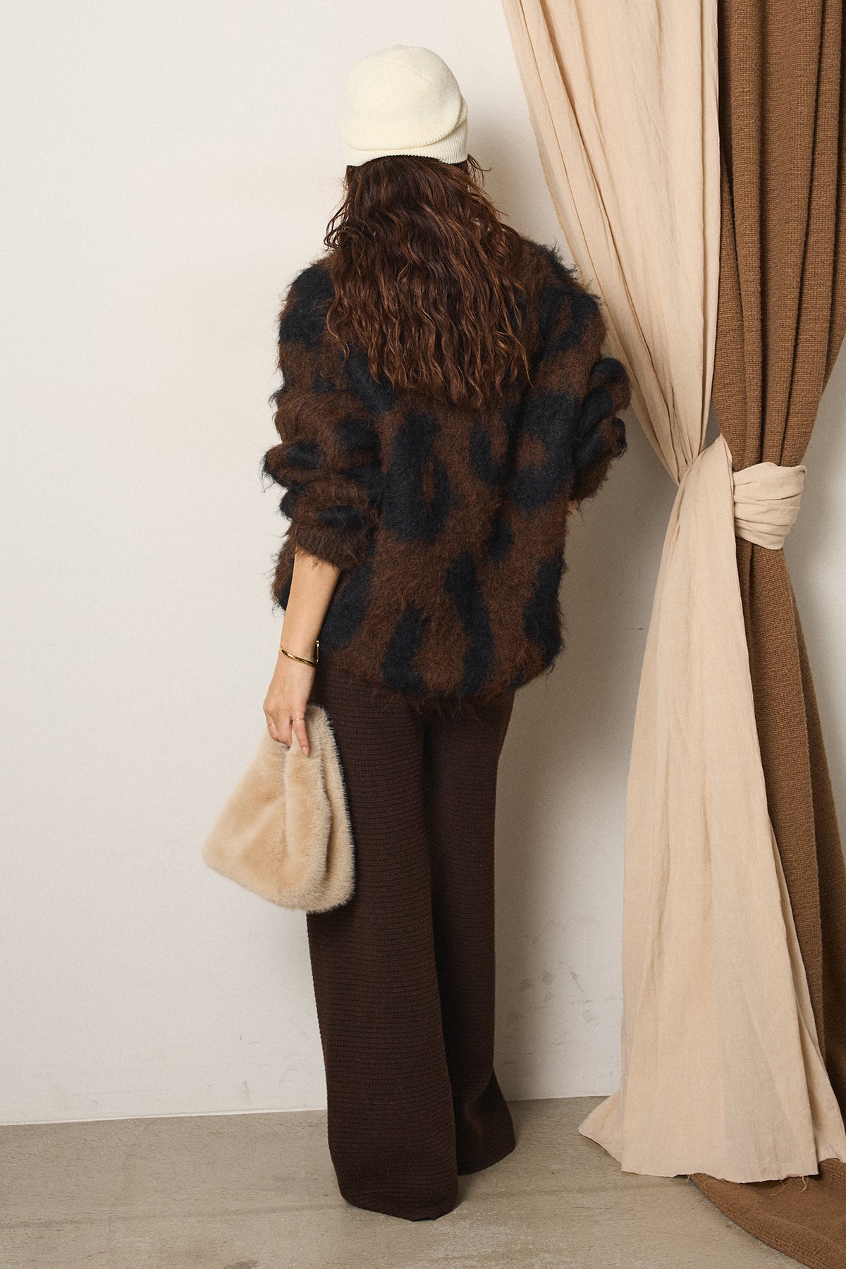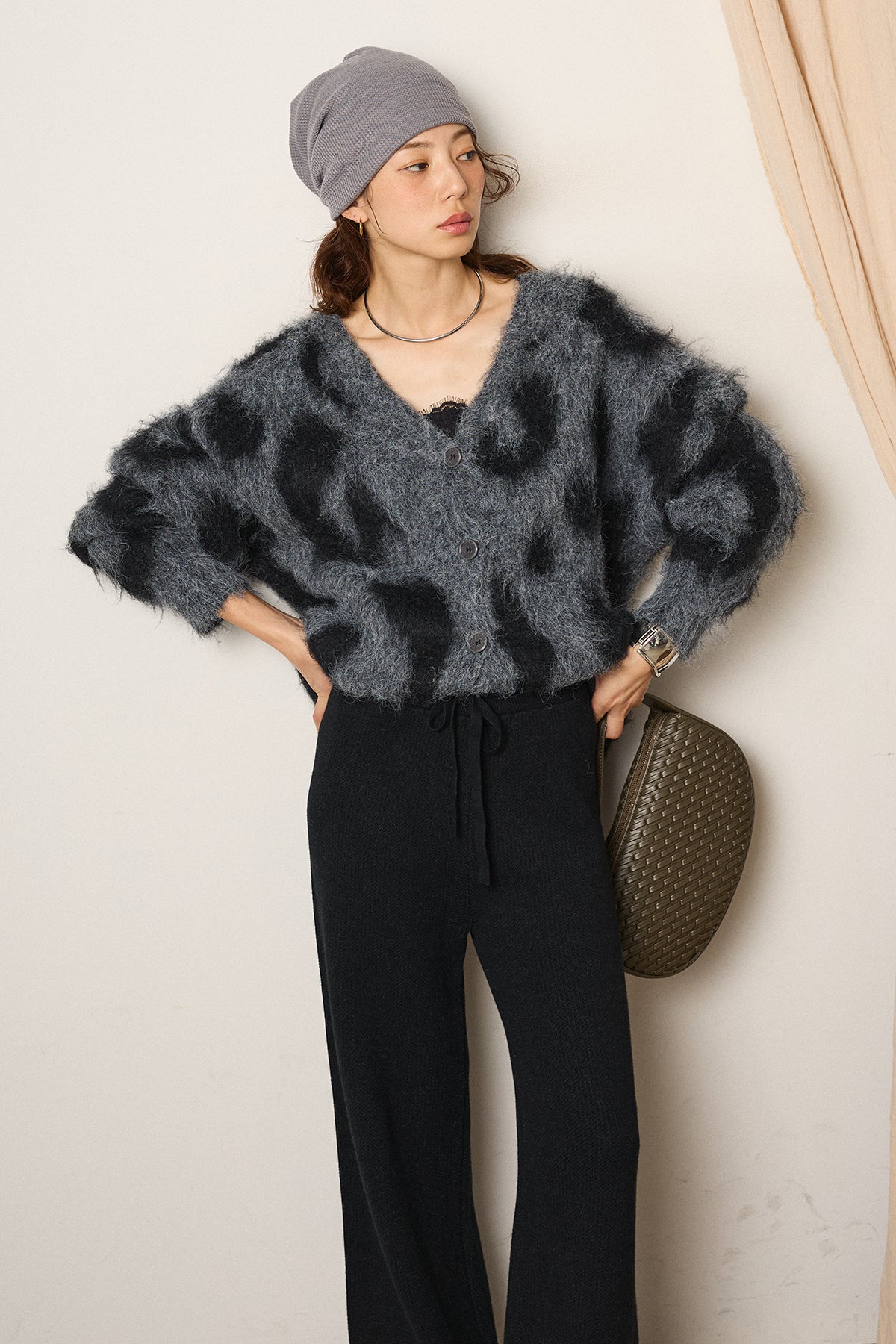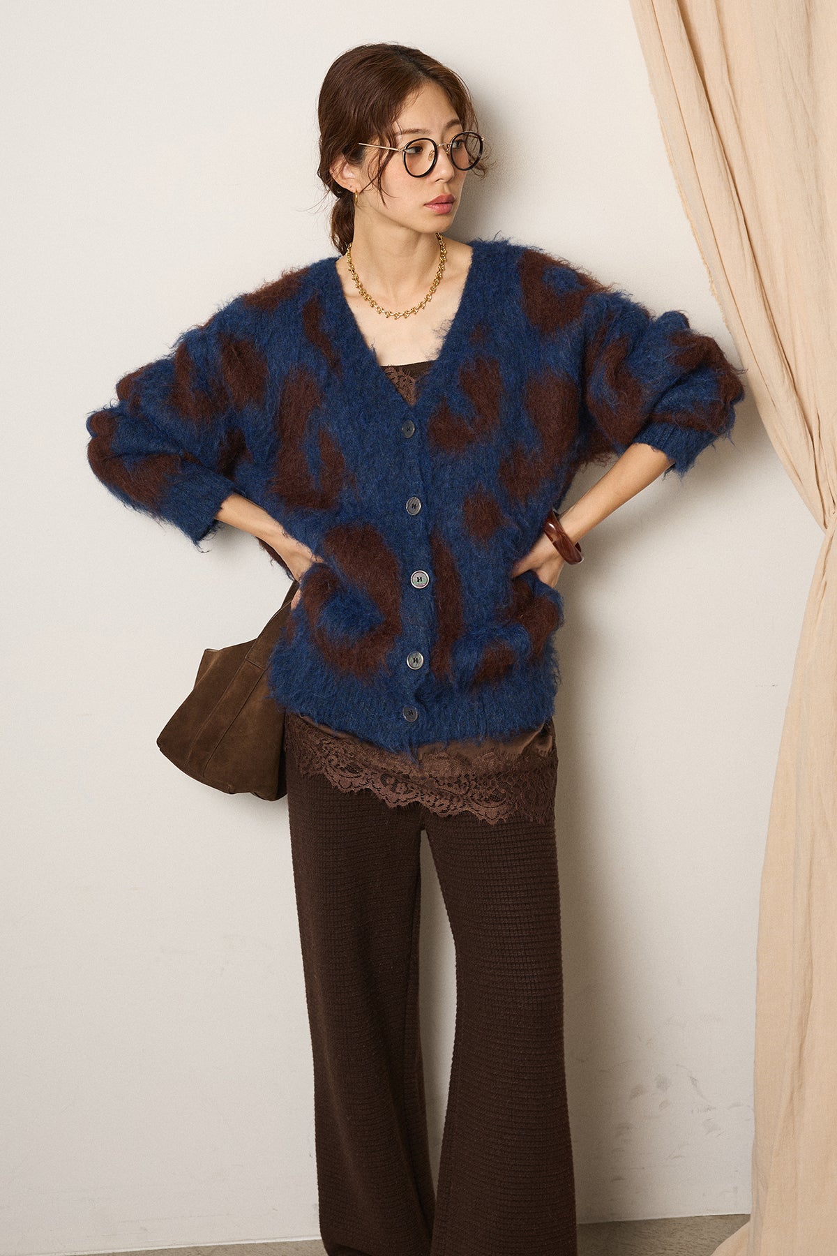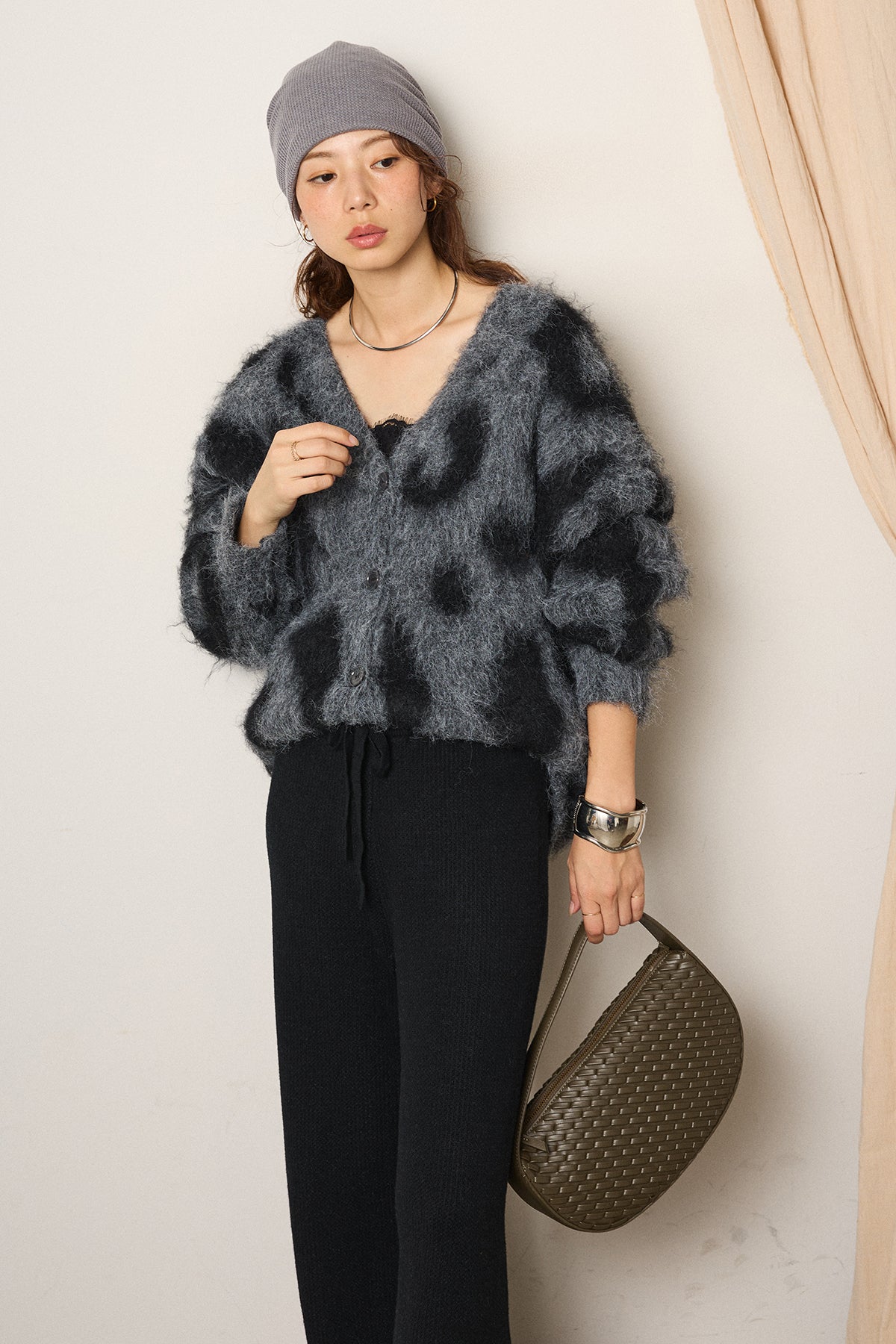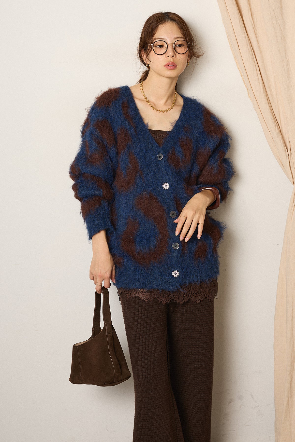 ふんわりとした毛足が印象的なレオパードシャギータッチカーディガン。