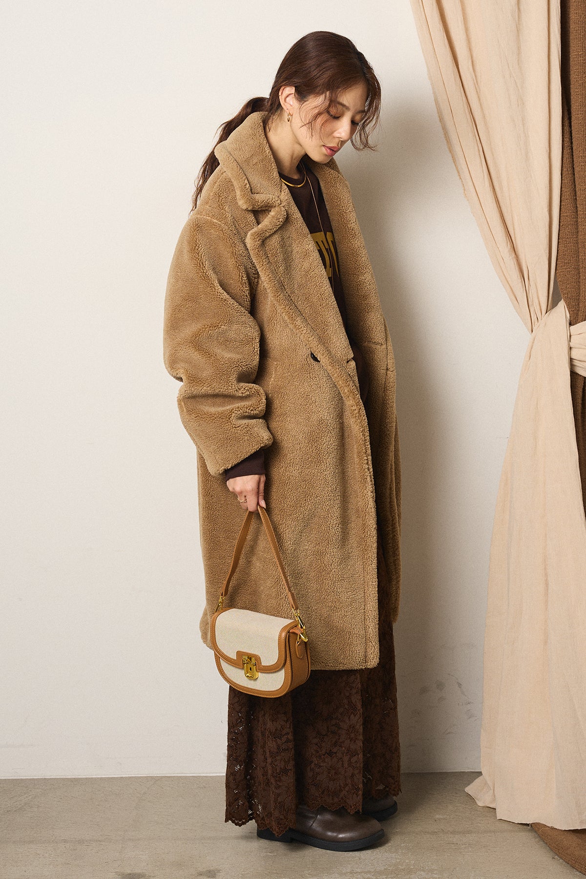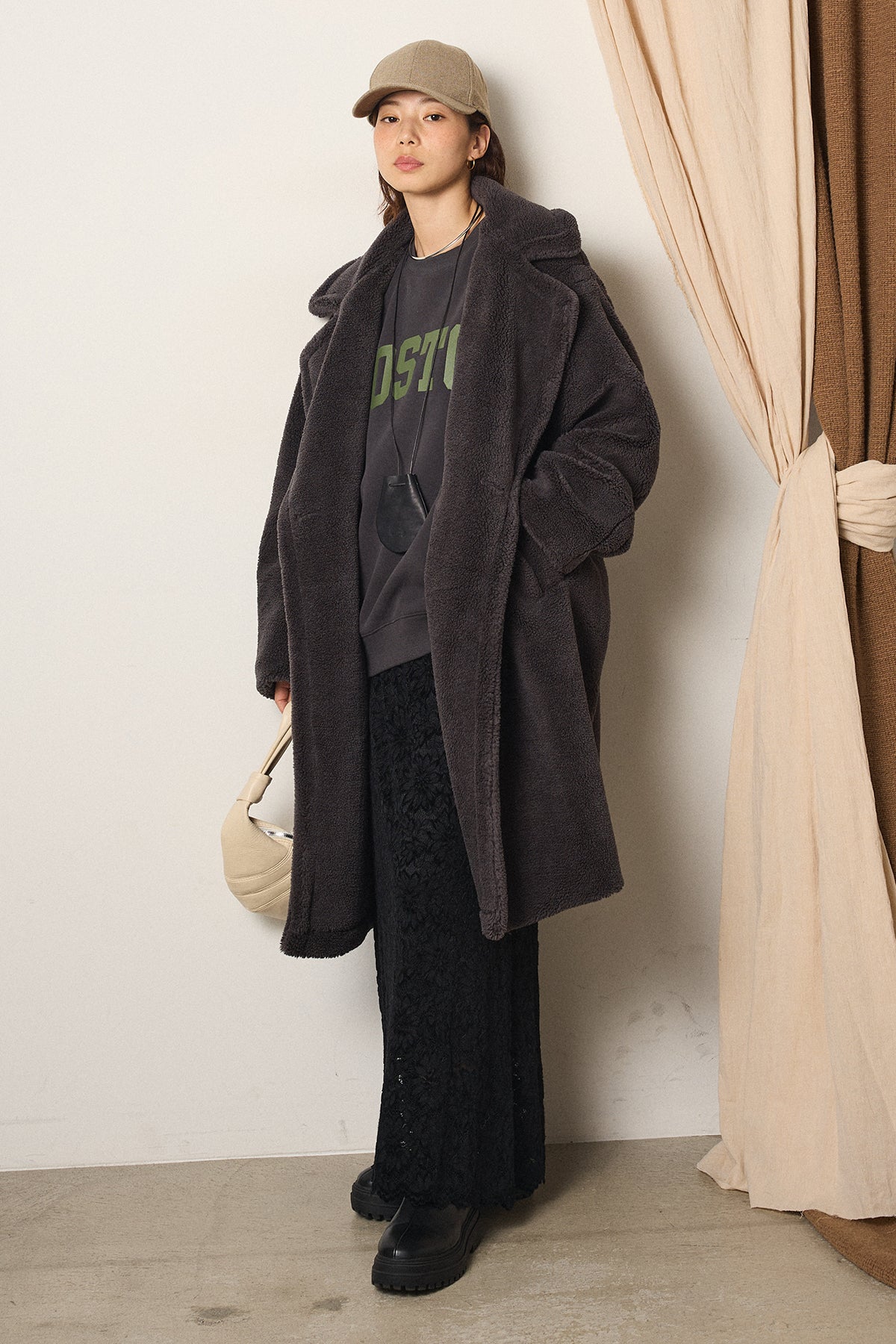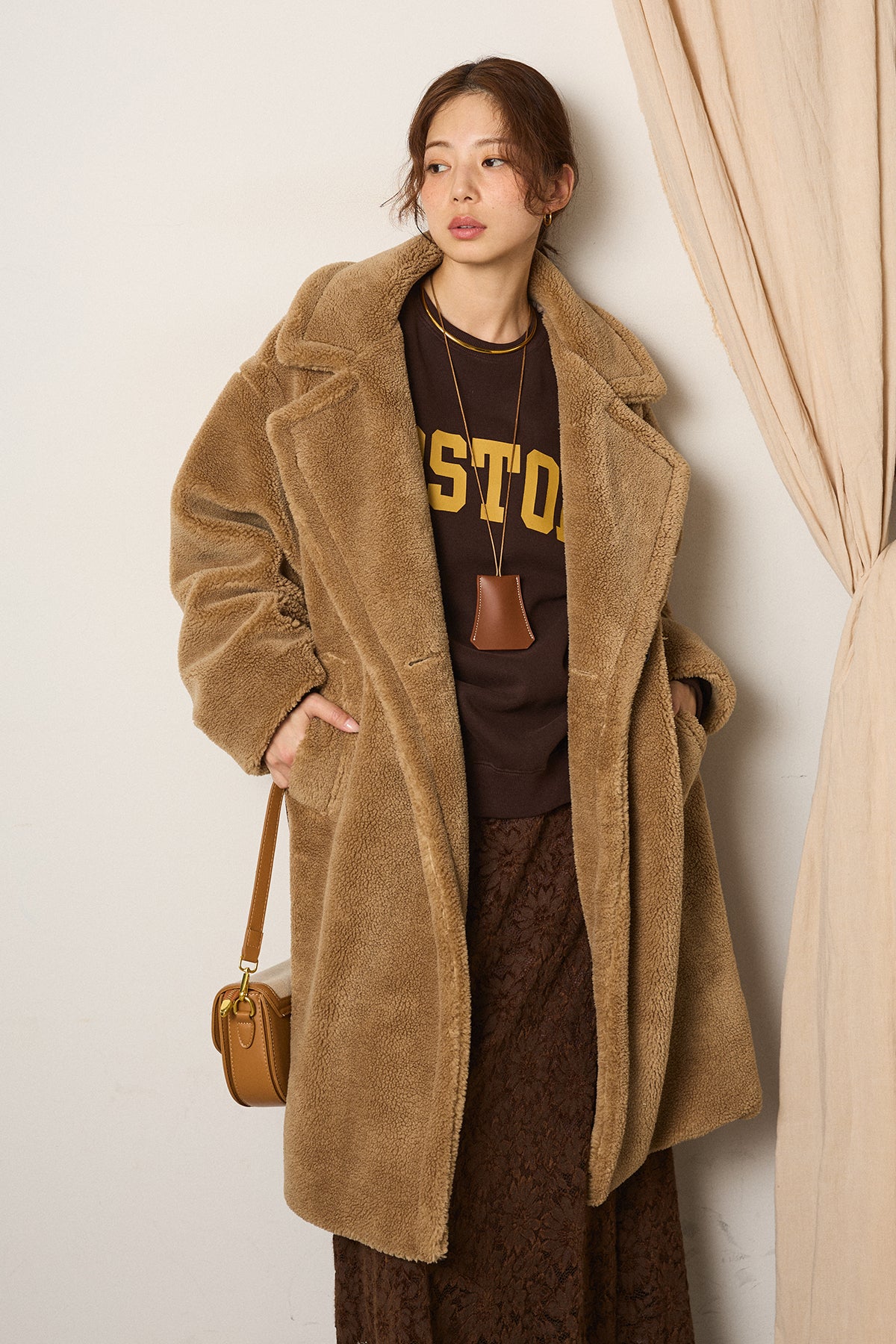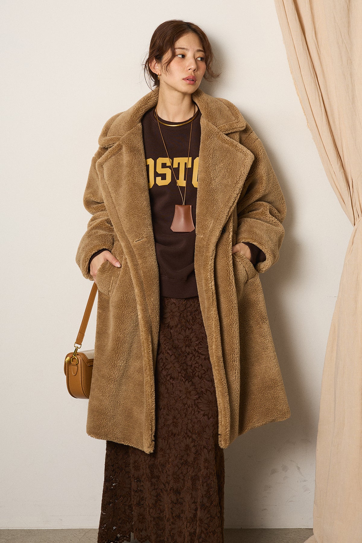 ふんわりとしたボア素材が魅力のテディボアロングコート。