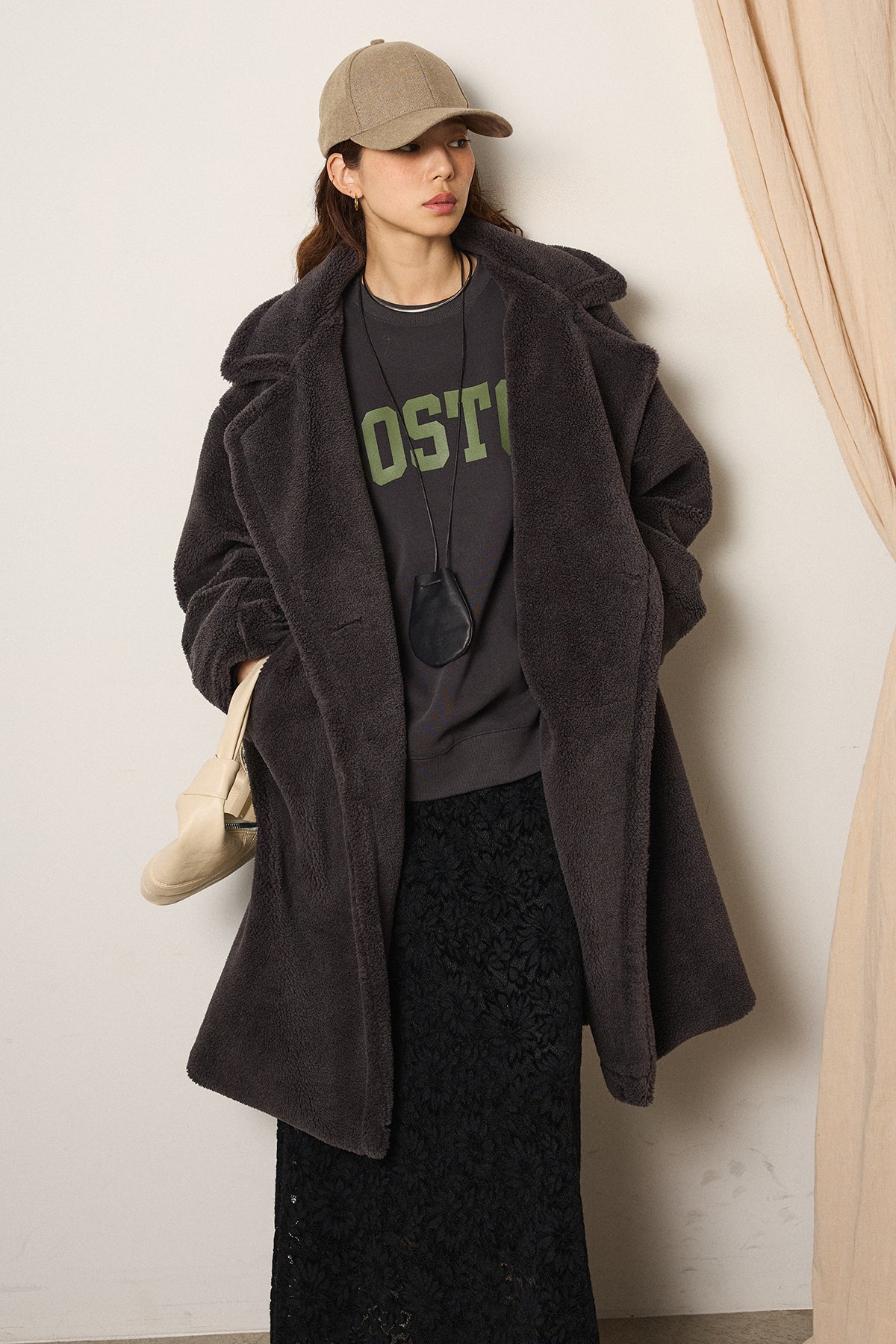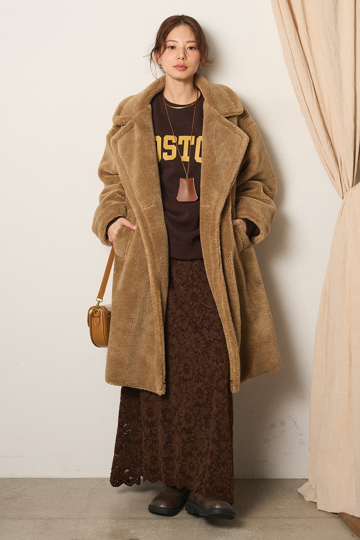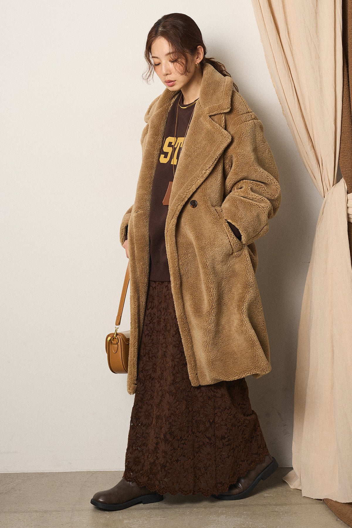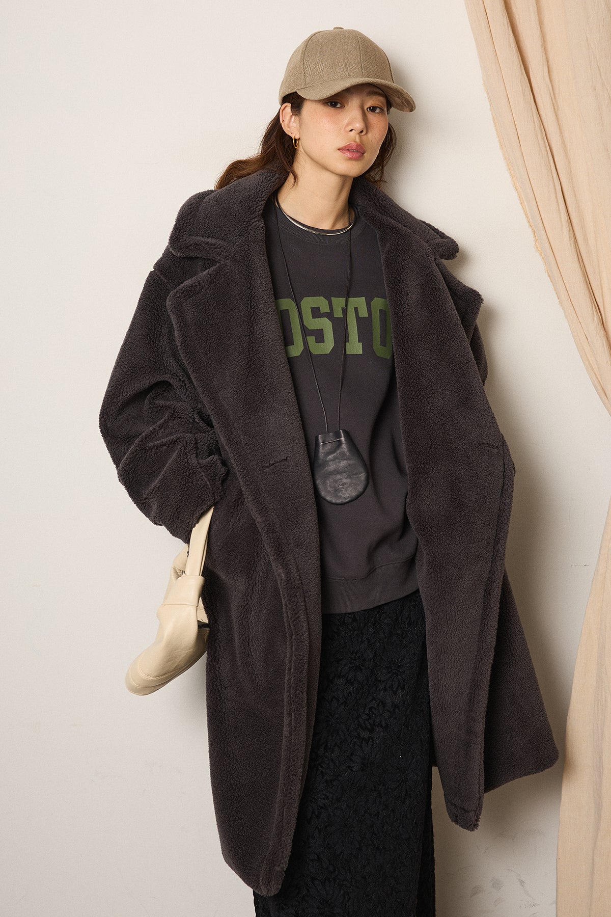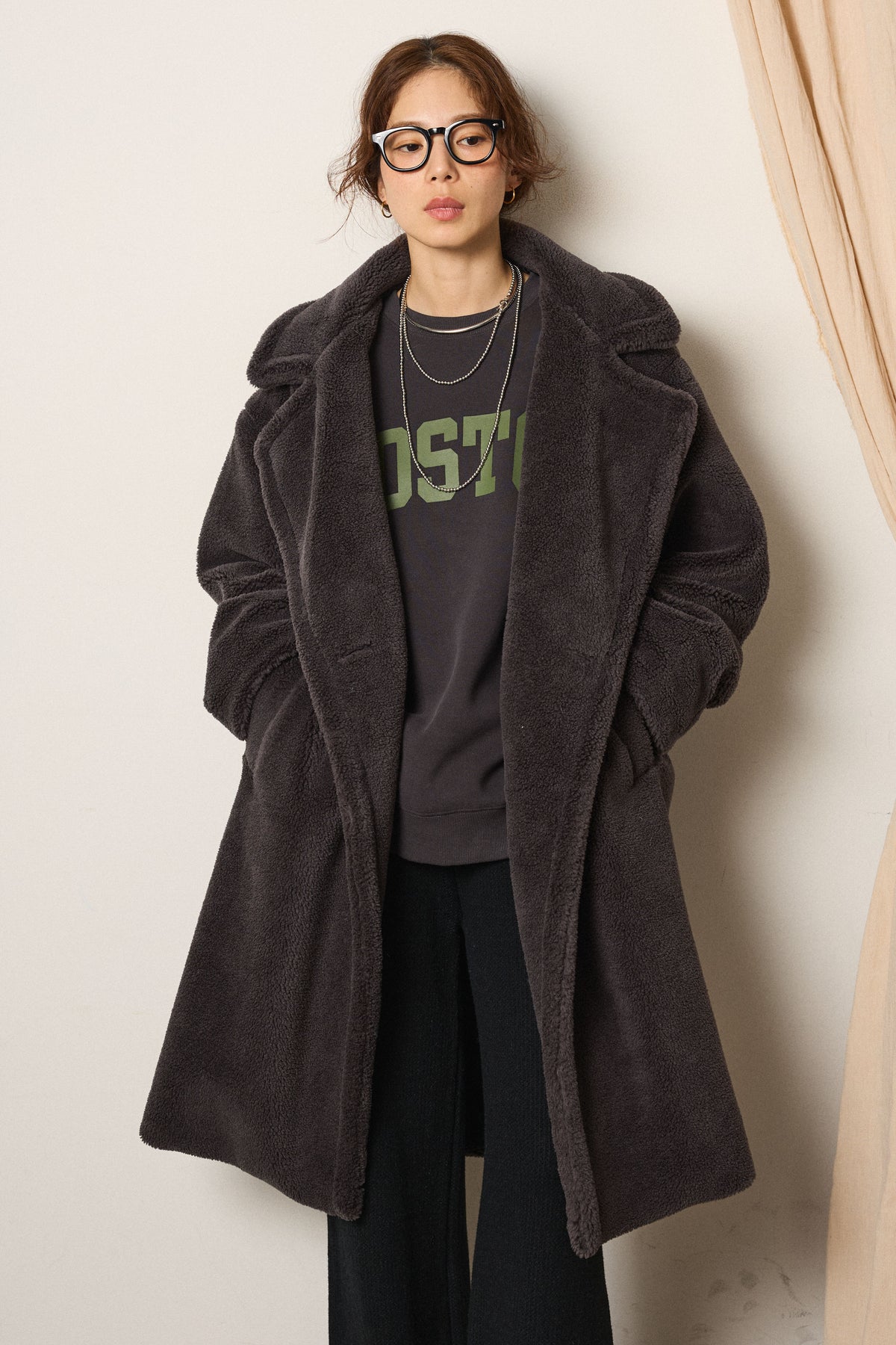 ふんわりとしたボア素材が魅力のテディボアロングコート。
