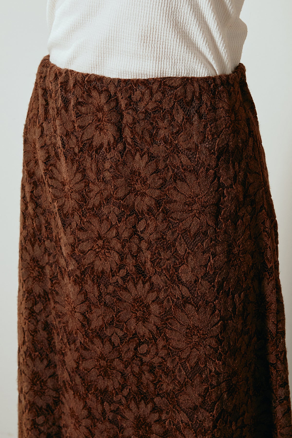 繊細な花柄刺繍が目を惹くベロアフレアスカート。