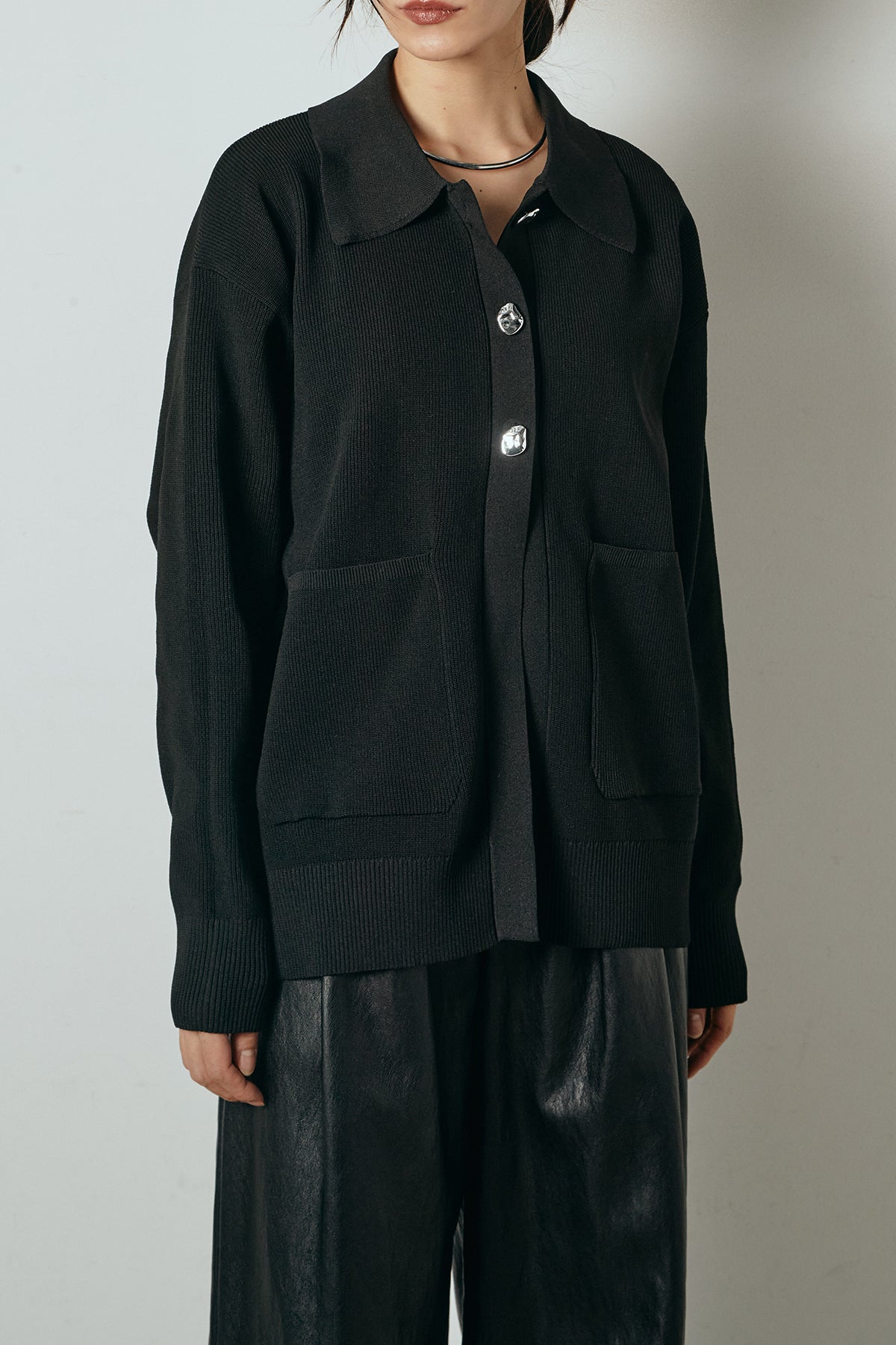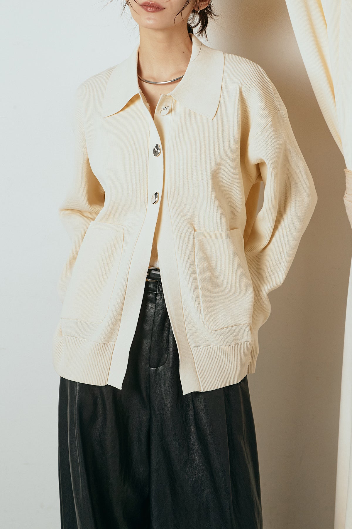 メタル釦がさりげないアクセントになる衿付きニットカーディガン。 程よくきちんと感があり、カーディガンとしてもトップス感覚でも着用できます。 シンプルなデザインで、ボトムを選ばず合わせやすい一着。 デイリー使いから外出まで、幅広いスタイリングに取り入れやすいアイテムです。