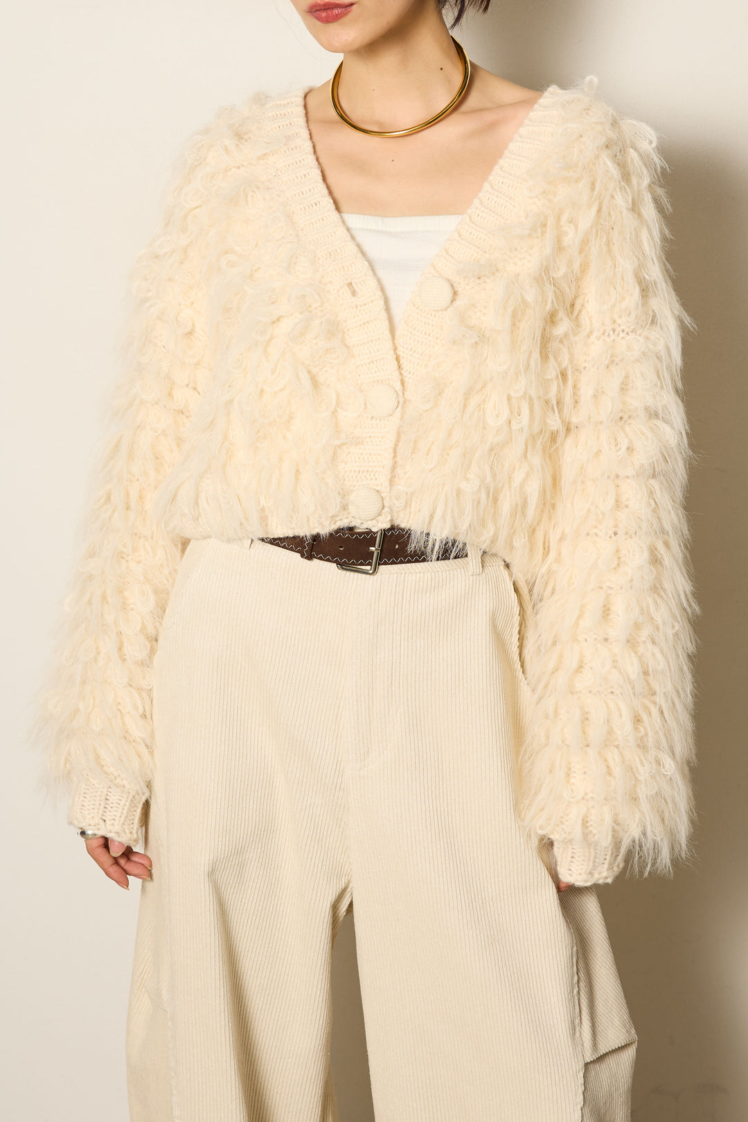 ショート丈ループボアニットカーディガン