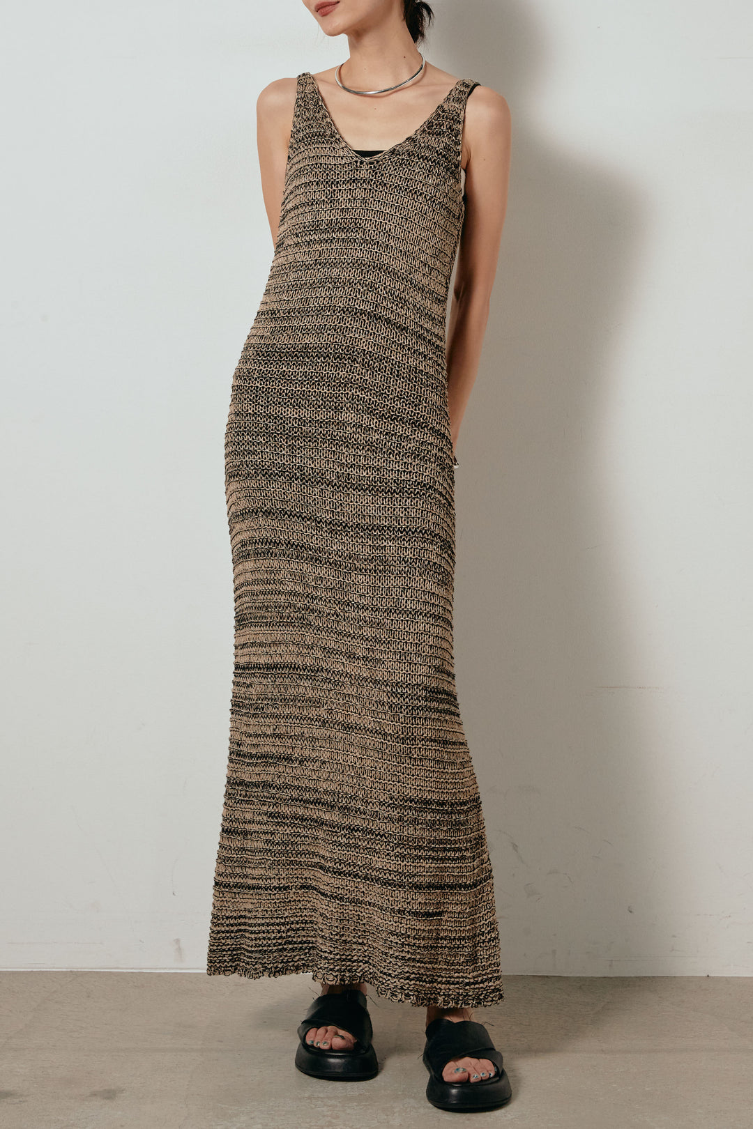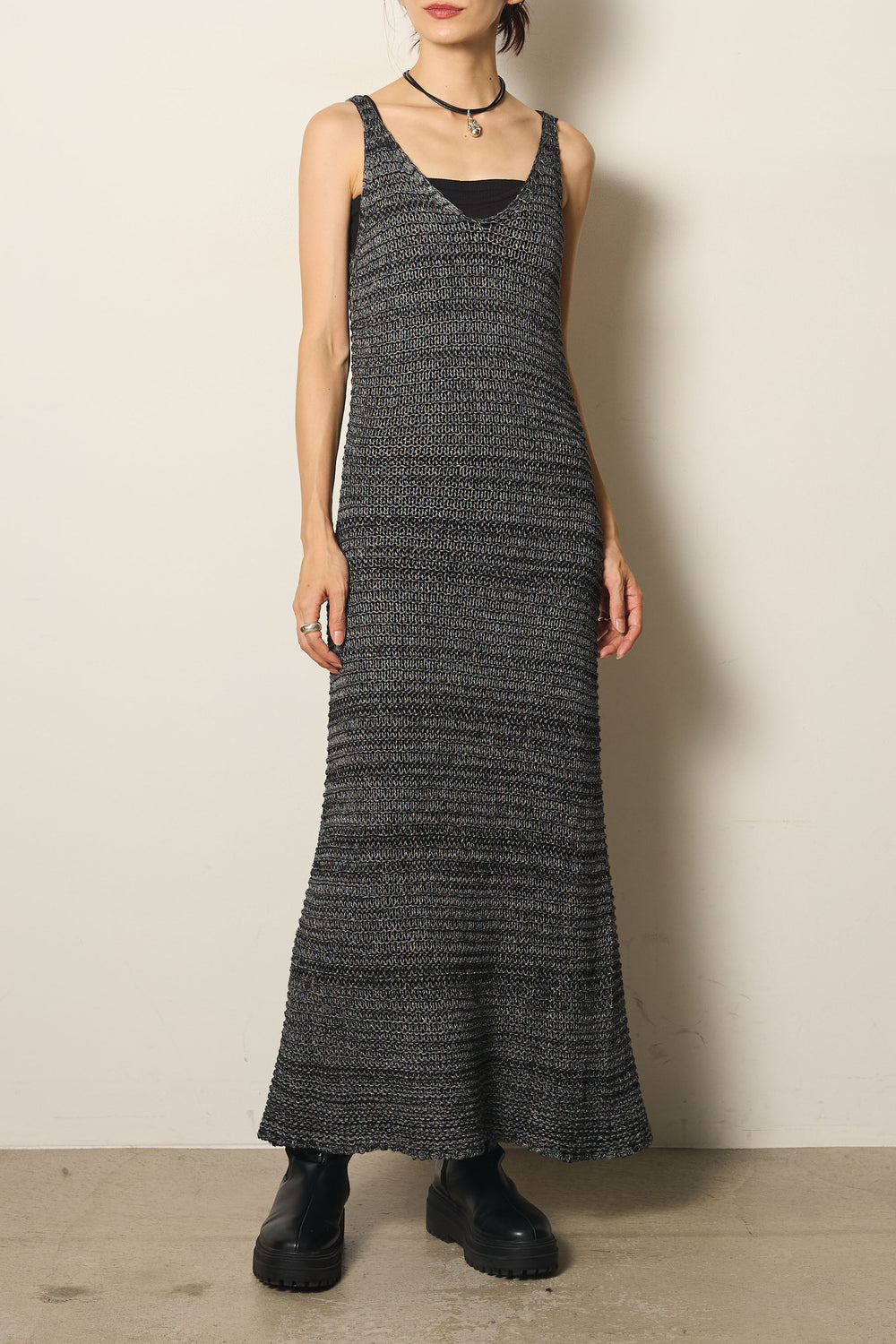 ニュアンスボーダー柄ロングニットワンピース