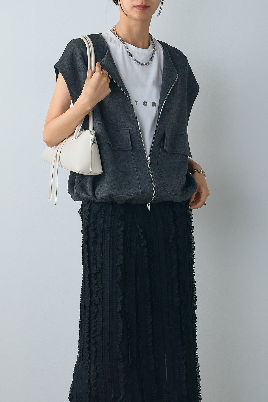 [SET]ダブルジップポケットベスト+ランダムカットフリルスカート(2set)