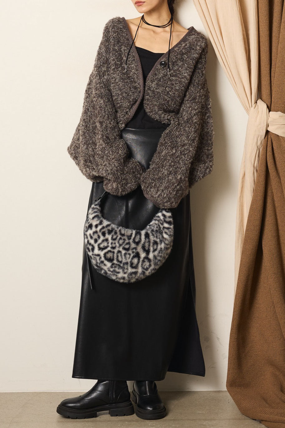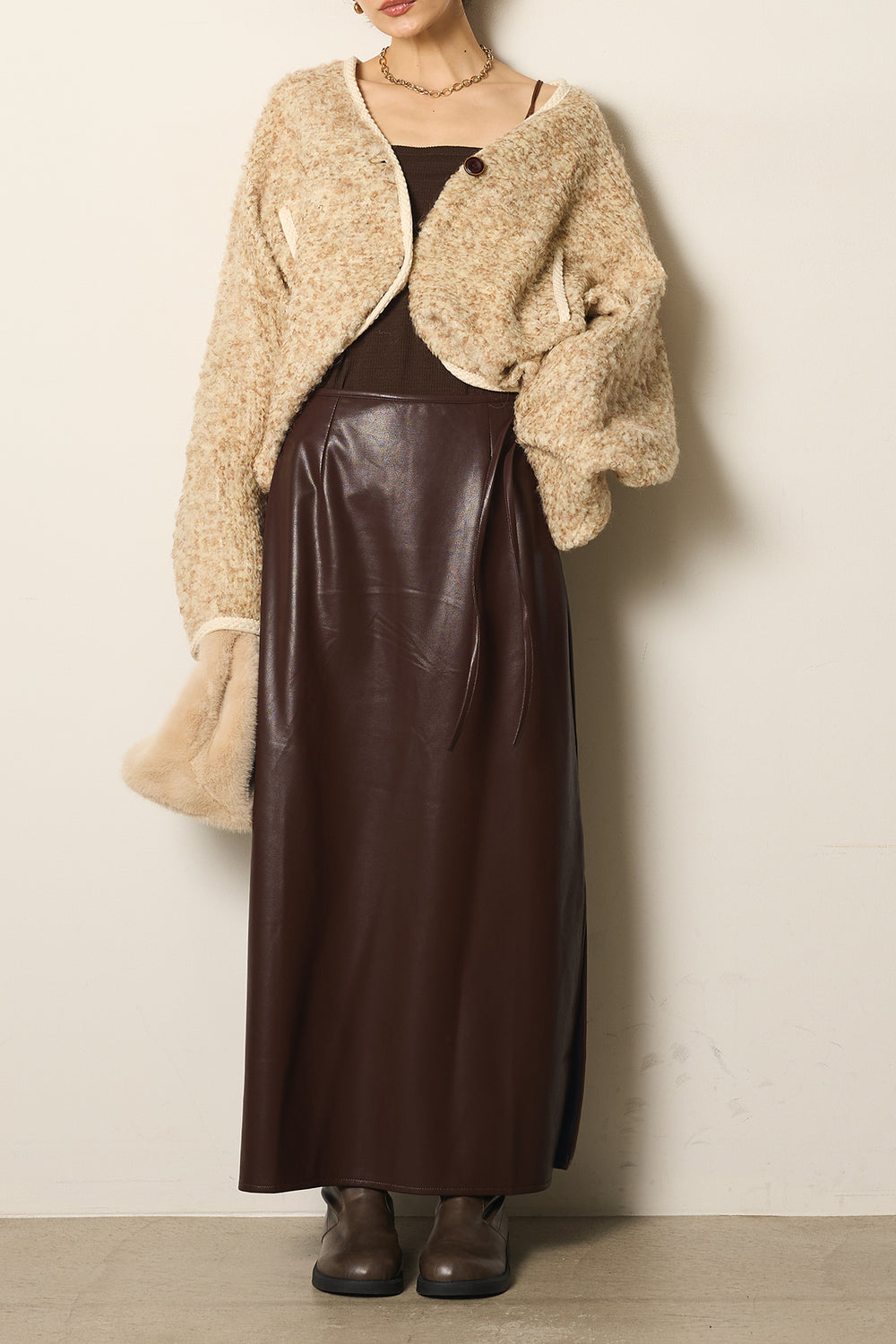 [SET]ノーカラーミックスボアアウター+紐付きフェイクレザーワイドスカート(2set)