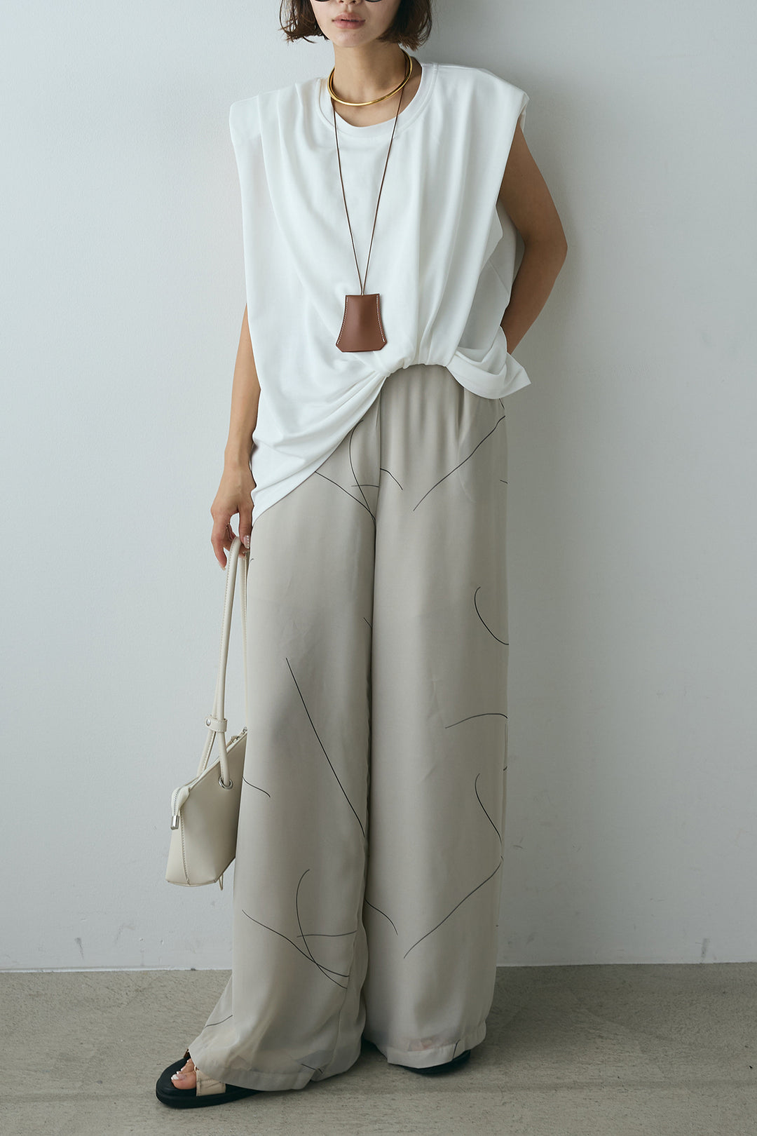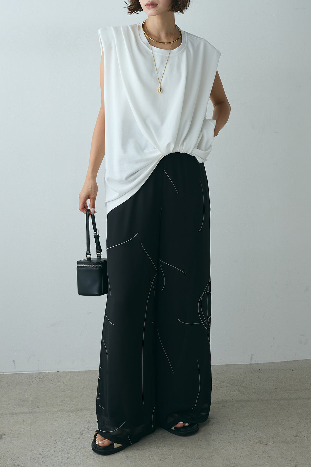 [SET]ノースリーブフロントツイストTシャツ+ニュアンスライン柄ワイドパンツ(2set)