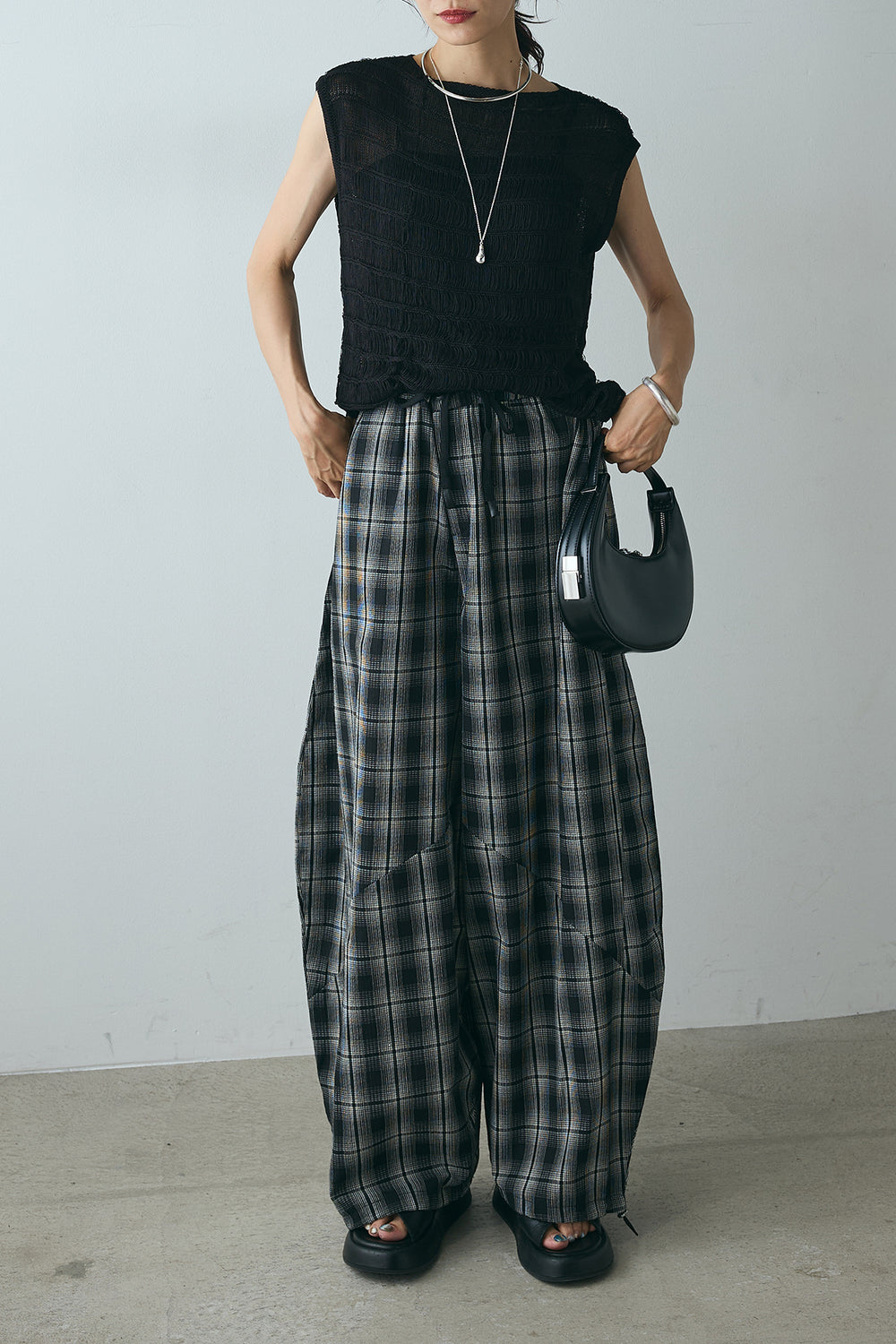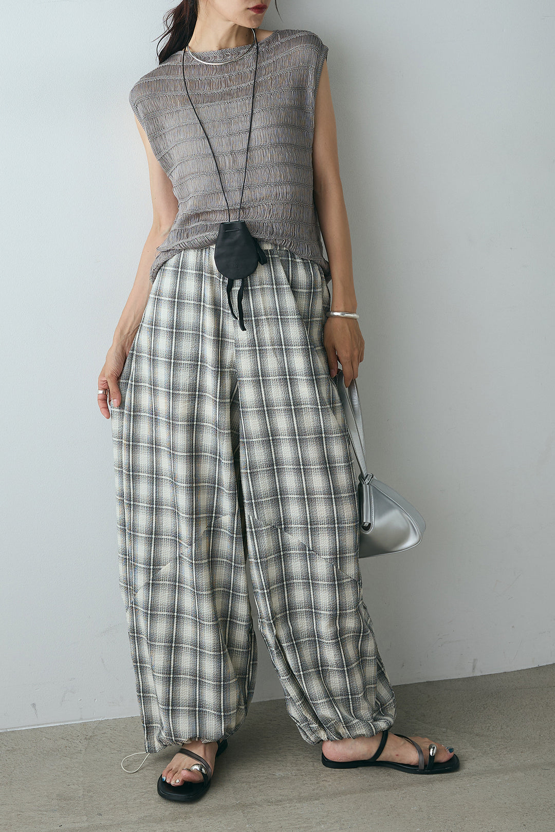 [SET]ノースリーブリネン混ジレ+シアーチェックスカーチョ(2set)