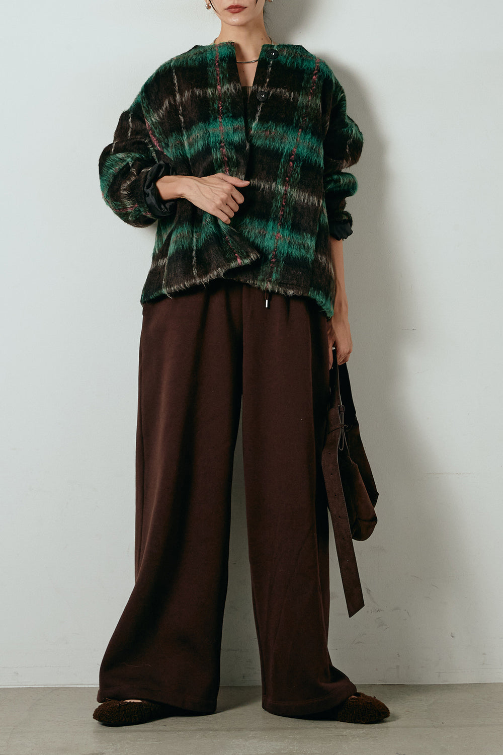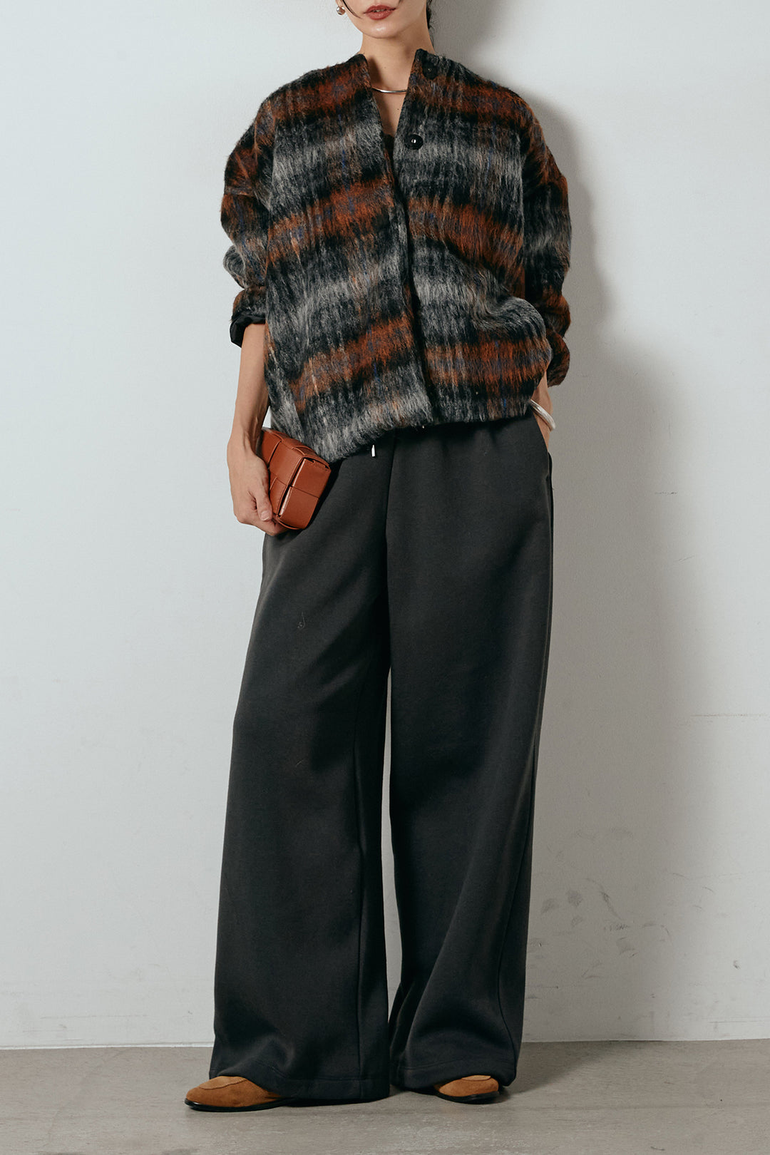 [SET]ノーカラーシャギーチェックアウター+裏起毛スウェットワイドパンツ(2set)