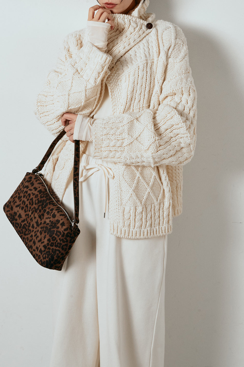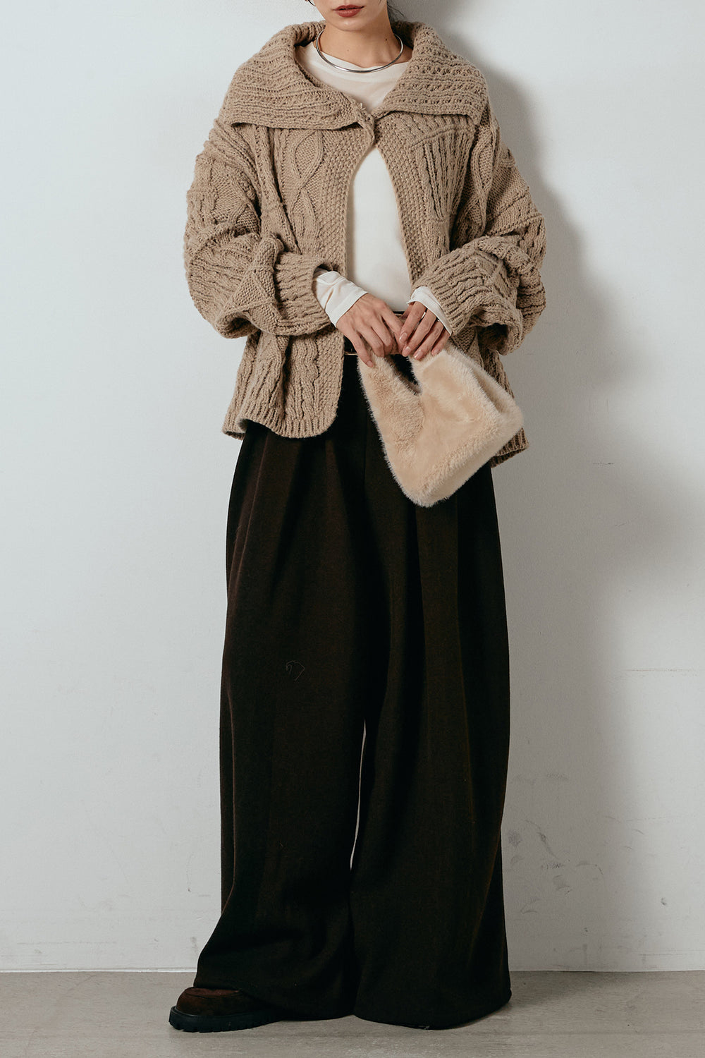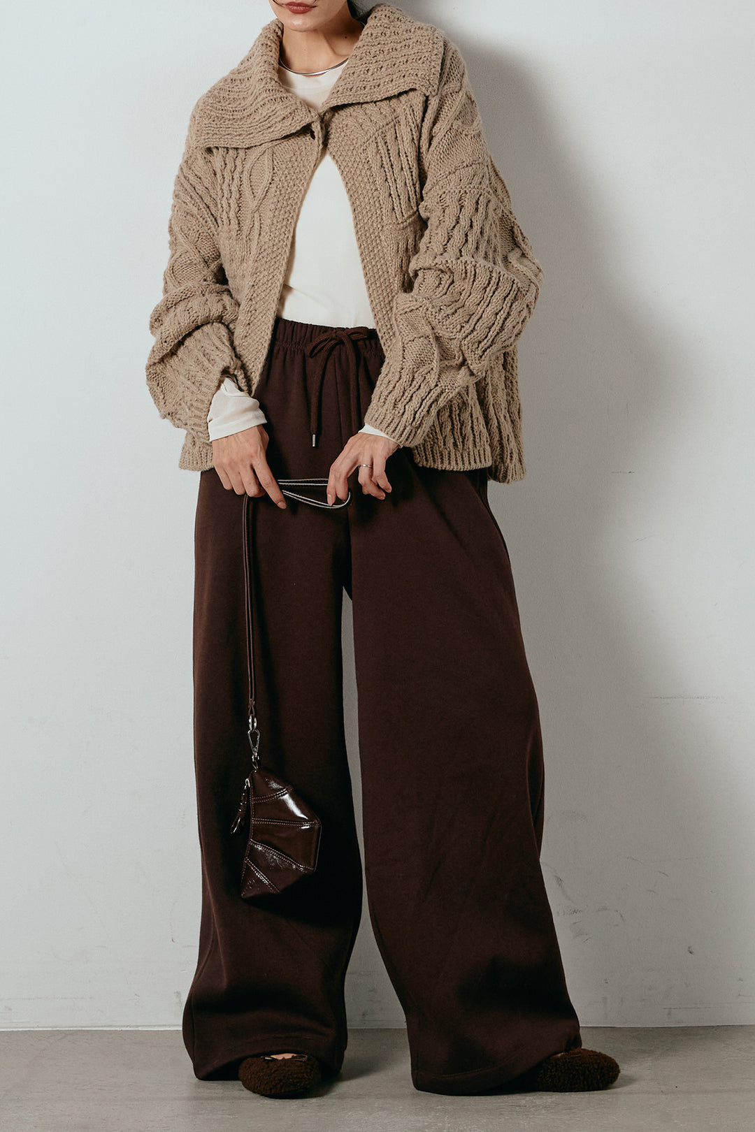 [SET]ビッグカラーケーブル編みニットトップス+裏起毛スウェットワイドパンツ(2set)