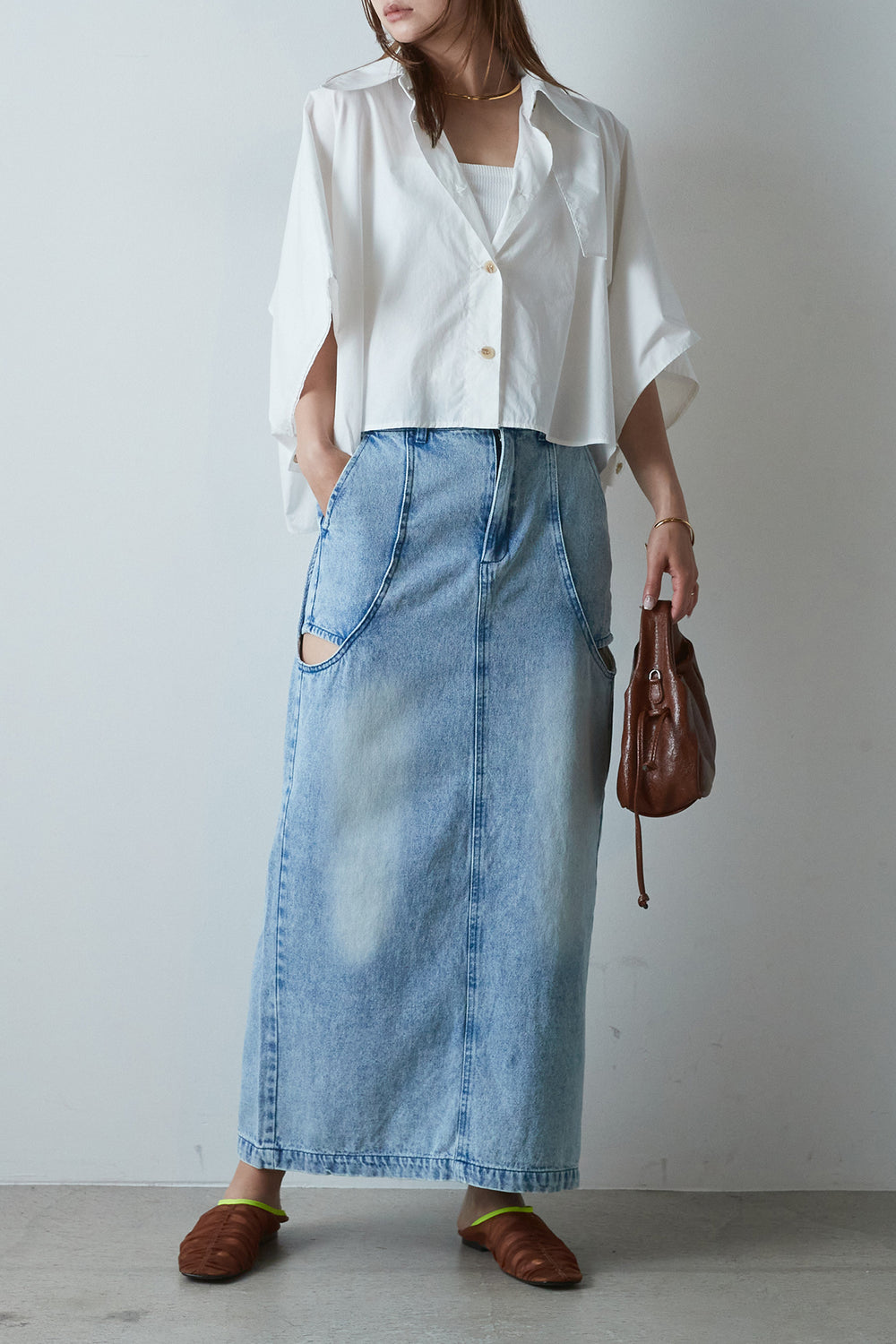 [SET]ポンチョバックフリルシャツ+サイドカットデニムスカート(2set)