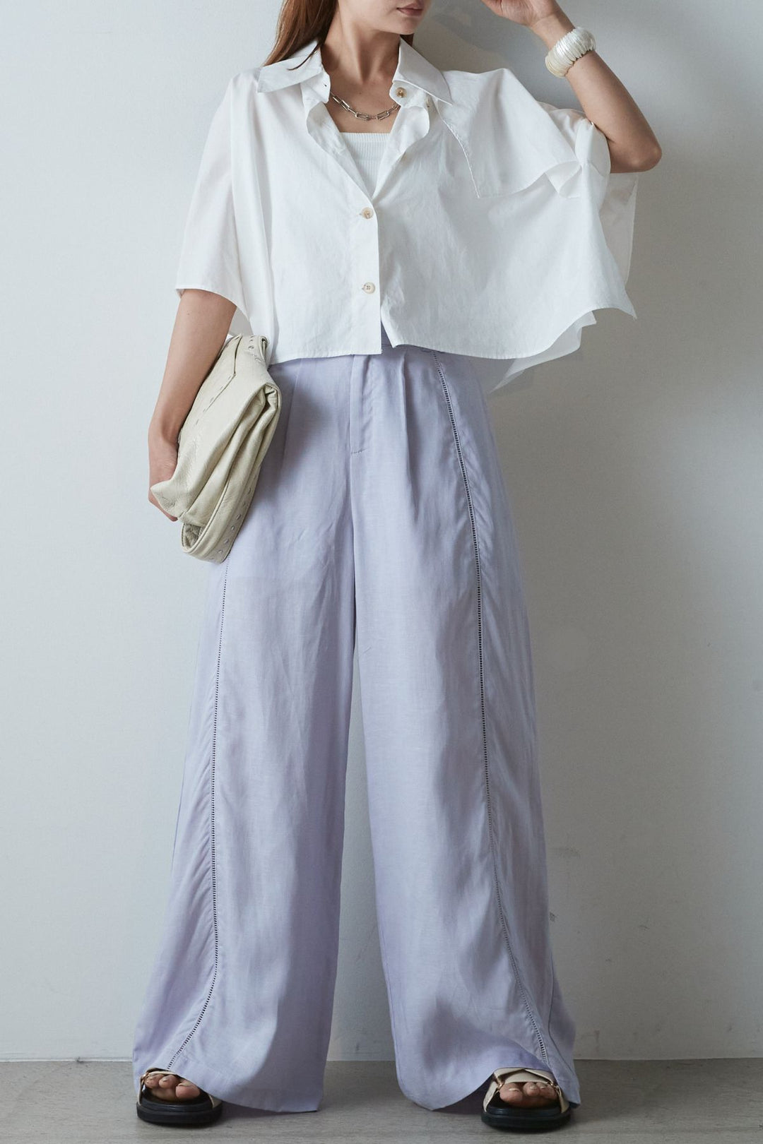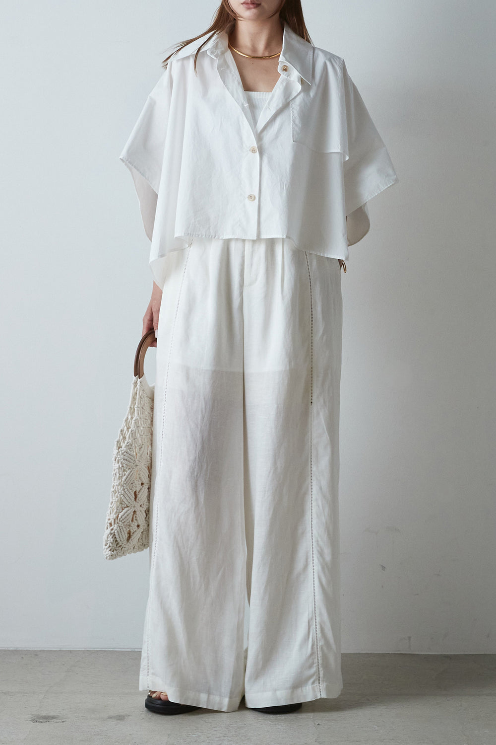 [SET]ポンチョバックフリルシャツ+タック入りワッシャーワイドパンツ(2set)