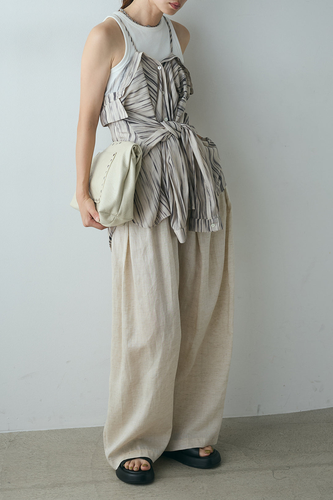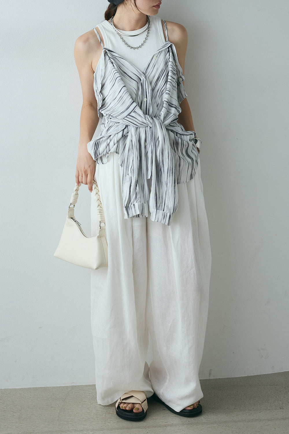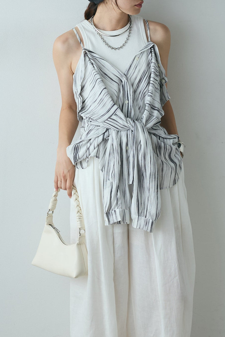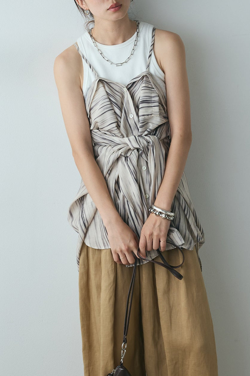 [SET]マルチWAYニュアンス柄オーバーシャツ+カップ付きアメスリタンク+ウエストピンタックデザインワイドパンツ(3set)