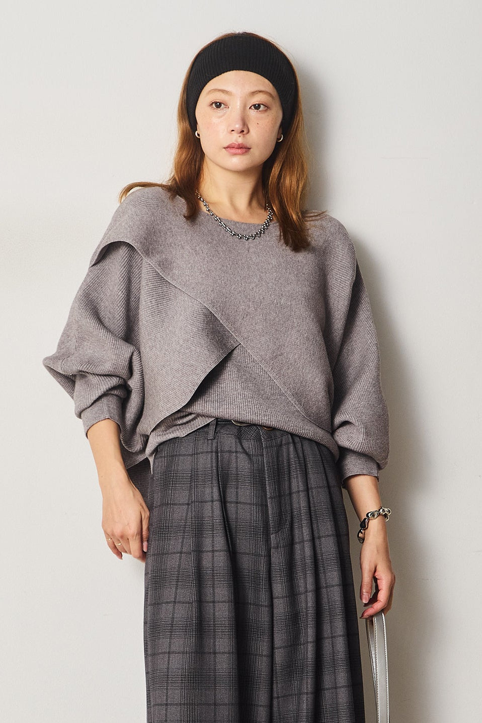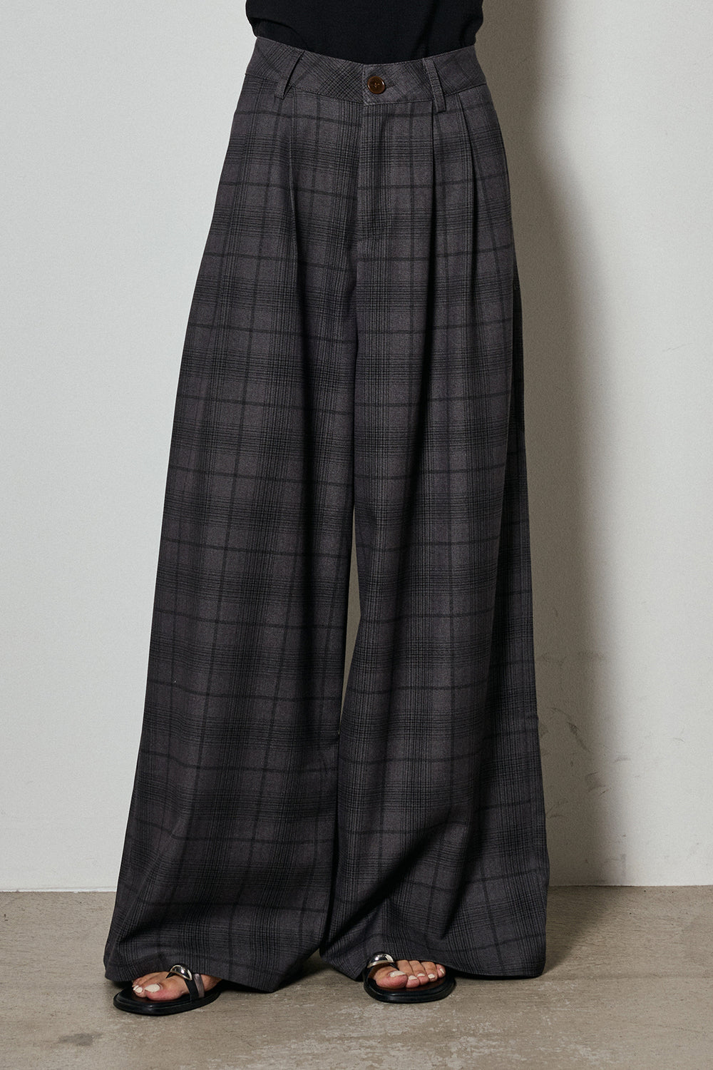 【即納】チェックツイードタックワイドパンツ