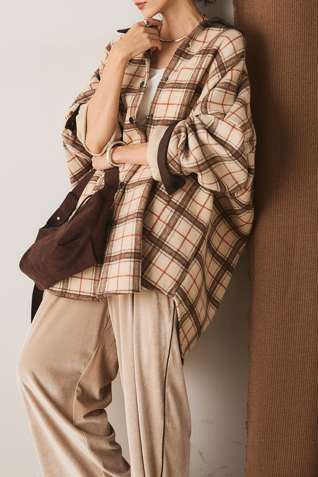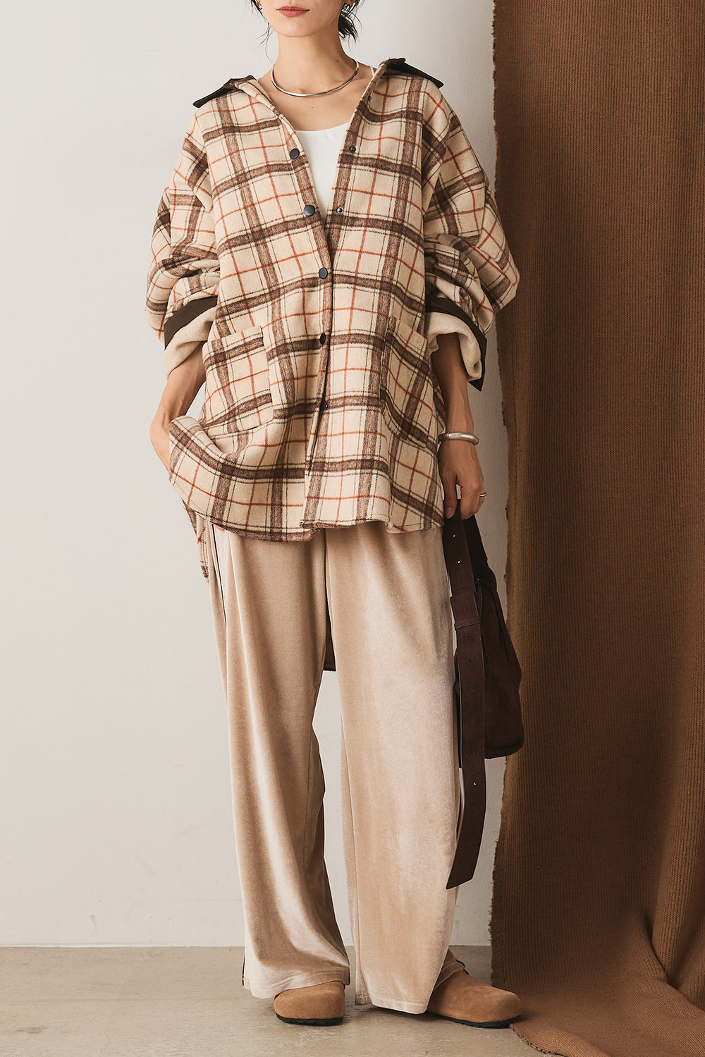 【即納】マルチチェックミディアム丈コート/ベージュ