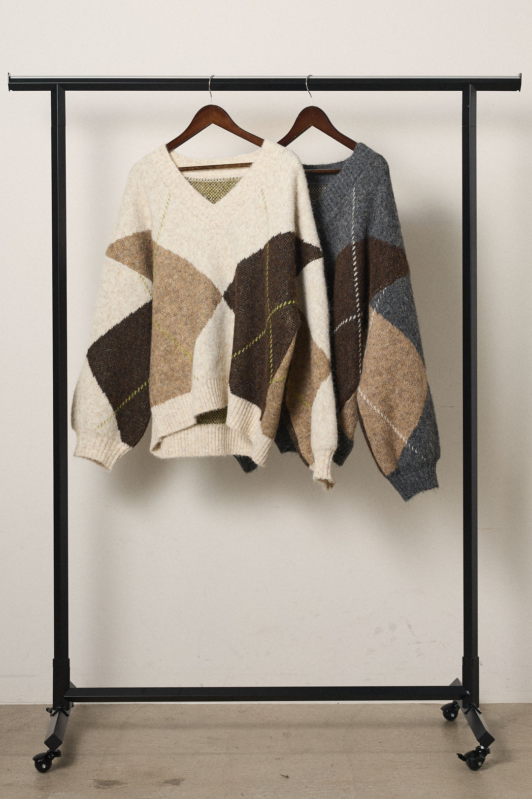 【着回しセット】[SET]ルーズアーガイルVネックニット+ルーズアーガイルVネックニット(2set)