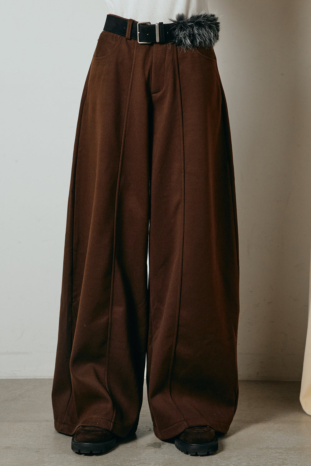 ファーベルト付きワイドパンツ