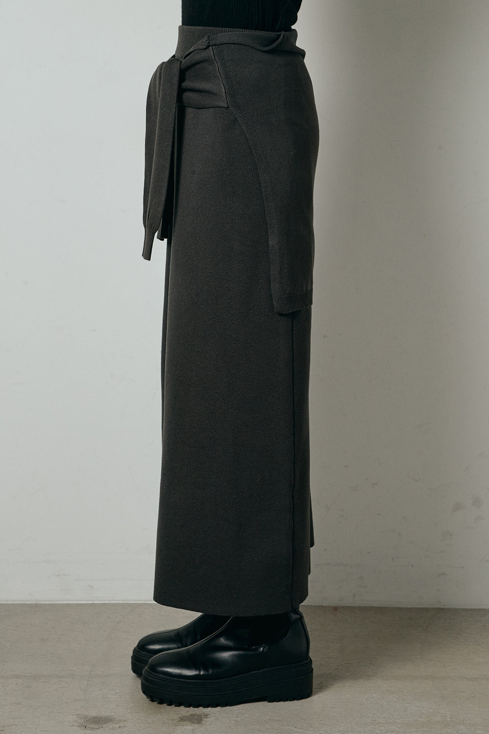 ウエストラップ巻きニットスカート